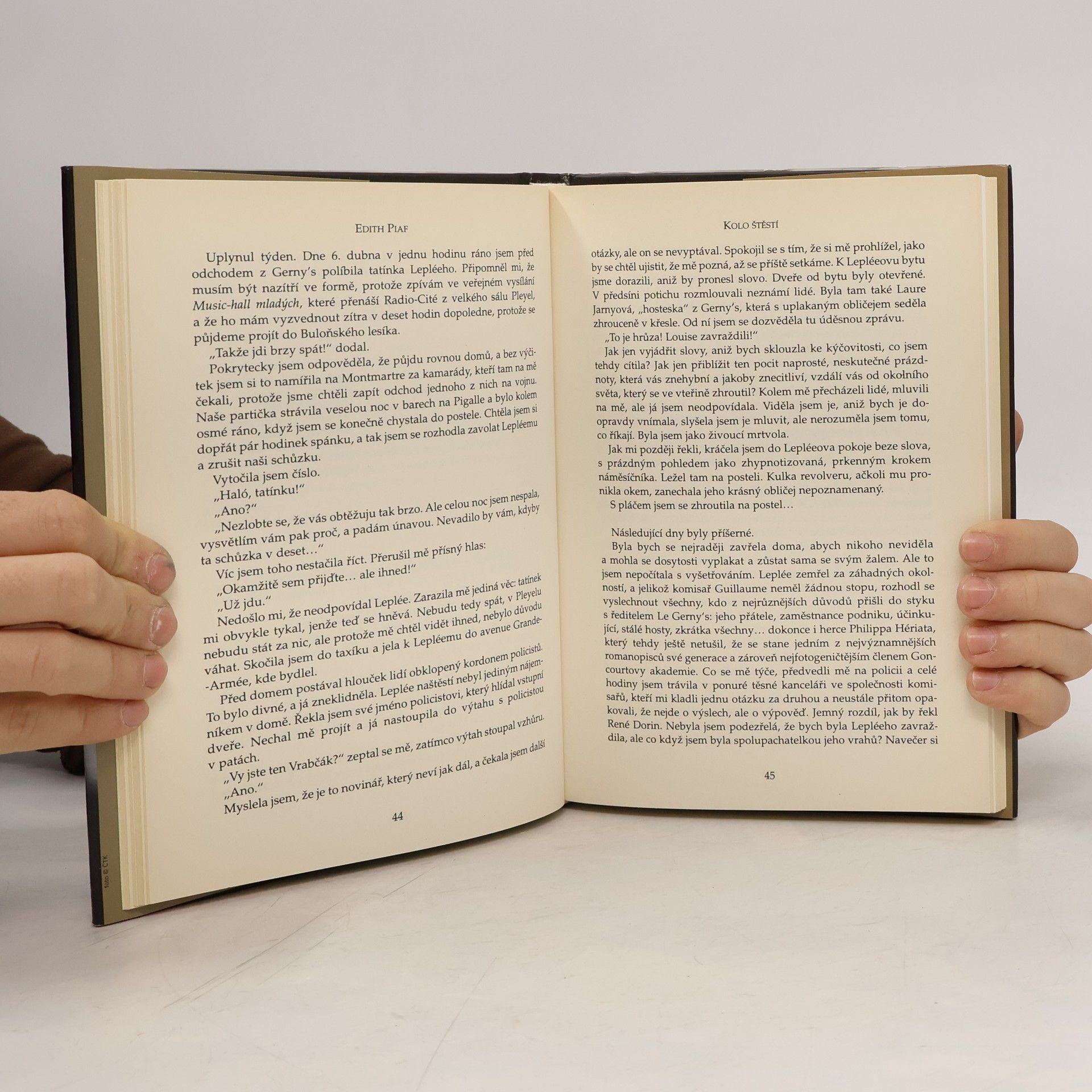 Edith Piaf (1915–1963), drobounká žena z komediantské rodiny s nezaměnitelným hlasem, přezdívaná Vrabčák, se z pouliční zpěvačky stala světově proslulou šansoniérkou. Svou trnitou cestu, která ji z ulice přivedla až do přeplněných sálů, líčí v knize vzpomínek Kolo štěstí (poprvé vyšla v roce 1958). Jenže talent, silná vůle a píle k úspěchu nestačí... musíte mít i trochu štěstí, o tom je Edith Piaf hluboce přesvědčena. A čtenář možná při četbě jejích vzpomínek usoudí, že tyto hodnoty v jejím případě platí v obráceném pořadí...... celý text