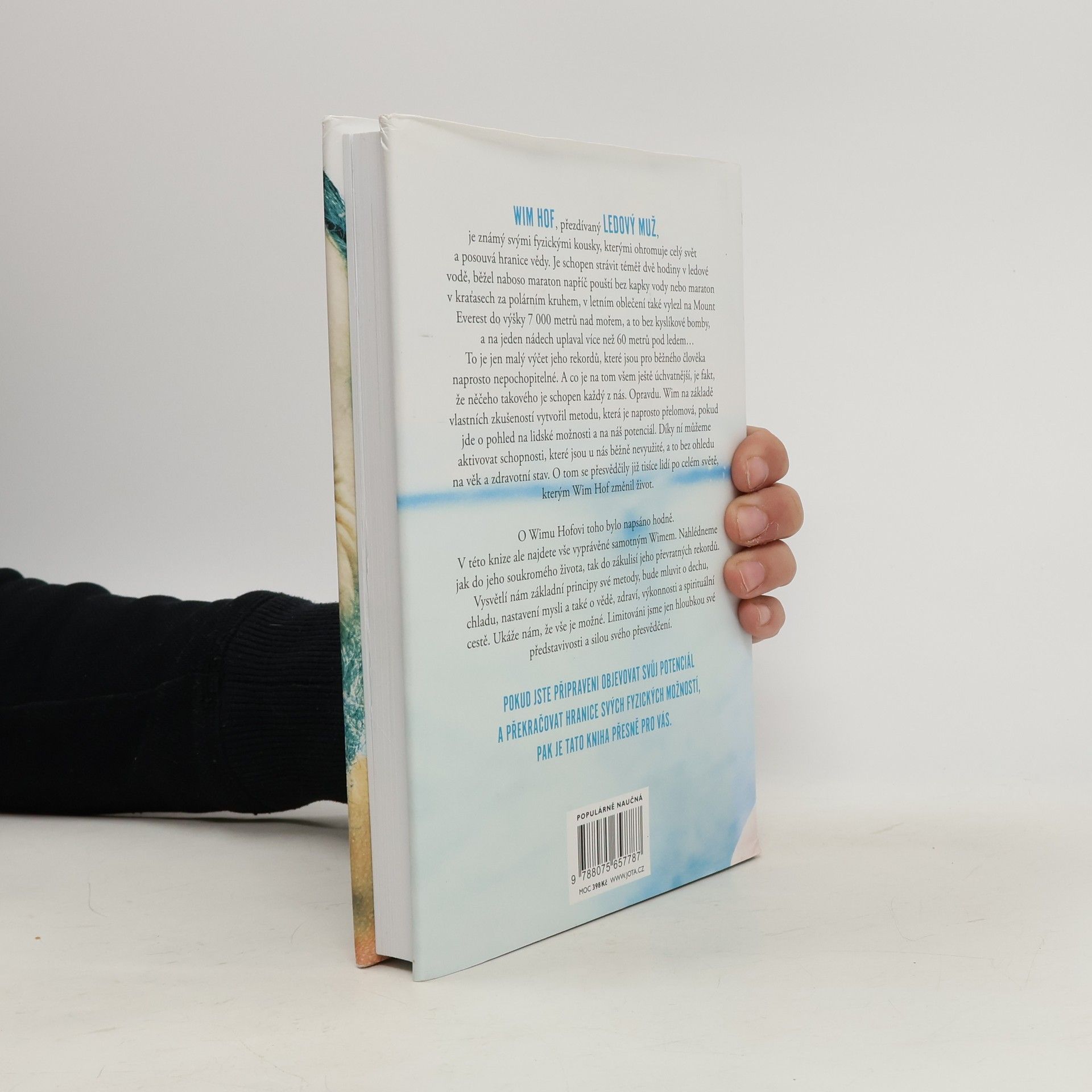Jediná autorizovaná kniha Wima Hofa představuje převratnou metodu, která nám umožňuje využít náš fyzický i duševní potenciál. Wim Hof, známý jako Ledový muž, ohromuje svět svými neuvěřitelnými výkony, jako je strávení téměř dvou hodin v ledové vodě, běhání maratonů bez vody a výstupy na Mount Everest bez kyslíku. Tyto rekordy mohou vypadat nepochopitelně, ale Hof tvrdí, že podobných schopností může dosáhnout každý z nás. Na základě svých zkušeností vytvořil metodu, která mění pohled na lidské možnosti a aktivuje nevyužité schopnosti, bez ohledu na věk či zdravotní stav. Tisíce lidí po celém světě již pocítily pozitivní změny ve svém životě díky této metodě. Kniha nabízí osobní pohled na Hofův život a zákulisí jeho rekordů. Vysvětluje základní principy jeho metody, včetně technik dýchání, práce s chladem, nastavení mysli a souvislostí se zdravím a spirituálním rozvojem. Hof ukazuje, že naše limity jsou určeny pouze hloubkou naší představivosti a silou přesvědčení. Pokud jste připraveni objevovat svůj potenciál a překonávat fyzické hranice, tato kniha je pro vás. „Tato metoda je jednoduchá, přístupná a vědecky podložená. Může ji praktikovat kdokoli, bez dogmat, pouze s přijetím a svobodou.“