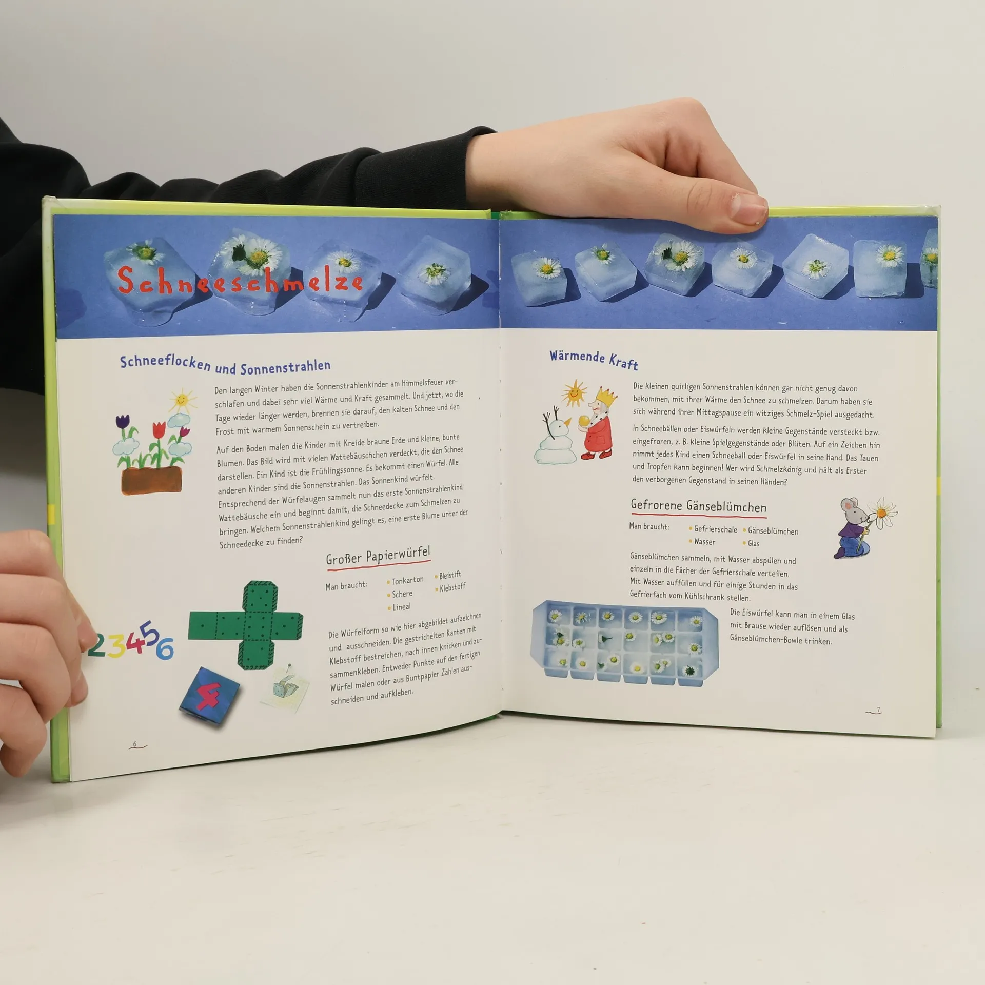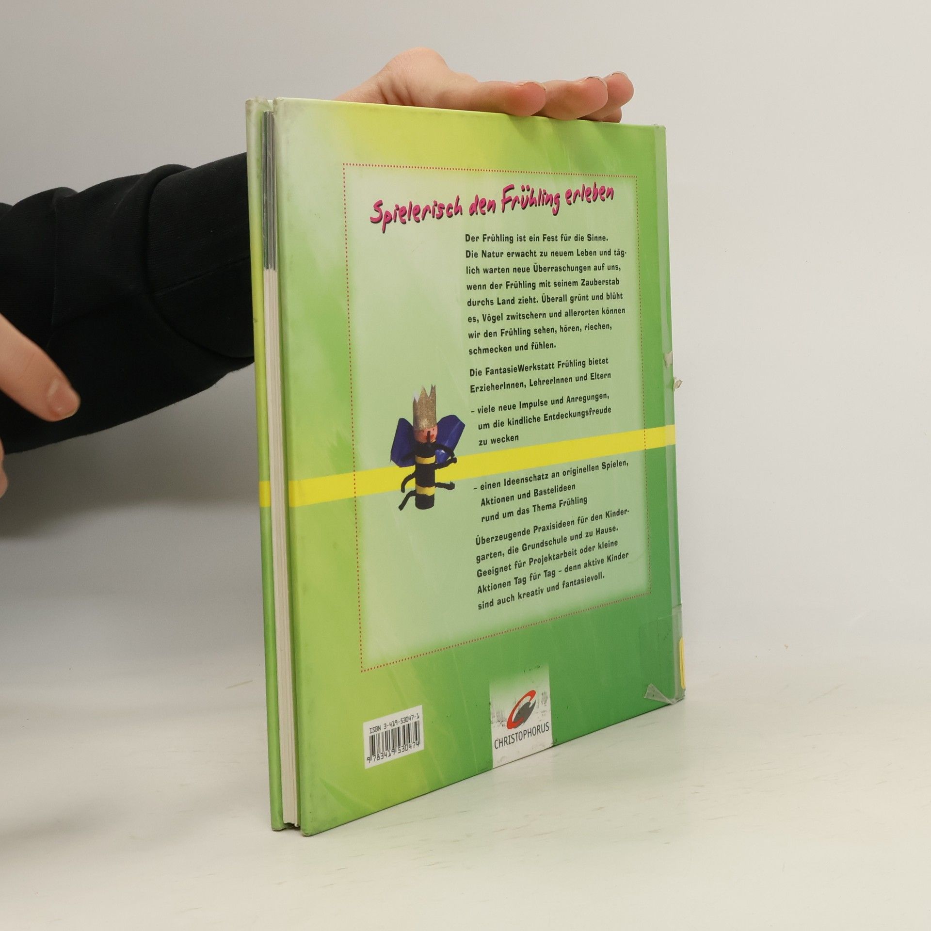Im 5. Band der Reihe "FantasieWerkstatt" wird nach herbstlicher (BA 11/03) Thematik nun der Frühling eingefangen, mit dem Erwachen der Natur, Spaziergängen durch Feld, Wald und Wiese, Tieren und Pflanzen oder Bräuchen und Festen des Frühlings von Fastnacht bis Ostern. Abenteuerliche Mannschafts und Fangspiele, entspannende Meditationen, Sinnesübungen von Hören, Riechen oder Tasten, Spiel und Tanzlieder oder Rätselreime handeln von Naturgeschehnissen oder von Fantasiegestalten einer magisch durchdrungenen Natur, wie von Zaubervogel, Regenfritz oder Wiesenwusel. Den von anregenden Farbfotos und naiv fröhlichen Illustrationen veranschaulichten Doppelseiten sind inhaltlich passende Bastelanleitungen beigegeben, vor allem für Spiele und Figuren aus Papier und Naturmaterialien. Im Vergleich zu anderen Werkbüchern für den Frühling, wie z.B. C. SchusterBrink (BA 4/97) oder U. Bezdek (BA 6/02), vermittelt der Titel Kindern weniger sachliche Informationen, als dass er Fantasie, Gefühle und Sinne anspricht. Für Familie, Kindergarten und Grundschule. (2)