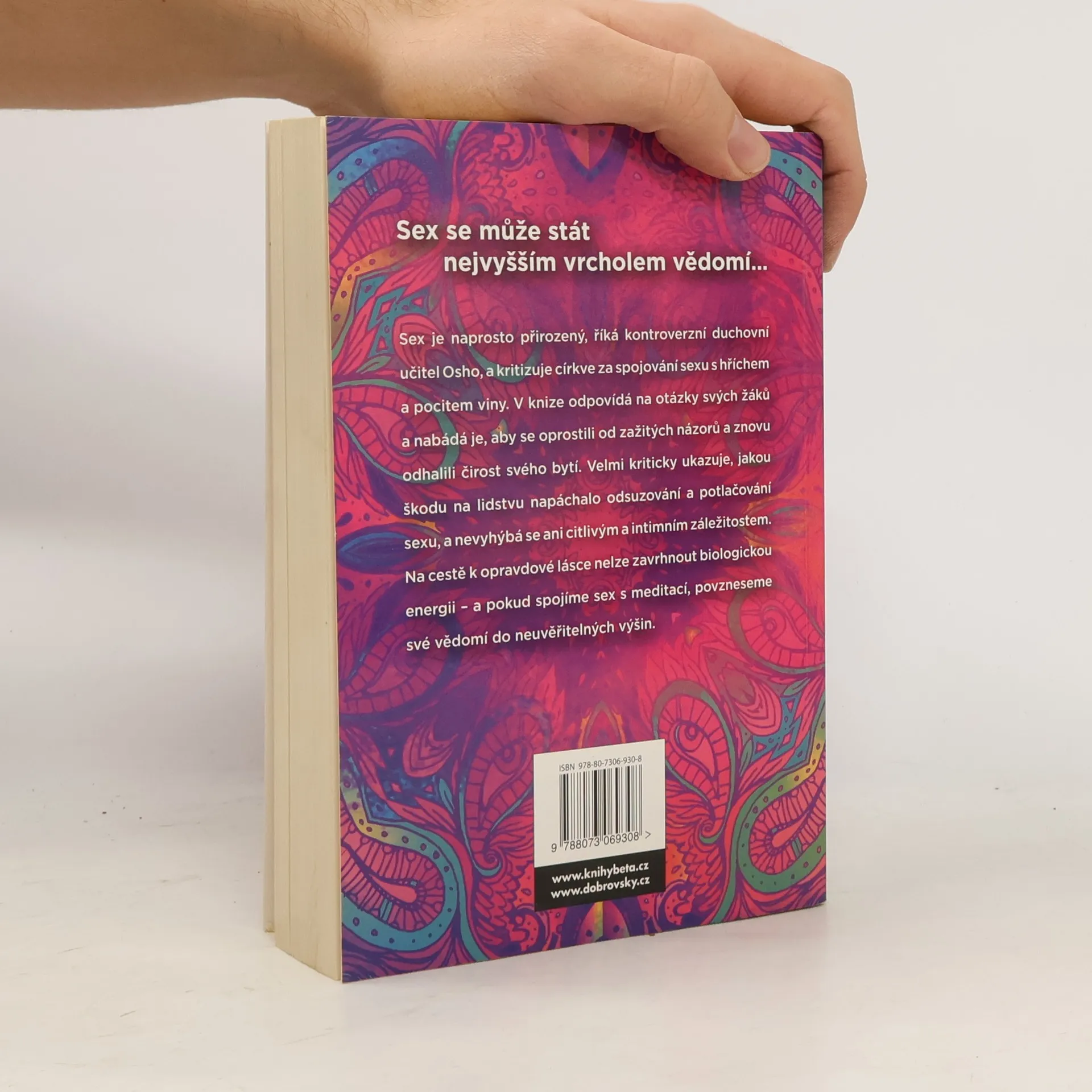 Sex je naprosto přirozený, říká kontroverzní duchovní učitel Osho, a kritizuje církve za spojování sexu s hříchem a s pocitem viny. V knize odpovídá na otázky svých žáků a nabádá je, aby se oprostili od zažitých názorů a znovu odhalili čirost svého bytí. Velmi kriticky ukazuje, jakou škodu na lidstvu napáchalo odsuzování a potlačování sexu, a nevyhýbá se ani citlivým a intimním záležitostem. Na cestě k opravdové lásce nelze zavrhnout biologickou energii – a pokud spojíme sex s meditací, povzneseme své vědomí do neuvěřitelných výšin.