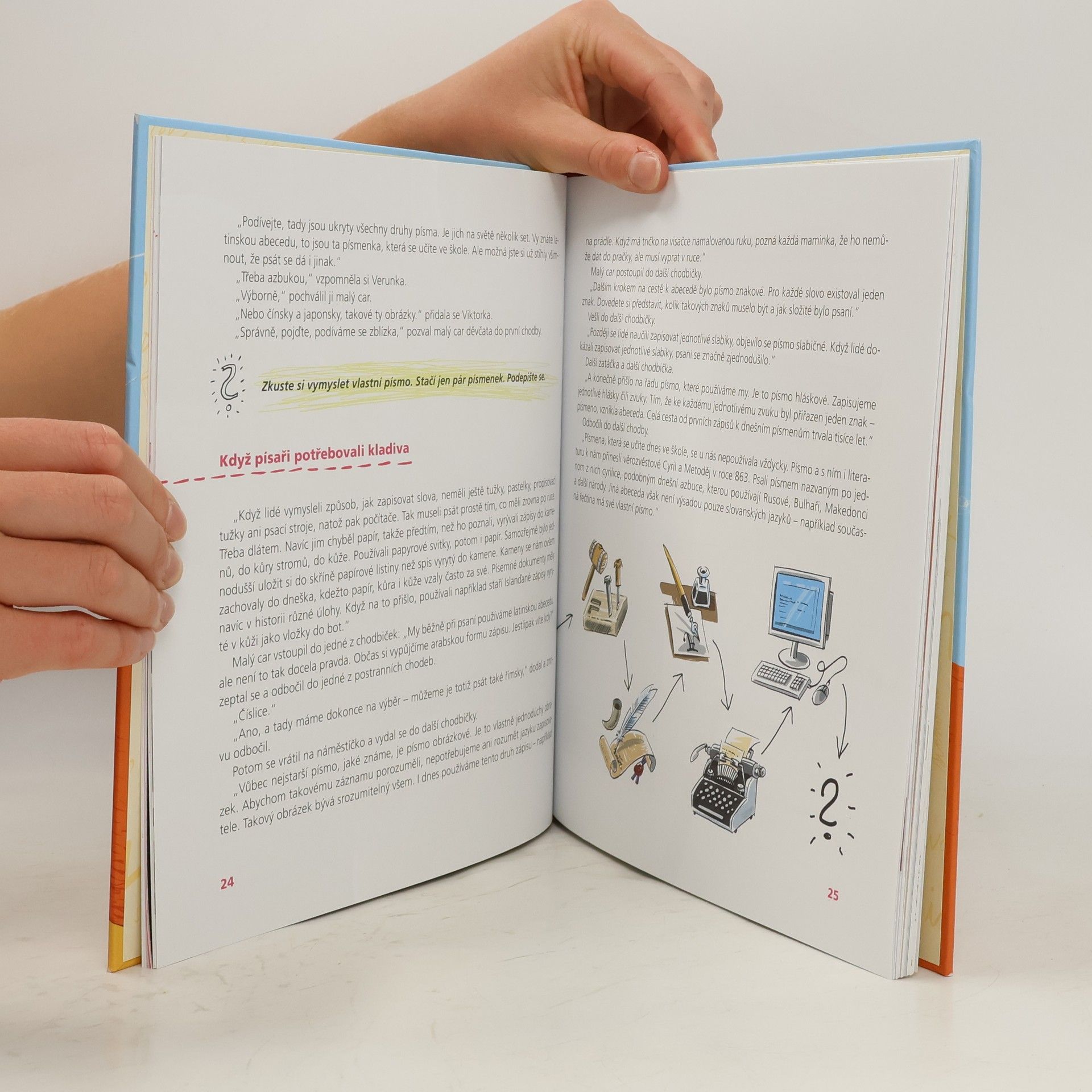 Jak vznikají názvy měst a vesnic nebo příjmení? Co jsou to mrtvé jazyky? Jaké existují druhy písem? Co se dá vidět jazykohledem a co je uloženo ve slovomorně? To a spoustu jiných věcí o jazyce, řeči a písmu se děti dozví prostřednictvím dvou děvčátek Veroniky a Viktorky a malého cara, který je vezme na pohádkový výlet do Říše češtiny. Autorka knihy zasvěcuje zábavnou formou do tajů jazyka, odhaluje jeho zákonitosti i zvláštnosti, a probouzí tak v malých čtenářích chuť objevovat mateřštinu.