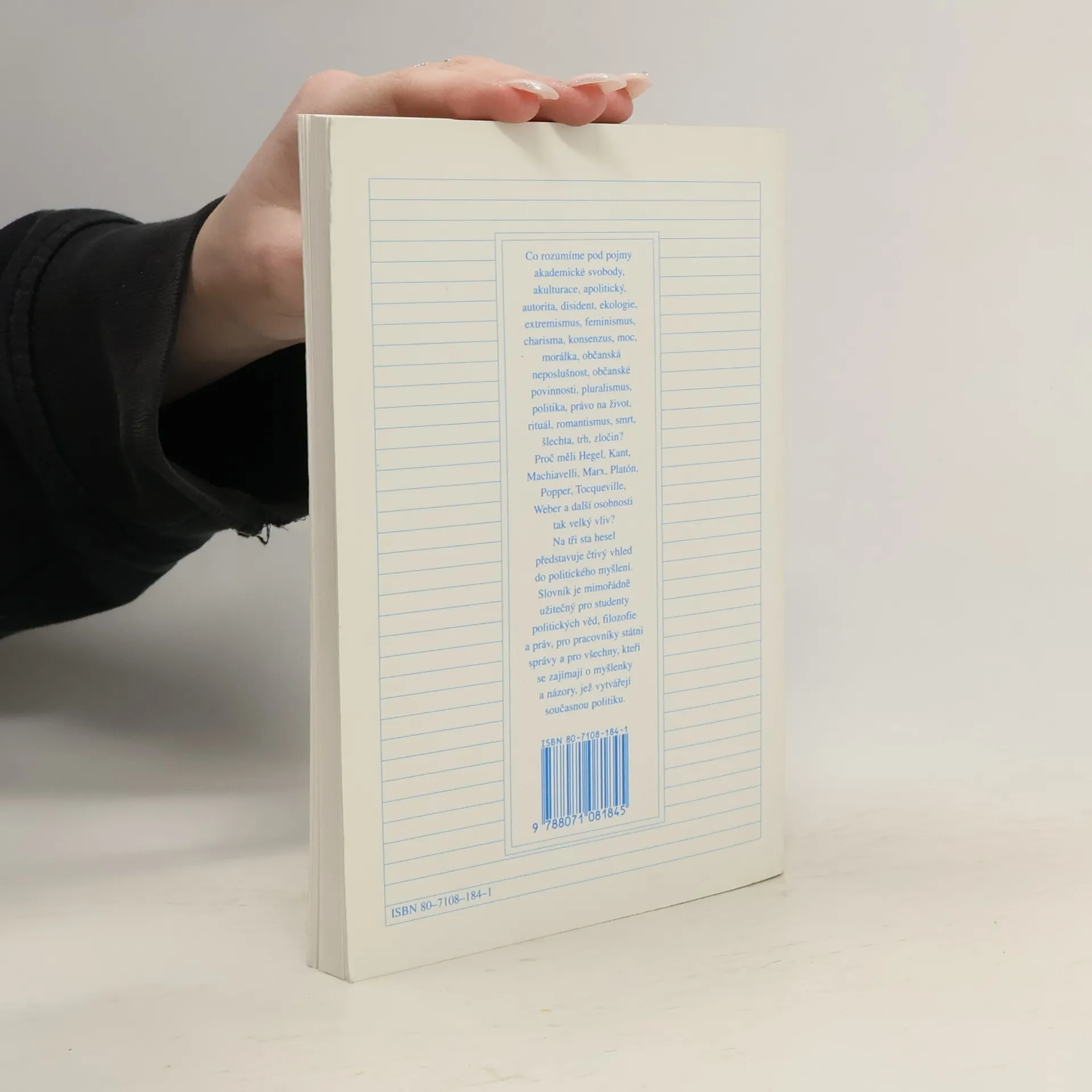 Slovník, obsahující přes 300 hesel, představuje čtivý vhled do politického myšlení. Je mimořádně užitečný pro studenty politických věd, filozofie a práv a pro všechny, kteří se zajímají o myšlenky a názory, jež vytvářejí současnou politiku.