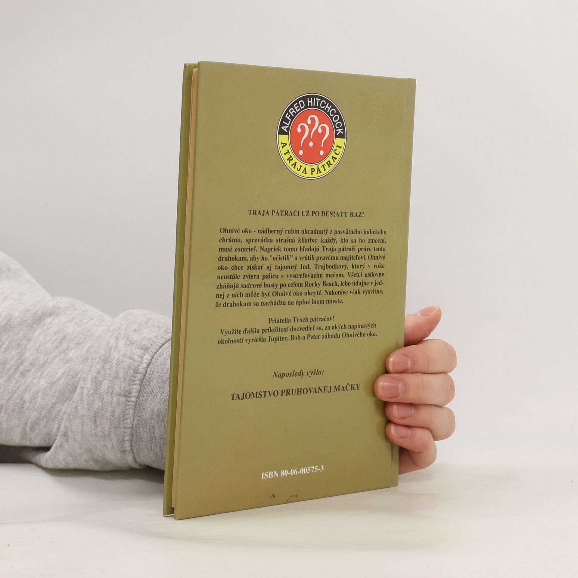 Hľadajú ho, aby ho "očistili" a vrátili pravému majiteľovi. Ohnivé oko chce získať aj tajomný Ind, Trojbodkový, ktorý v ruke neustále zviera palicu s vystreľovacím mečom. Všetci usilovne zháňajú sadrové busty po celom Rocky Beach, lebo údajne v jednej z nich môže byť Ohnivé oko ukryté. Nakoniec však vysvitne, že drahokam sa nachádza na úplne inom mieste.