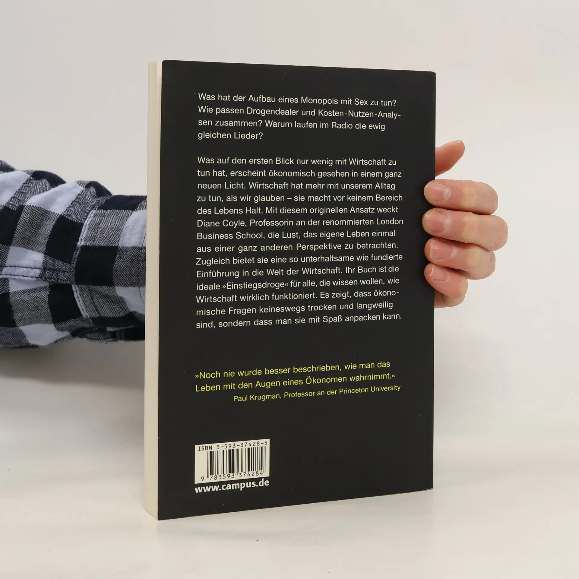 Was haben Angebot und Nachfrage oder der Aufbau eines Monopols mit Sex zu tun? Welche Auswirkungen haben Eingriffe der Regierung auf den Preis meiner Tasse Kaffee zum Frühstück? Warum laufen im Radio immer die gleichen Lieder? Sex, Drugs & Economics ermöglicht einen absolut unverkrampften Eintritt in die Welt der Wirtschaft, die sich vielen „Neulingen“ sonst als trocken und ernst präsentiert. Das gelingt Diane Coyle, indem sie dem Leser die Augen für den unmittelbarsten Zugang zu scheinbar komplizierten Wirtschaftsthemen öffnet: das eigene Leben. Unterhaltsam und ganz ohne komplexe Theorien oder unüberwindbare Zahlen- und Faktenberge wird so verständlich, wie Wirtschaft heute funktioniert. Das ideale Buch zum Verschenken und Selber-Schenken. „Noch nie wurde besser beschrieben, wie man das Leben mit den Augen eines Ökonomen wahrnimmt...“ meint niemand Geringerer als Paul Krugman.