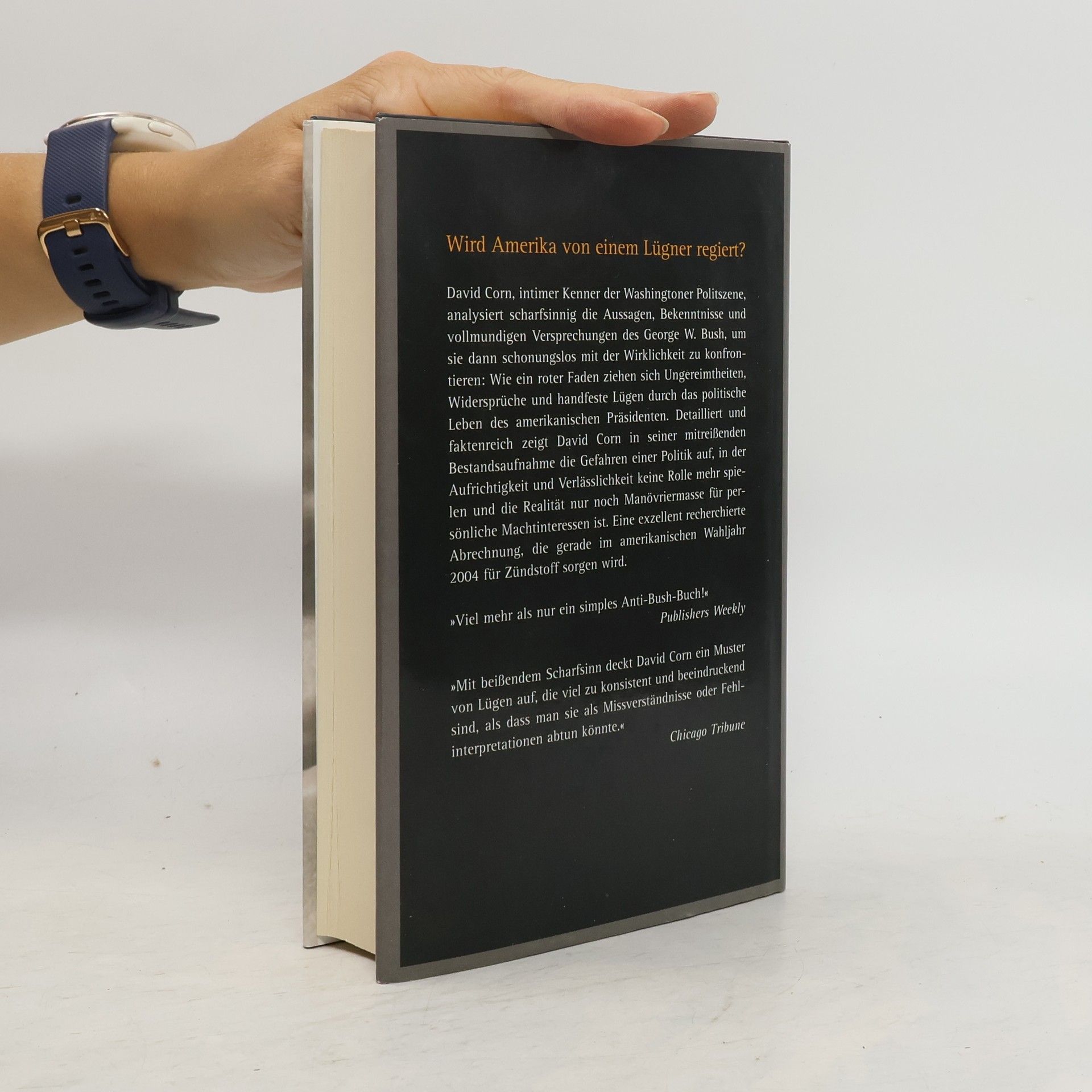 „Jede Art von Politik sollte sich an das Prinzip halten, dass Individuen dafür verantwortlich sind, was sie sagen und tun.“ Dieser moralische Anspruch des amerikanischen Präsidenten gilt anscheinend nicht für ihn selbst. David Corn nimmt die politische Karriere des George W. Bush von dessen Gouverneurszeit in Texas über den Präsidentschafts-Wahlkampf bis hin zum Irakkrieg unter die Lupe und kommt bei der Gegenüberstellung von Bushs Äußerungen mit den Fakten zu einem schockierenden Ergebnis: Ob Steuer- und Umweltpolitik, 11. September oder der Krieg gegen den Terrorismus, Bush und seine Mitarbeiter führen die Öffentlichkeit kontinuierlich und skrupellos in die Irre - geduldet oder sogar unterstützt von den amerikanischen Medien. Detailliert und faktenreich zeigt David Corn die Gefahren einer Politik auf, in der Aufrichtigkeit und Verlässlichkeit keine Rolle mehr spielen und die Wirklichkeit nur noch Manövriermasse für persönliche Machtinteressen ist.