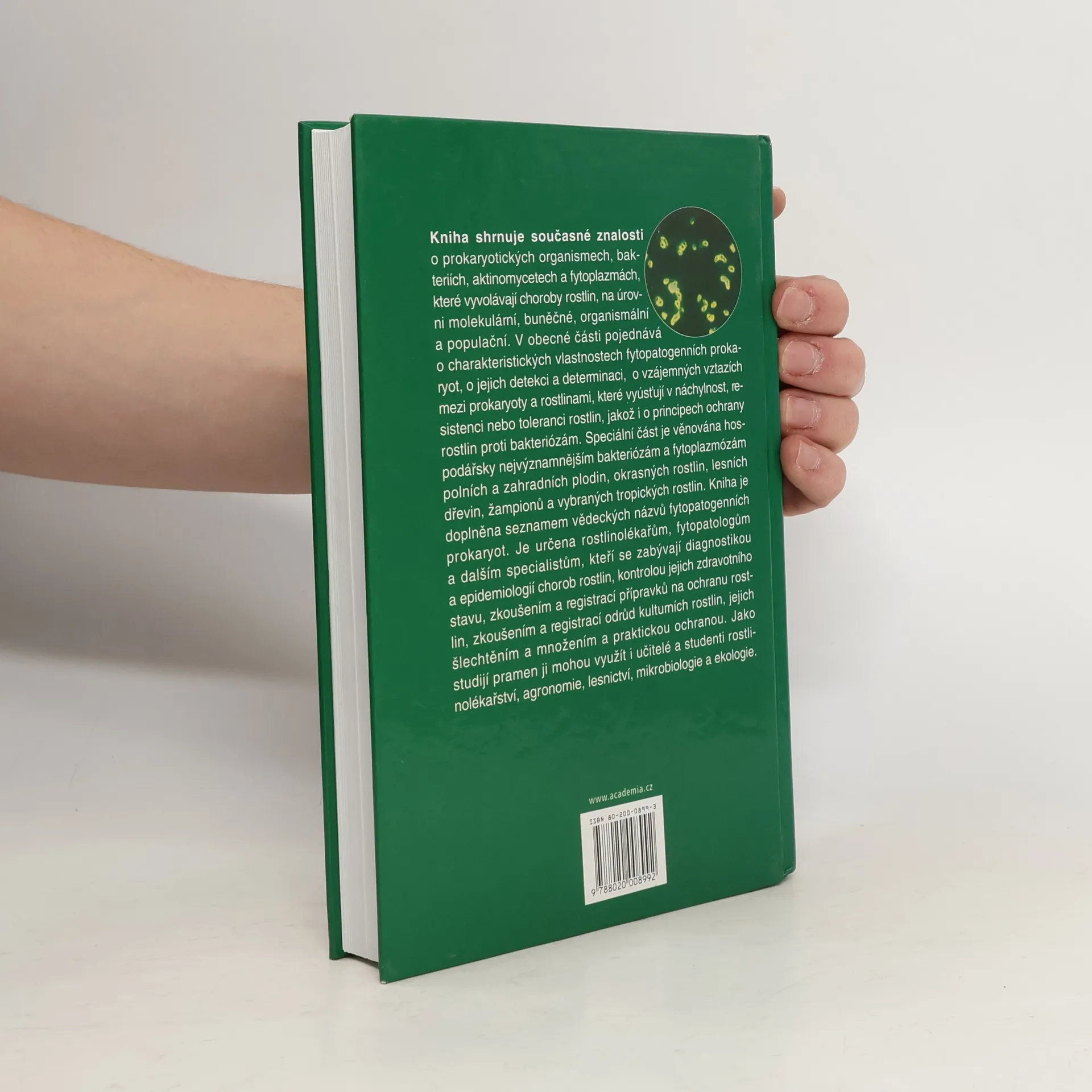 Kniha shrnuje současné znalosti o prokaryotických organismech, bakteriích, aktinomycetech a fytoplazmách, které vyvolávají choroby rostlin, na úrovni molekulární, buněčné, organismální a populační. V obecné části pojednává o charakteristických vlastnostech fytopatogenních prokaryot, o jejich detekci a determinaci, o vzájemných vztazích mezi prokaryoty a rostlinami, které vyúsťují v náchylnost, resistenci nebo toleranci rostlin, jakož i o principech ochrany rostlin proti bakteriózám. Speciální část je věnována hospodářsky nejvýznamnějším bakteriózám a fytoplazmózám polních a zahradních plodin, okrasných rostlin, lesních dřevin, žampionů a vybraných tropických rostlin. Kniha je doplněna seznamem vědeckých názvů fytopatogenních prokaryot. Je určena rostlinolékařům, fytopatologům a dalším specialistům, kteří se zabývají diagnostikou a epidemiologií chorob rostlin, kontrolou jejich zdravotního stavu, zkoušením a registrací odrůd kulturních rostlin, jejich šlechtěním a množením a praktickou ochranou. Jako studijní pramen ji mohou využít i učitelé a studenti rostlinolékařství, agronomie, lesnictví, mikrobiologie a ekologie.