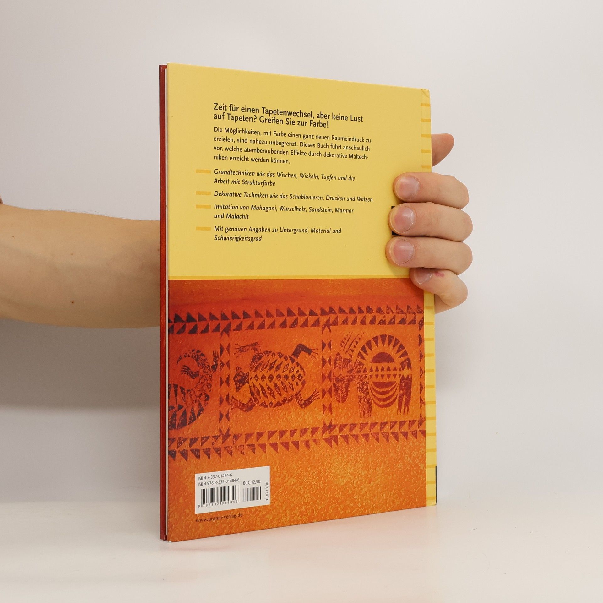 Zeit für einen Tapetenwechsel, aber keine Lust auf Tapeten? Greifen Sie zur Farbe! Die Möglichkeiten, mit Farbe einen ganz neuen Raumeindruck zu erzielen, sind nahezu unbegrenzt. Dieses Buch führt anschaulich vor, welche atemberaubenden Effekte durch dekorative Maltechniken erreicht werden können. Die Grundtechniken wie das Lasieren, Wischen und Stupfen werden ebenso erläutert wie die spezielleren Maltechniken, z. B. das Schablonieren, Drucken, Musterwalzen sowie die Holz-, Marmor- und Goldimitation. An beispielhaften Raumgestaltungen kommen die zuvor präsentierten Maltechniken – auch in Kombination – zur Anwendung. Zur Nachahmung unbedingt empfohlen!