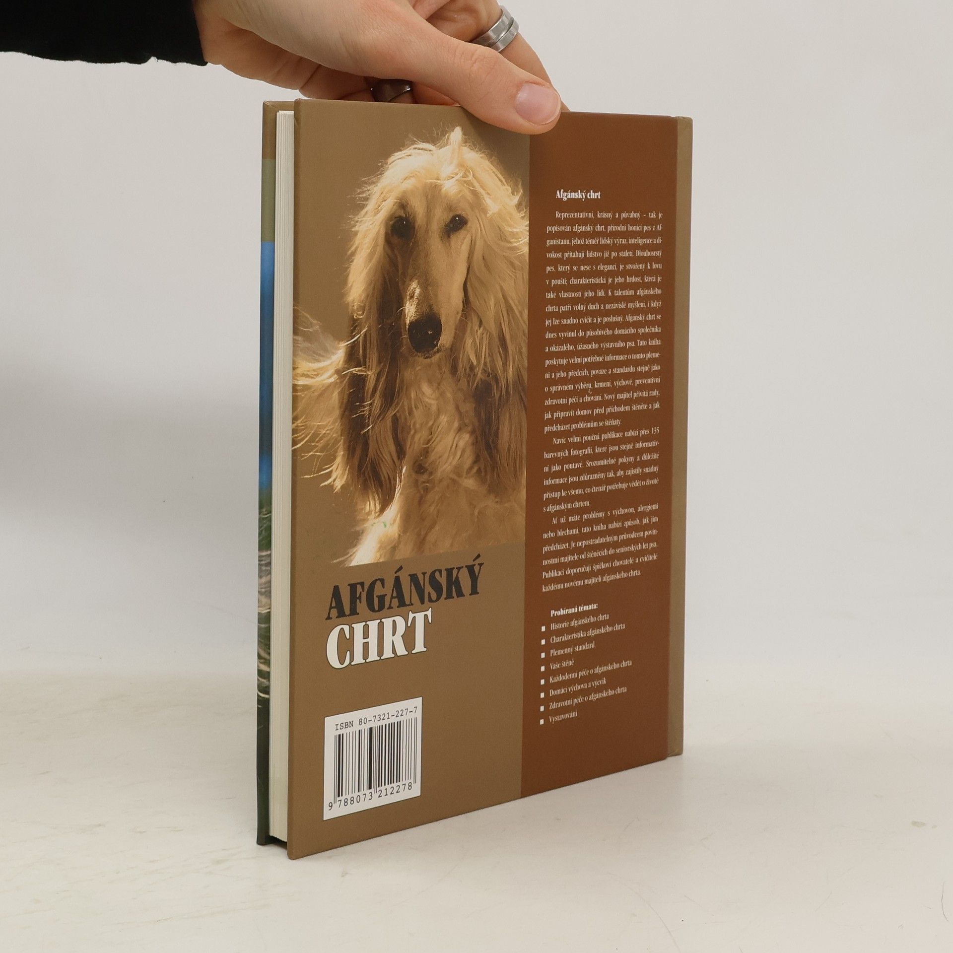 Kniha poskytuje cenné informácie o tomto plemene, jeho predkoch, povahe a štandarde. Preberá sa v nej správny výber šteniat, správanie, výchova a výcvik, kŕmenie a preventívna zdravotná starostlivosť. Noví majitelia sa dozvedia, ako pripraviť domov pred príchodom šteňaťa a ako predchádzať problémom so šteňatami. Kniha obsahuje viac ako 135 kvalitných farebných fotografií. Dôležité informácie sú zdôraznené tak, aby zaistili jednoduchý prístup k informáciám, ktoré čitateľ potrebuje k spolužitiu s afgánskym chrtom. Kniha je nepostrádateľným sprievodcom majiteľa afgánskeho chrta od šteňacieho až do seniorského veku psa. Či už máte problémy s výchovou, alergiami alebo parazitmi, táto kniha ponúka návod a dobré rady ako sa s nimi vysporiadať. Publikáciu odporúčajú špičkoví chovatelia a cvičitelia každému novému majiteľovi afgánskeho chrta. Hlavné témy: - História plemena - Charakteristika afgánskeho chrta - Plemenný štandart - Šteňa - Každodenná starostlivosť o afgánskeho chrta - Domáca výchova a výcvik - Zdravotná starostlivosť - Výstavy