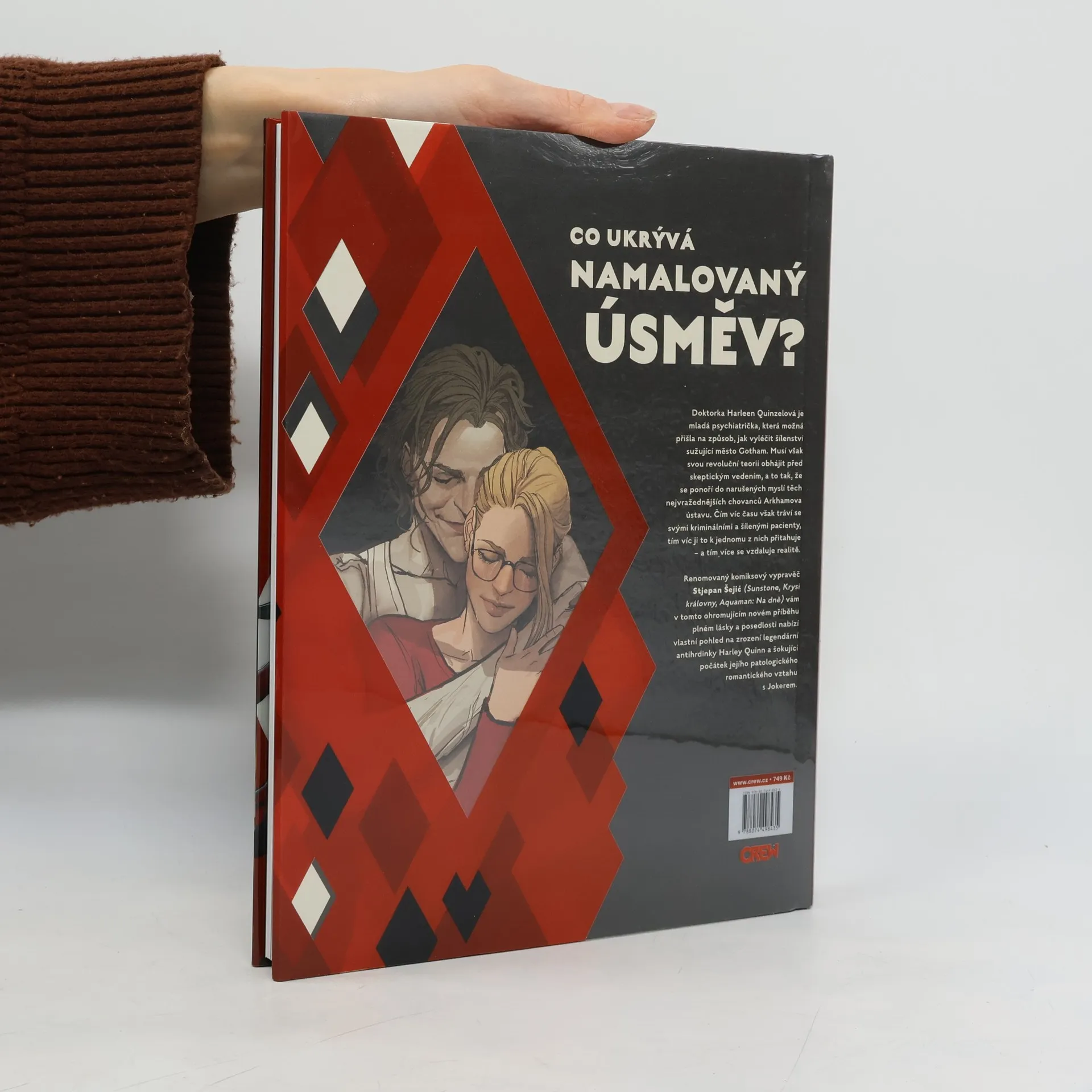 "Cesta do pekel je dlážděna dobrými úmysly.“ „Na té cestě jsem potkala bledého muže,“ „A on se na mě usmál…“ Doktorka Harleen Quinzelová, nadaná mladá psychiatrička, je na stopě léku, který by zbavil Gotham šílenství, a v úsilí o záchranu města před jím samotným neváhá sáhnout po drastickém řešení. Sledujte zrod legendární superpadoušky ve strhující nové verzi příběhu zvrácené a tragické lásky mezi Harley Quinn a Jokerem, kterou vám předkládá proslulý vypravěč Stjepan Šejić (Aquaman: Underworld, Sunstone).