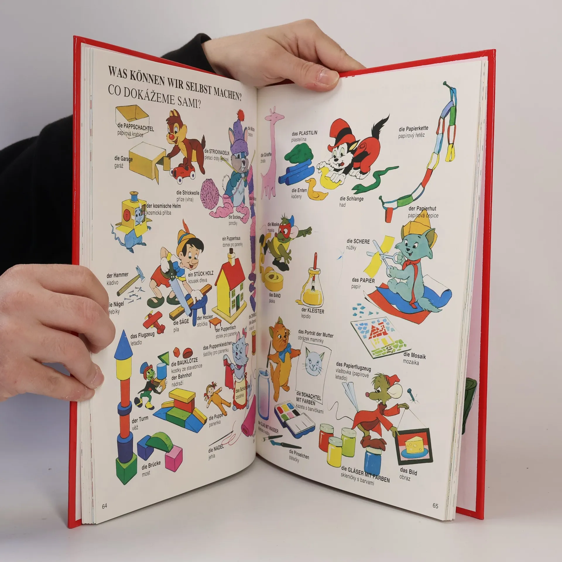Ilustrovaný slovník pro děti na témy: Časně zrána, Na ulici, Na poště, Forma a tvar, Barvy, Zvuky, Míry a váhy, Učíme se počítat, Jaro, léto, podzim, zima, Měsíce v roce, Sportovní soutěže, Hodina hudby, Stále v pohybu, Velikosti, Užitečné věci, Domácí práce, Praní, Na zahradě, V autodílně, Až budeme dospělí, Naše rodina, Rodiče a děti, Naši nejmladší, Části těla, V kuchyni, Na trhu, Hračky, V obchodním domě, Kupujeme oblečení, Co můžeme dělat za slunečného dne ?, Naše pocity, Co dokážeme sami ?, Co můžeme dělat za deštivého dne ?, Když jsme nemocní, Na nádraží, V lůne přírody, Na venkově, Příbytky pro zvířata, Na mořském pobřeží, V restauraci, Výlet po řece, Pod vodou, Co létá ve vzduchu ?, Na letišti, V kosmické lodi, Všechno, co má kola, Zajímavosti ze světa, V lunaparku, Čas na hraní, V zoologické zahradě, V televizním studiu, Hasičský sbor, V divadle, Budovy, Stavba domu, Nábytek, V cirkuse, Je čas se koupat, Je čas jít spát. První vydání. Cena knihy v čase vydání: 99.- Kčs.