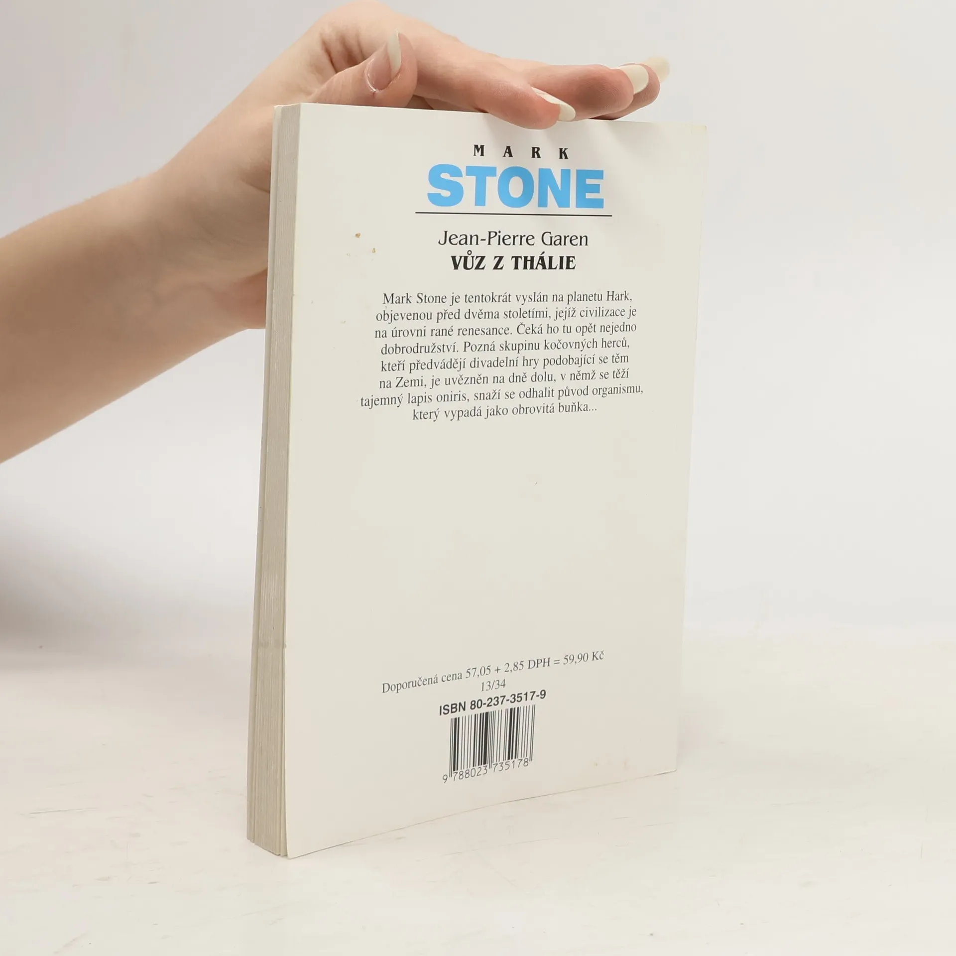 Mark Stone je tentokrát vyslán na planetu Hark, objevenou před dvěma stoletími, jejíž civilizace je na úrovni rané renesance. Čeká ho tu opět nejedno dobrodružství. Pozná skupinu kočovných herců, kteří předvádějí divadelní hry podobající se těm na Zemi, je uvězněn na dně dolu, v němž se těží tajemný lapis oniris, snaží se odhalit původ organismu, který vypadá jako obrovitá buňka… -- zdroj: www.legie.info --