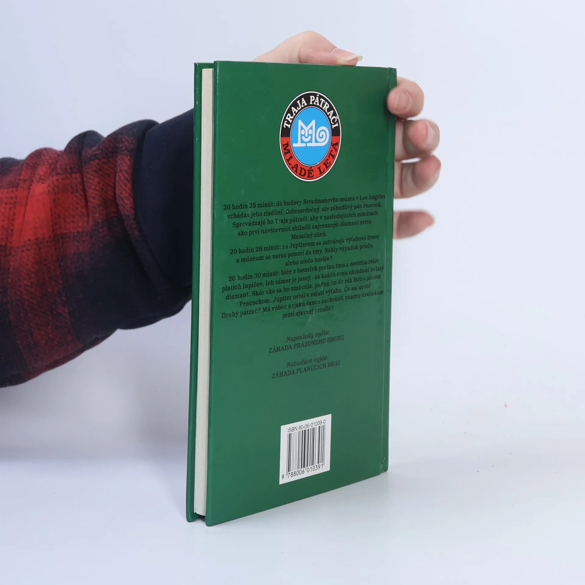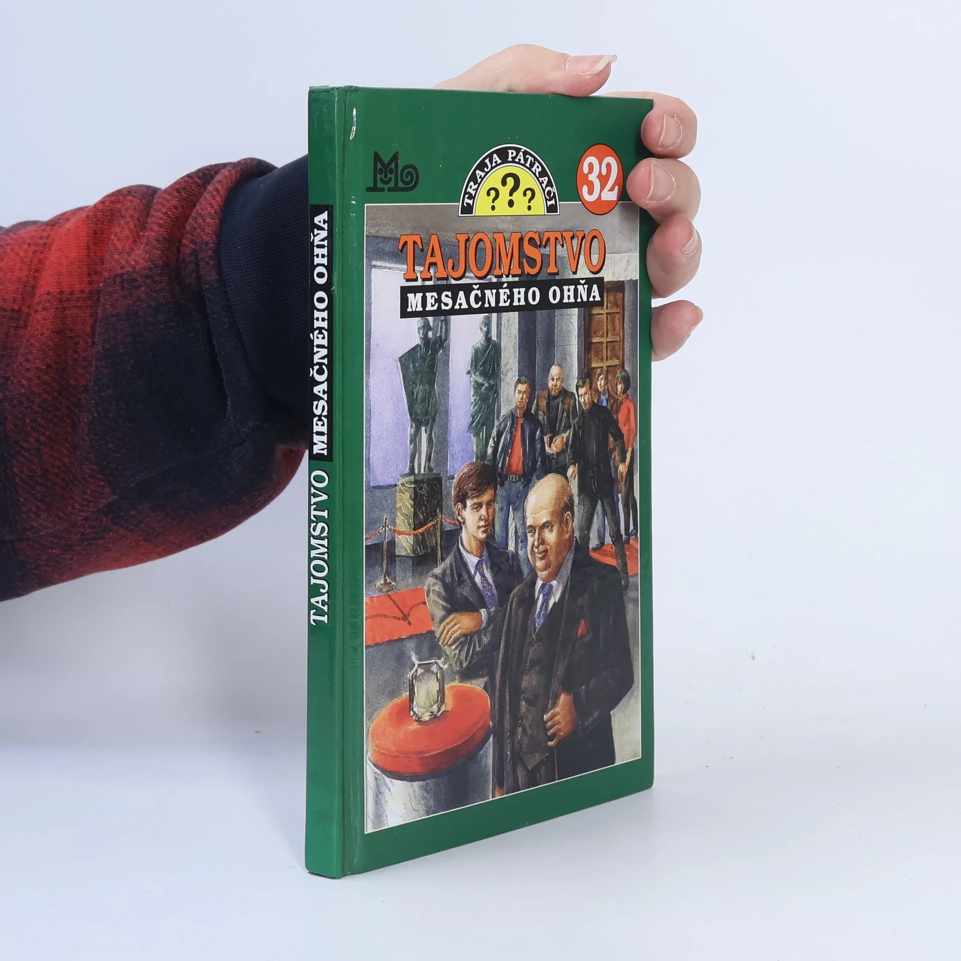 Do budovy Steadmanovho múzea v Los Angeles vchádza jeho riaditeľ, dobrosrdečný, ale zábudlivý pán Peacock. Sprevádzajú ho Traja pátrači, aby v nasledujúcich minútach ako prví návštevníci zhliadli najcennejší diamant sveta - Mesačný oheň. Za Jupiterom sa zatvárajú výťahové dvere a múzeum sa naraz ponorí do tmy. Náhly výpadok prúdu, alebo niečo horšie ? Lúče z bateriek pretnú tmu a osvietia tváre piatich lupičov. Ich zámer je jasný. Za každú cenu ukradnúť belasý diamant. Skôr ako sa ho zmocnia, padnú im do rúk Bob s pánom Peacockom. Jupiter ostal v zajatí výťahu. Čo asi urobí Druhý pátrač ? Má vôbec nejakú šancu zachrániť vzácny drahokam proti zjavnej presile ?