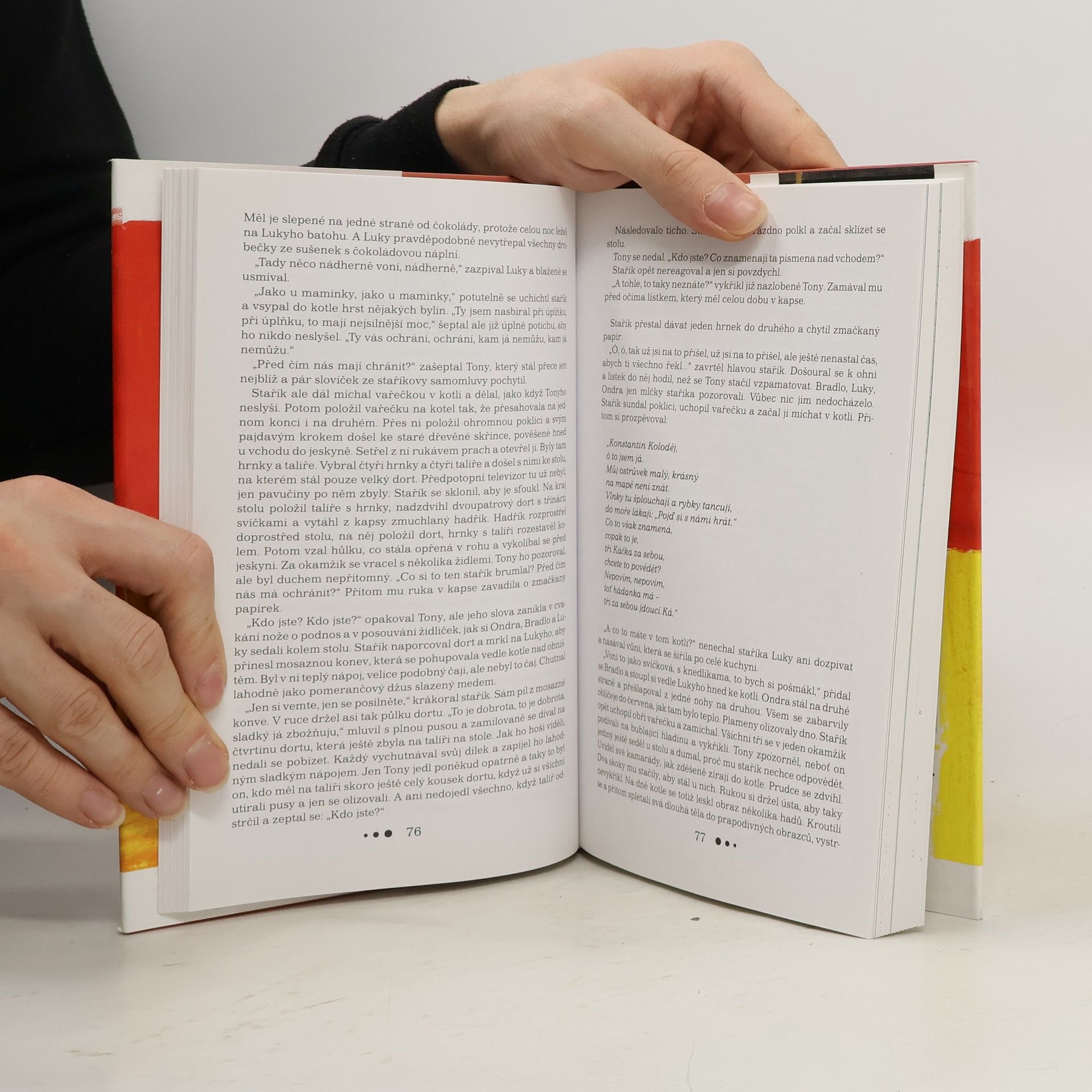Když čtveřice kamarádů - Ondra, Tony, Luky a Bradlo - ze zvědavosti vstoupí do prostoru za rozbitým zrcadlem v bludišti Petřínské rozhledny, netuší, že pro ně začíná neuvěřitelné dobrodružství. Ocitnou se bez moderních vymožeností daleko od domova a hluboko v historii, ve světě, který ovládají antičtí bohové. Chlapci se stávají součástí podivné a nebezpečné hry dvou starců. Když se jim podaří obstát a splnit řadu zvláštních úkolů, bude zrušena jedna dávná kletba… Tajemný příběh o dobrodružné cestě do minulosti doplnil obrázky Jindřich Kovařík.