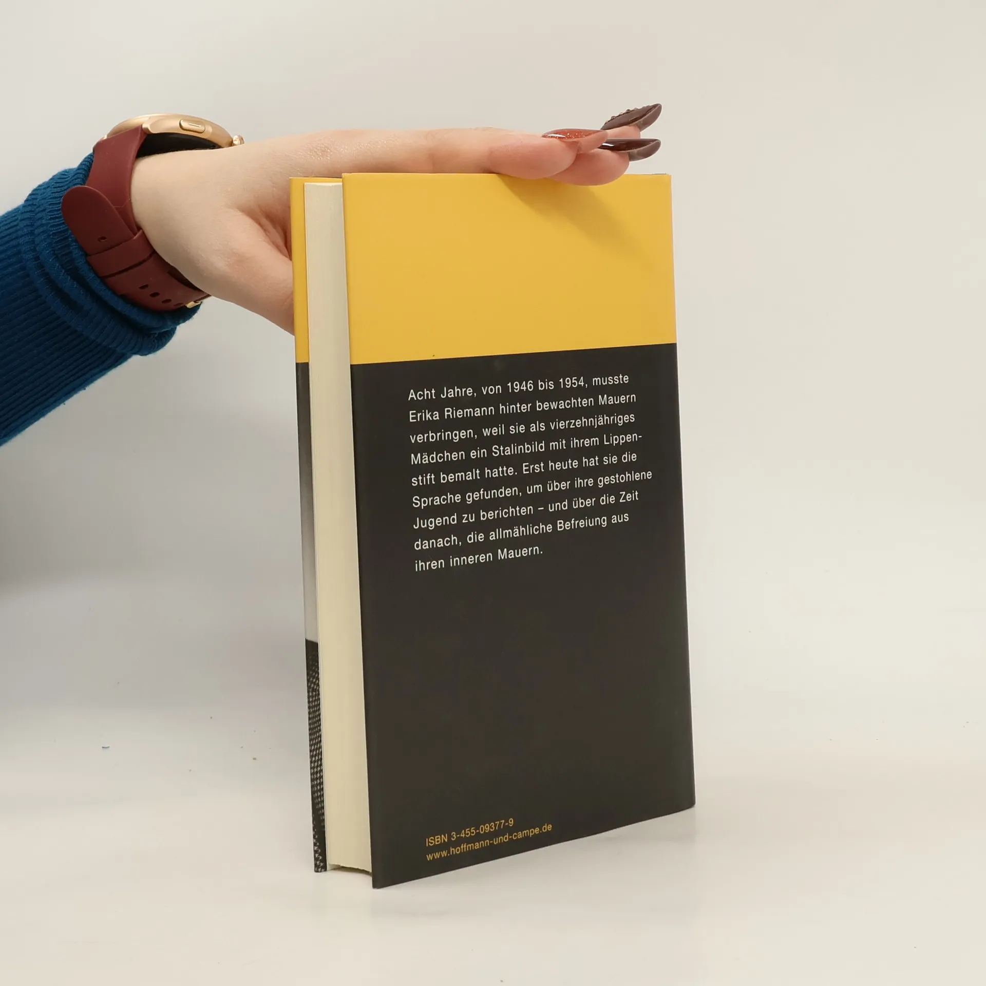 Die Geschichte einer gestohlenen Jugend und einer Befreiung aus den Mauern des Schweigens. „Ich hatte immer das Gefühl, gegen eine Wand zu laufen“, sagte Erika Riemann in einem 1991 in der Frankfurter Rundschau erschienenen Porträt. Erst heute hat sie die Sprache gefunden, um über ihre Erlebnisse zu berichten. Sommer 1945 im thüringischen Mühlhausen: Erika Riemann ist vierzehn Jahre alt, als sie eines Tages mit ein paar anderen Jugendlichen ihre gerade wieder hergerichtete Schule besichtigt. Ihr Blick fällt auf ein Stalin-Bild genau an jener Stelle, an der bis vor kurzem ein Hitler-Porträt hing. „Mit dem Spruch ‚Du siehst ja ziemlich traurig aus‘“, schreibt sie, „trat ich an das Bild heran und malte mit dem Lippenstift eine kecke Schleife um den Schnauzbart.“ Jemand muss sie verpfiffen haben, denn schon kurze Zeit später beginnt für Erika Riemann eine achtjährige Odyssee durch ostdeutsche Zuchthäuser und Lager mit Stationen wie Bautzen, Sachsenhausen und Hoheneck. Was es für sie bedeutete, eine ganze Jugend hinter Mauern zu verbringen, Prügel, Schikane, Hunger und Depression durchzustehen und nach der Entlassung zutiefst traumatisiert im bundesdeutschen Wirtschaftswunder ihre Frau zu stehen - darüber kann sie erst heute, fünfzig Jahre später, berichten. Fünfzig Jahre hat sie gebraucht, um ihre Nachkriegsjahre zu verarbeiten. Ein erschütternder Lebensbericht aus der jüngsten deutschen Vergangenheit.