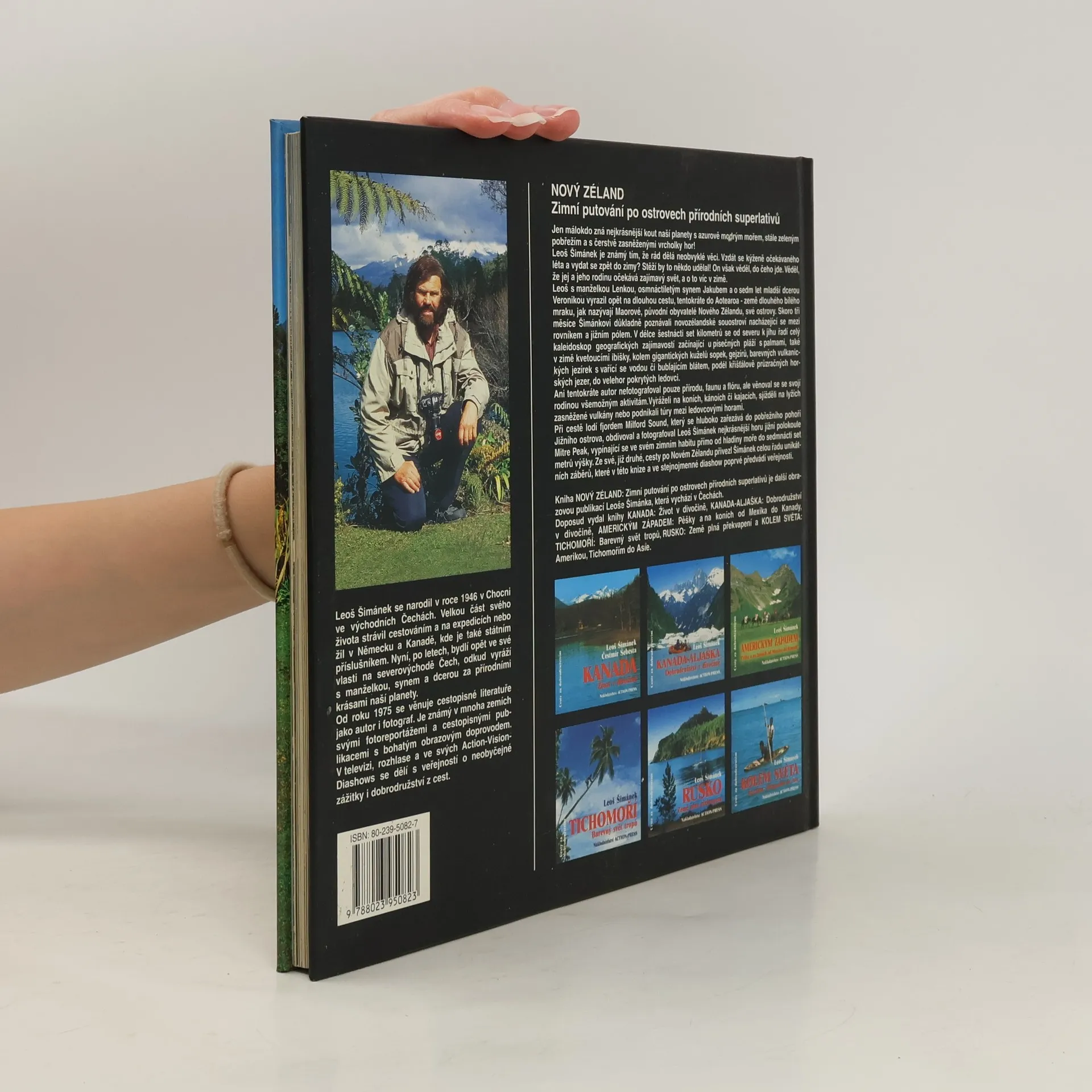 Podtitul: Zimní putování po ostrovech přírodních superlativů. Jen málokdo zná nejkrásnější kout naší planety se sytě modrým mořem, stále zeleným pobřežím a s čerstvě zasněženými vrcholky hor! Leoš Šimánek je známý tím, že rád dělá neobvyklé věci. Vzdát se kýženě očekávaného léta a vydat se zpět do zimy? Stěží by to někdo udělal! On však věděl, do čeho jde. Věděl, že jej a jeho rodinu očekává zajímavý svět, a o to víc v zimě. Leoš s manželkou Lenkou, osmnáctiletým synem Jakubem a o sedm let mladší dcerou Veronikou vyrazil opět na dlouhou cestu, tentokráte do Aotearoa – země dlouhého bílého mraku, jak nazývají Maorové, původní obyvatelé Nového Zélandu, své ostrovy. Skoro tři měsíce důkladně poznávali Šimánkovi novozélandské souostroví nacházející se mezi rovníkem a jižním pólem. V délce šestnácti set kilometrů se od severu k jihu řadí celý kaleidoskop geografických zajímavostí začínající u písečných pláží s palmami, také v zimě kvetoucími ibišky, kolem gigantických kuželů sopek, gejzírů, barevných vulkanických jezírek s vařící se vodou či bublajícím blátem, podél blankytně modrých horských jezer, do velehor pokrytých ledovci. Ani tentokráte autor nefotografoval pouze přírodu, faunu a flóru, ale věnoval se svojí rodinou všemožným aktivitám. Vyráželi na koních, kánoích či kajacích, sjížděli na lyžích zasněžené vulkány nebo podnikali túry mezi ledovcovými velehorami.