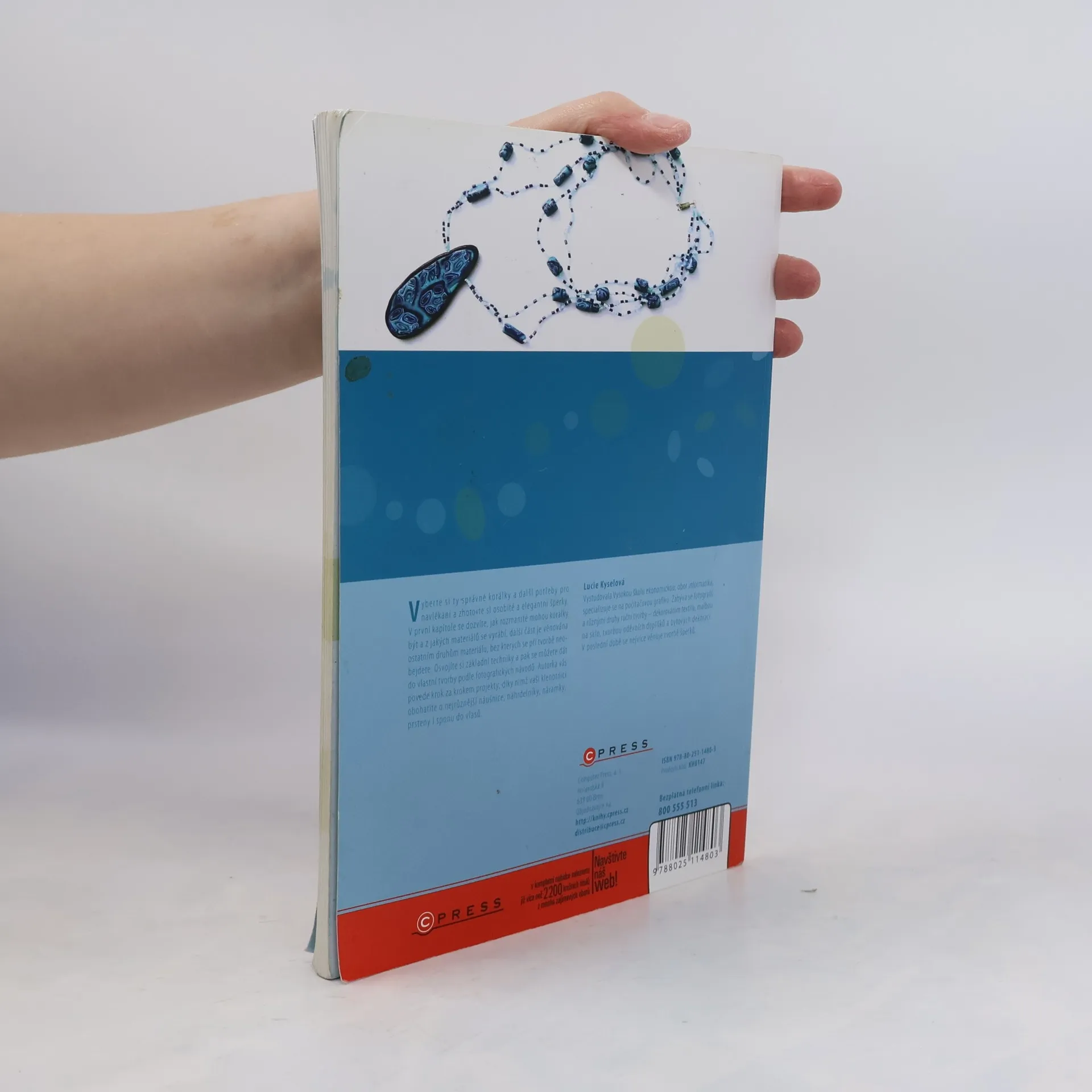 Vyberte si ty správné korálky a další potřeby pro navlékání a zhotovte si osobité a elegantní šperky. V první kapitole se dozvíte, jak rozmanité mohou korálky být a z jakých materiálů se vyrábí, další část je věnována ostatním druhům materiálu, bez kterých se při tvorbě neobejdete. Osvojíte si základní techniky a pak se můžete dát do vlastní tvorby podle fotografických návodů. Autorka vás povede krok za krokem projekty, díky nimž vaši klenotnici obohatíte o nejrůznější náušnice, náhrdelníky, náramky, prsteny i sponu do vlasů. Vyberte si ty správné korálky a další potřeby pro navlékání a zhotovte si osobité a elegantní šperky. V první kapitole se dozvíte, jak rozmanité mohou korálky být a z jakých materiálů se vyrábí, další část je věnována ostatním druhům materiálu, bez kterých se při tvorbě neobejdete. Osvojíte si základní techniky a pak se můžete dát do vlastní tvorby podle fotografických návodů. Autorka vás povede krok za krokem projekty, díky nimž vaši klenotnici obohatíte o nejrůznější náušnice, náhrdelníky, náramky, prsteny i sponu do vlasů. O autorce: Lucie Kyselová Vystudovala Vysokou školu ekonomickou, obor informatika, specializuje se na počítačovou grafiku. Zabývá se fotografií a různými druhy ruční tvorby dekorováním textilu, malbou na sklo, tvorbou oděvních doplňků a bytových dekorací. V poslední době se nejvíce věnuje tvorbě šperků.