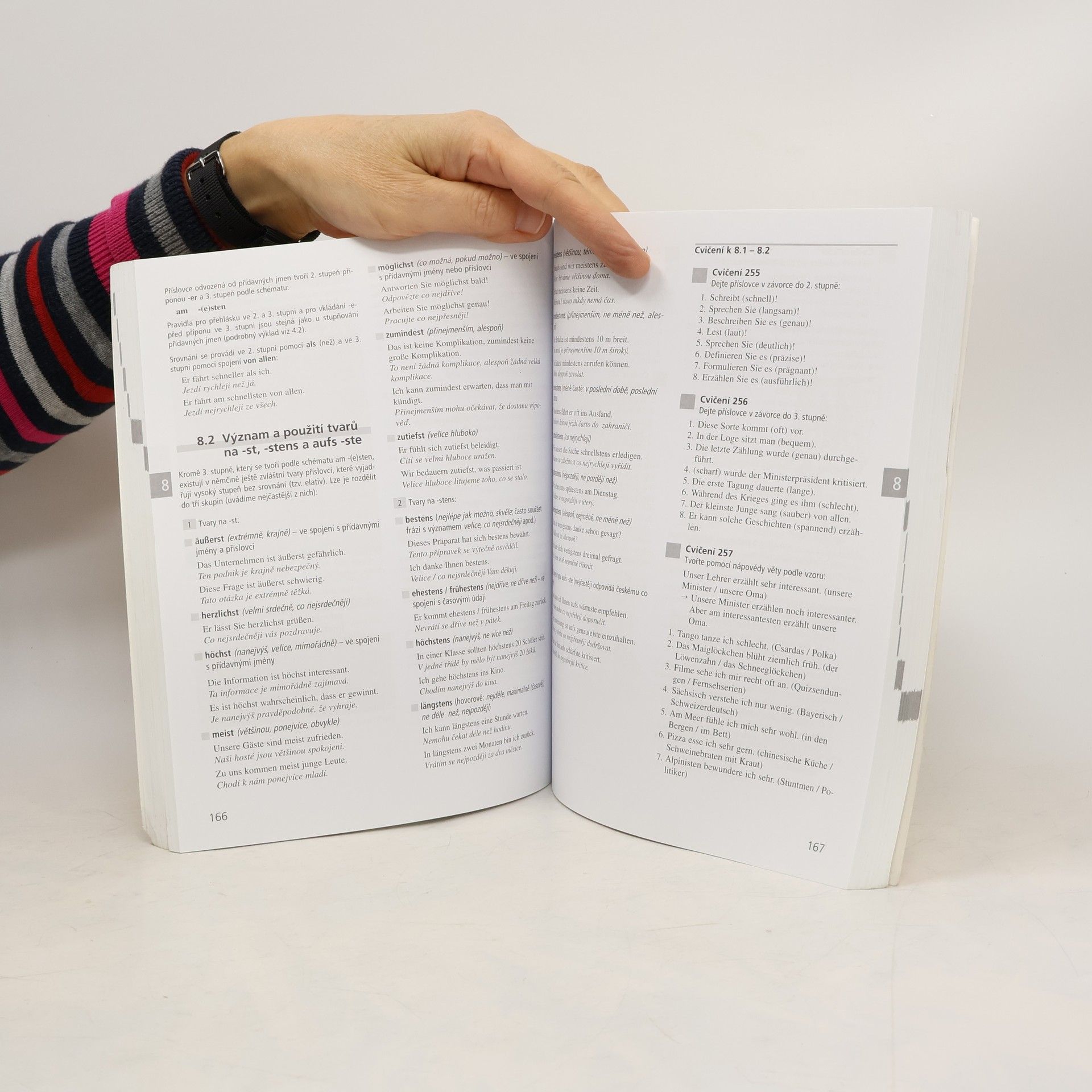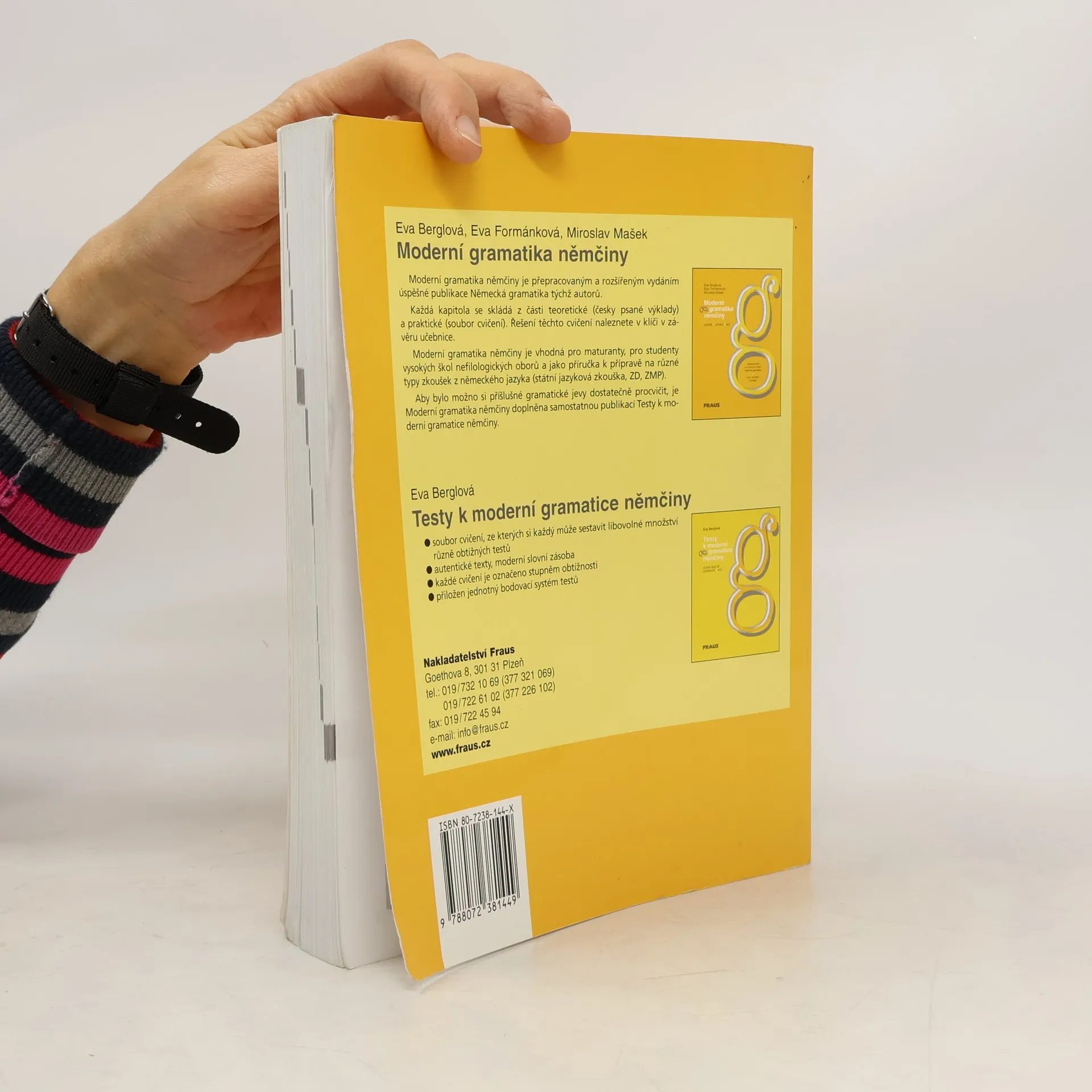 Publikace je přepracovaným a rozšířeným vydáním úspěšné koncipované gramatiky renomovaných autorů. Je vhodná pro středoškolské studenty a gymnazisty. Poskytne dobrou gramatickou průpravu, která je třeba při přípravě na různé typy zkoušek z němčiny (ZD, ZMP, státní jazyková zkouška). Výkladová část učebnice začíná fonetickým úvodem, následuje podrobný gramatický výklad tvarosloví, není opomenuta ani větná stavba a přehled nejdůležitějších pravidel nového německého pravopisu. Výkladová část je psána česky, německé příklady jsou uvedeny s českými ekvivalenty. Za každým gramatickým celkem následují cvičení, jejichž řešení najdete v klíči v závěru učebnice. Čeští autoři učebnice vytvářeli se zřetelem na rozdíly českého a německého jazyka a ve cvičeních procvičují nejčastější chyby, kterých se český student dopouští. A co je opravdu nové? Jistě příjemně překvapí modernější grafické zpracování učebnice i doplnění vtipnými ilustracemi. Jednotlivé komponenty jsou jinak členěny: klíč je součástí učebnice, testy jsou rozšířeny a vydány samostatně pod titulem Testy k moderní gramatice němčiny. Ve výkladové části jsou nově zařazeny kapitola o vazbách sloves, podstatných i přídavných jmen a fonetická část. Celá učebnice je samozřejmě přepracována podle pravidel nového německého pravopisu.