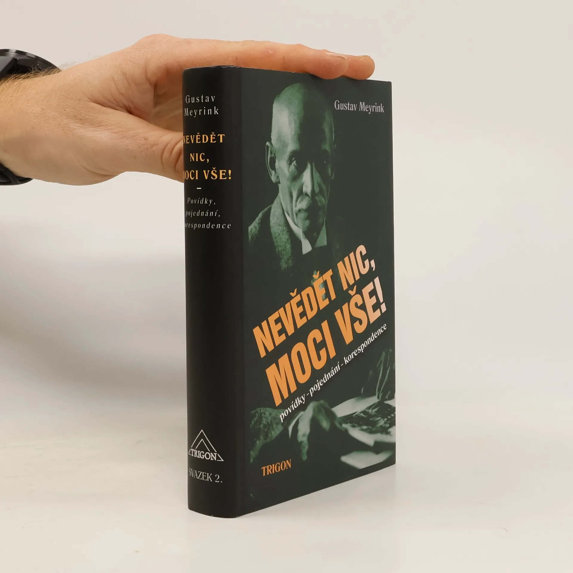 Povídky, pojednání, korespondence. Antologie Meyrinkova díla, jež dosud nebylo českému čtenáři zpřístupněno. Kniha obsahuje výbor Meyrinkových článků, textů z pozůstalosti a neznámou korespondenci s pražským nakladatelem Neubertem. Nejenže většina textů vychází česky poprvé, ale Meyrinkova korespondence s Neubertem nebyla dosud vůbec, ani v zahraničí, zveřejněna. Kniha přináší také množství dosud nepublikovaných fotografií.