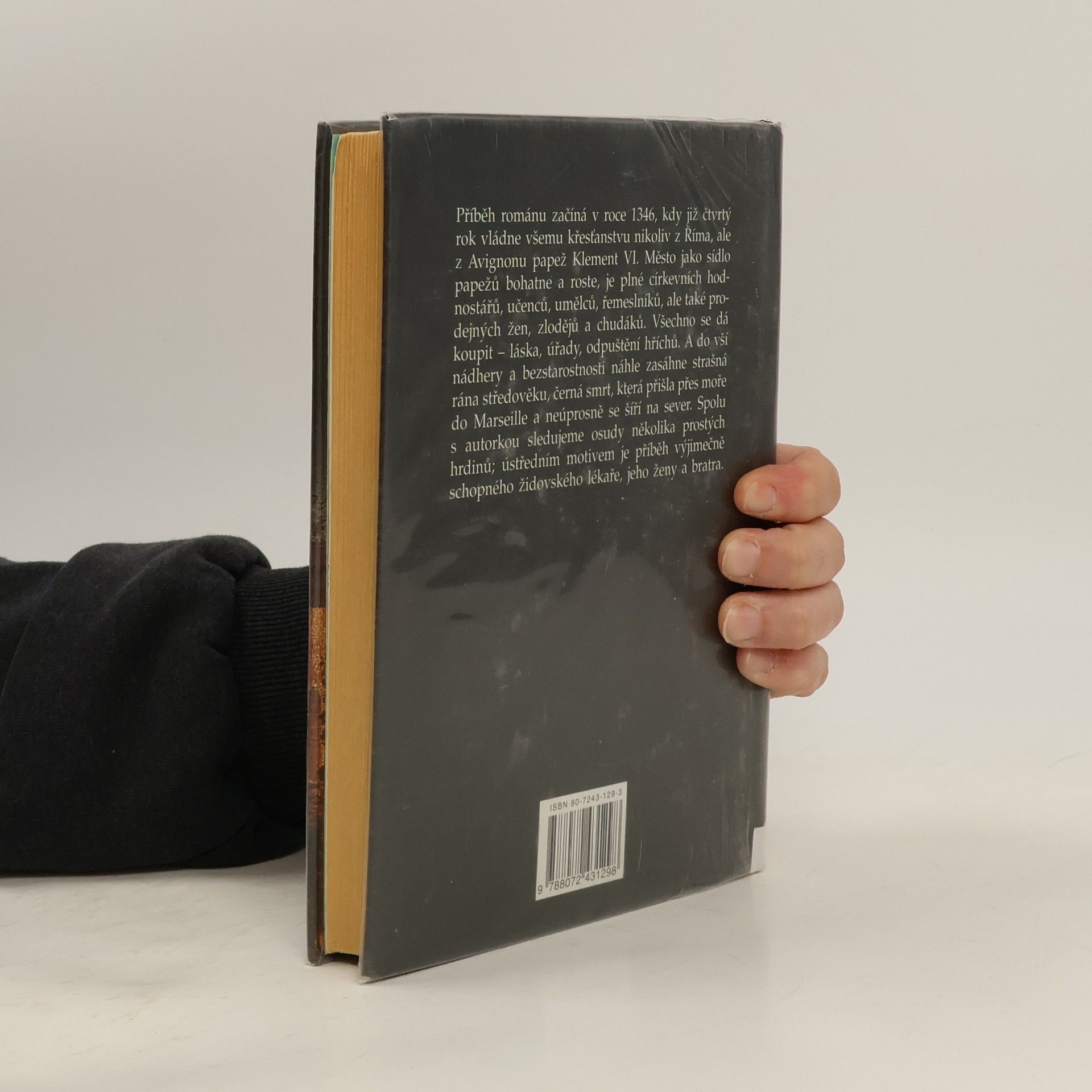 Příběh románu začíná v roce 1346, kdy již čtvrtý rok vládne všemu křesťanstvu nikoliv z Říma ale z Avignonu papež Klement VI. Město jako sídlo papežů bohatne a roste, je plné církevních hodnostářů , učenců, umělců, řemeslníků, ale také prodejných žen, zlodějů a chudáků. Všechno se dá koupit - láska, úřady, odpuštění hříchů. A do vší nádhery a bezstarostnosti náhle zasáhne strašná rána středověku, černá smrt, která přišla přes moře do Marseille a neúprosně se šíří na sever. Spolu s autorkou sledujeme osudy několika prostých hrdinů. Ústředním motivem je příběh vyjímečně schopného židovského lékaře, jeho ženy a bratra .