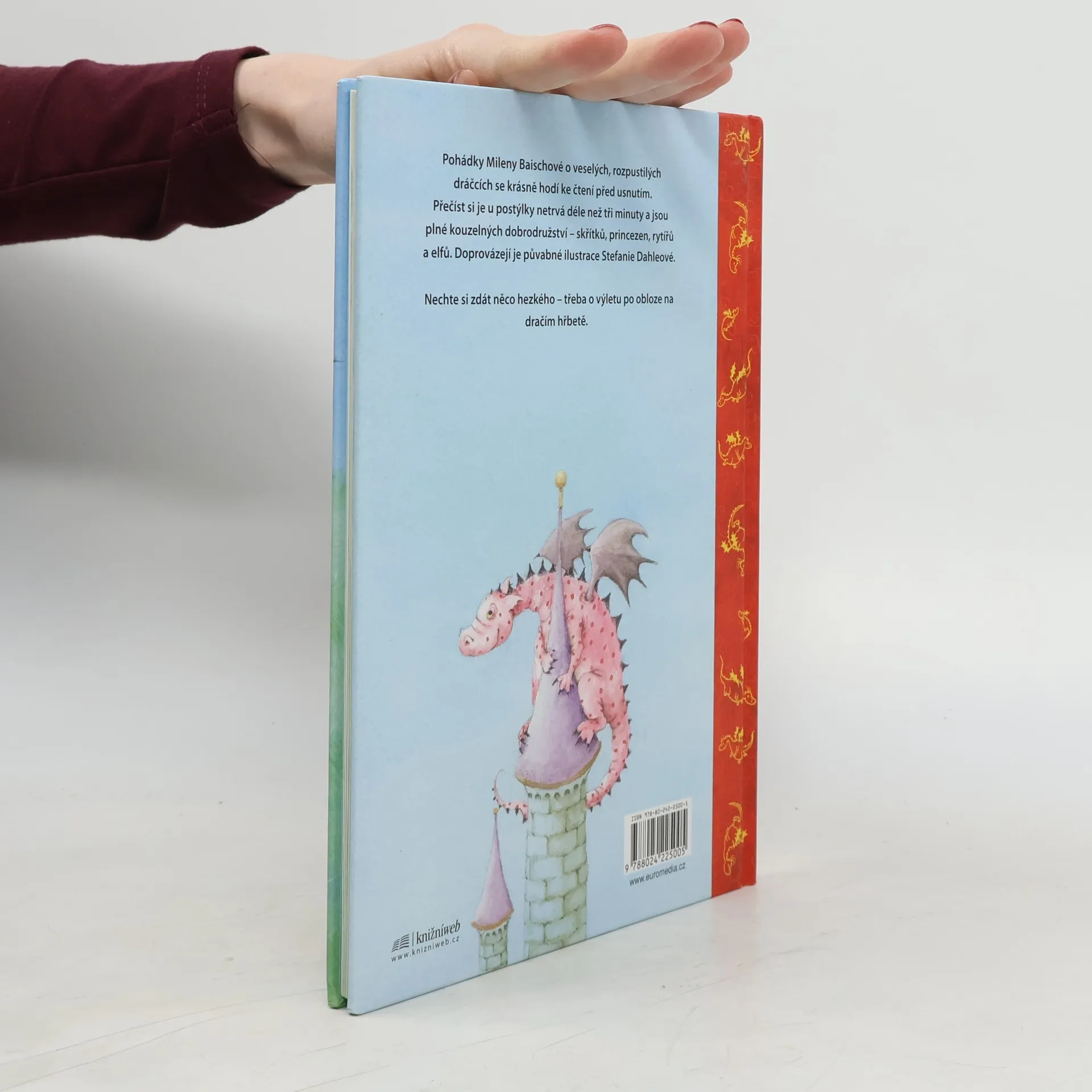 Pohádky Mileny Baischové o veselých, rozpustilých dráčcích se krásně hodí ke čtení před usnutím. Přečíst si je u postýlky netrvá déle než tři minuty a jsou plné kouzelných dobrodružství - skřítků, princezen, rytířů a elfů. Doprovázejí je půvabné ilustrace Stefanie Dahleové. Nechte si zdát něco hezkého - třeba o výletu po obloze na dračím hřbetě.