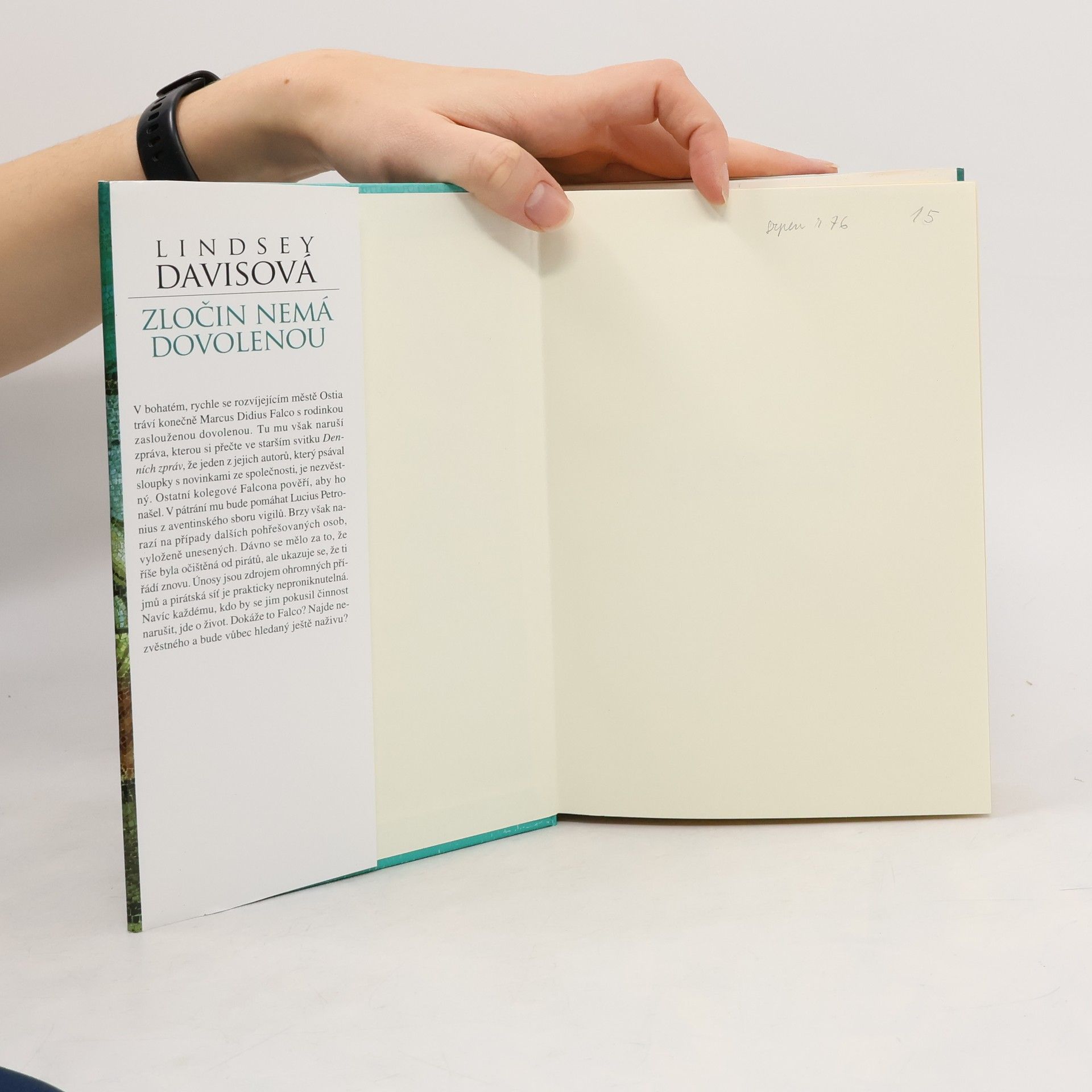 V bohatém, rychle se rozvíjejícím městě Ostia tráví konečně Marcus Didius Falco s rodinkou zaslouženou dovolenou. Tu mu však naruší zpráva, kterou si přečte ve starším svitku Denních zpráv, že jeden z jejich autorů, který psával sloupky se zprávami ze společnosti, je nezvěstný. Ostatní kolegové Falcona pověří, aby ho našel. V pátrání mu bude pomáhat Lucius Petronius z aventinského sboru vigilů. Brzy však narazí na případy dalších pohřešovaných osob, vyloženě unesených. Dávno se mělo za to, že říše byla očištěná od pirátů, ale ukazuje se, že řádí znovu. Únosy jsou zdrojem ohromných příjmů a pirátská síť je prakticky neproniknutelná. Navíc tomu, kdo by se jim pokusil činnost narušit, jde o život. Dokáže to Falco? Najde nezvěstného a bude vůbec postižený ještě naživu? Stejně jako u předchozích knih i tady je děj opět plný napětí. Autorka nás seznamuje s životem v půvabném bohatém městě s rušným přístavem, jak s jeho viditelnou tváří, tak i s jeho zločineckým rubem. Falco prožívá další trampoty a útočiště nachází v kruhu své rodinky. A celé vyprávění je jako vždy kořeněno vtipem.