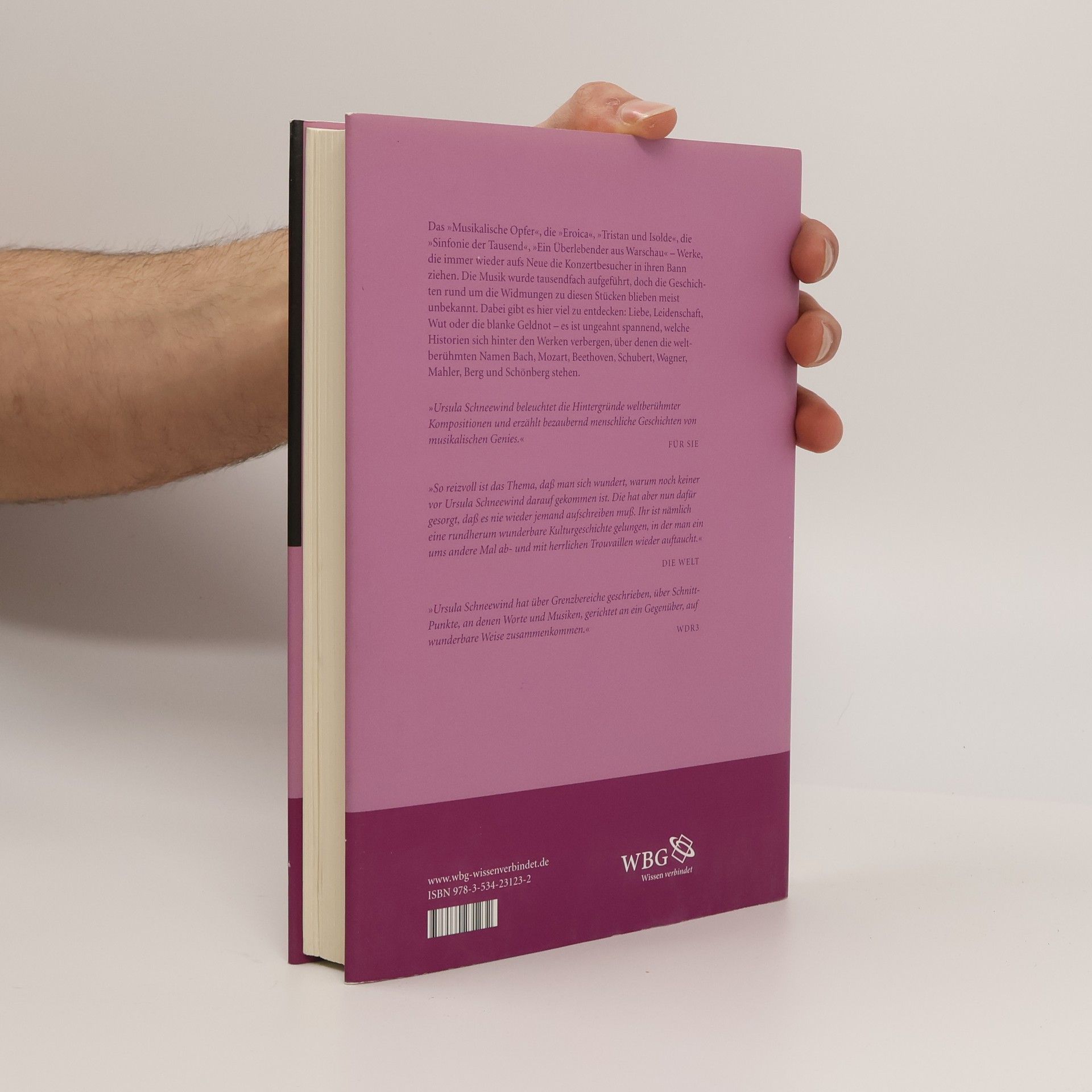 Die Musik wurde tausendfach aufgeführt und gehört, doch die Geschichten rund um die Widmungen zu diesen Stücken blieben meist unbekannt. Dabei gibt es hier viel zu entdecken: Wut, Liebe, Leidenschaft oder die blanke Geldnot – es ist oft ungeahnt spannend, welche Historien sich hinter den Werken verbergen, über denen die weltberühmten Namen Bach, Mozart, Beethoven, Schubert, Wagner, Mahler, Berg und Schönberg stehen. Ursula Schneewind schreibt belletristisch auf gehobenem Niveau. Die Texte sind mit biografischen Informationen unterfüttert und genau recherchiert. Sie lassen sich so flüssig und unterhaltsam lesen wie Kurzgeschichten.