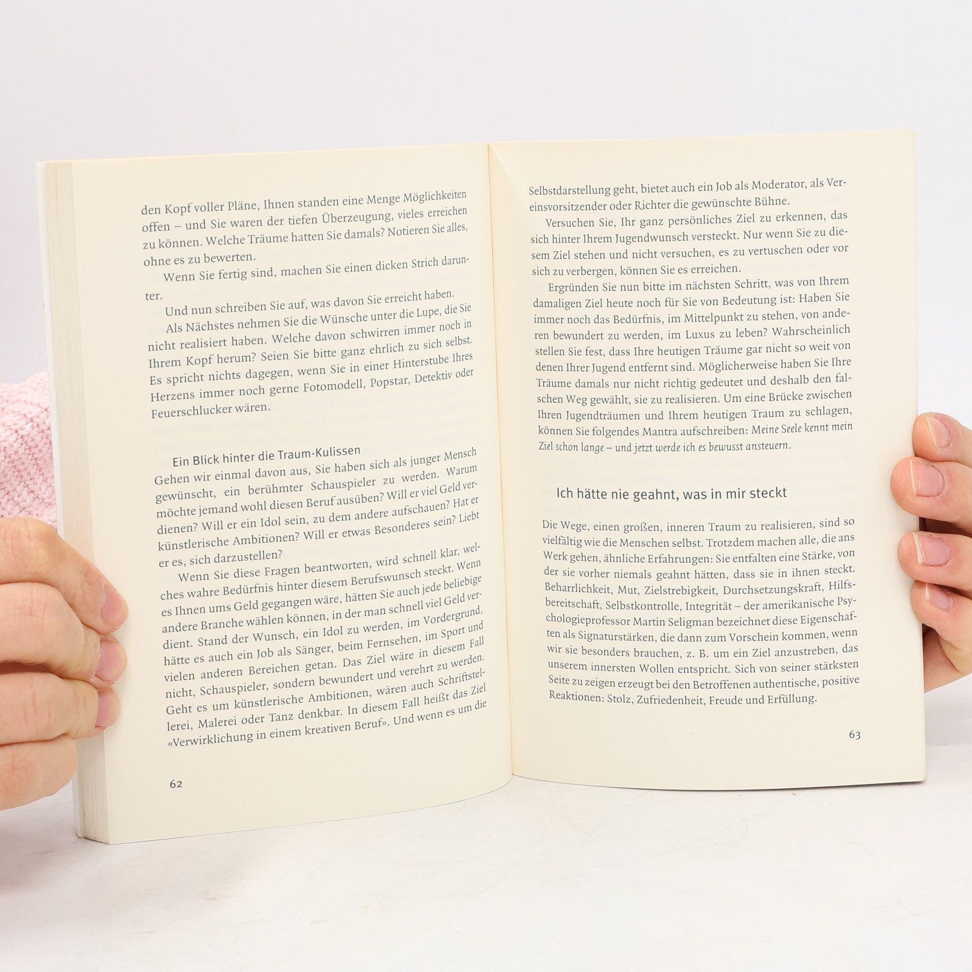 In diesem Buch geht es gar nicht so sehr um die Verwirklichung als vielmehr um das Finden des persönlichen Lebenstraums. Wer vor allem praktische Hilfestellungen, Motivationstipps und Anleitungen zum Selbstmanagement sucht, mit denen er konkrete Ziele stecken und in die Tat umsetzen kann, wird enttäuscht sein. Gerti Samel setzt früher an. Das größte Problem ist ihrer Überzeugung nach nämlich, dass viele Menschen gar nicht wissen, wie ihre Lebensvision eigentlich aussieht, wofür sie leben, was sie erreichen wollen und was sie am besten können. Der Weg, dies herauszufinden, führt nicht über To-Do-Listen und Zeitpläne, sondern über Auto-Suggestion, Mantras, Affirmationen, Rituale und über viel Schreibarbeit im persönlichen Traumtagebuch. Der Leser soll die spirituelle Kraft der Selbsterkenntnis in sich wecken und seine wahre Bestimmung erkennen. Die ist, so Samel, schon von Geburt an in uns angelegt, sodass wir schon als Kind wissen, was wir sein wollen und können. Wir vergessen es nur wenn wir älter werden. Es gilt also, die Lebensgeschichte und das Unbewusste nach Hinweisen auf diese Bestimmung zu durchforsten.