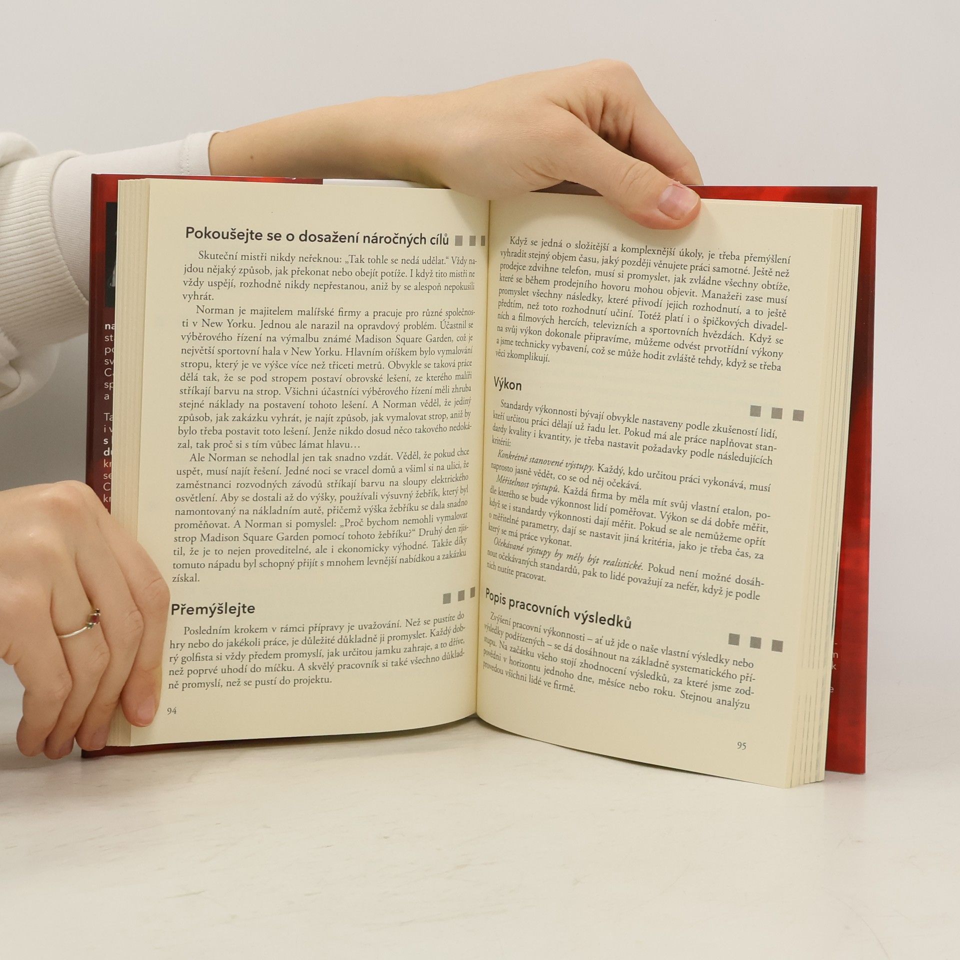 Kniha pro všechny, kdo chtějí být úspěšnými manažery a leadry ? Dobrý leader vytváří prostředí, kde se daří spolupráci a kde lidé vědí, že jejich zapojení a nápady jsou vítané ? Nešéfujte, ale veďte ? Buďte připraveni převzít iniciativu ? efektivní leader se chová proaktivně a nikoli reaktivně ? Dejte svým lidem příležitost, aby plně využili svého nadání a svých dovedností ? Udržujte si entuziasmus, motivujte své lidi tím, že budete neustále oceňovat jejich práci ? Vypracujte odpovídající systém odměňování, který druhé pobízí k dosažení cílů ? Koučujte a neustále dávejte svým lidem konstruktivní zpětnou vazbu ? Zaangažujte svůj tým do procesu vytváření a dosahování cílů ? Dejte lidem svobodu, ať sami kontrolují svou práci. Povzbuzujte je, aby přicházeli s návrhy na vylepšení ? Když lidé vědí, co přesně se od nich očekává, sami mohou průběžně monitorovat své pracovní výsledky.
