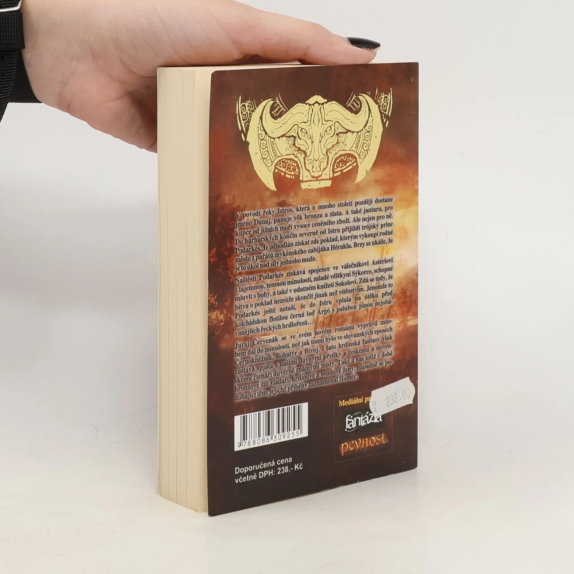 V povodí řeky Istros, která o mnoho století později dostane jméno Dunaj, panuje věk bronzu a zlata. A také jantaru, pro kupce od jižních moří vysoce ceněného zboží. Ale nejen pro ně. Do barbarských končin severně od Istru přijíždí trójský princ Podarkés, Je odhodlán získat zde poklad, kterým vykoupí rodné město z pařátů mykénského zabijáka Hérakla. Brzy se ukáže, že je to úkol nad síly jednoho muže. Naštěstí Podarkés získává spojence ve válečníkovi Astériovi s tajemnou, temnou minulostí, mladé věštkyni Sýkorce, schopné mluvit s bohy, a také v udatném knížeti Sokolovi. Zdá se tedy, že bitva o poklad nemůže skončit jinak než vítězstvím. Jenomže to Podarkés ještě netuší, že do Istru vplula na útěku před kolchidskou flotilou černá loď Argó s palubou plnou nejobávanějších řeckých hrdlořezů... Juraj Červenák se ve svém novém románu vypravil mohem dál do minulosti, než jak tomu bylo ve slovanských eposech Černokněžník, Bohatýr a Bivoj. I tato hrdinská fantasy však zůstává spjata s našimi dávnými předky a českému a slovenskému čtenáři důvěrně známými místy. Také u nás totiž v době bronzové žili vladaři, hrdinové a osudové ženy, nápadně se podobající těm, jejichž příběhy zaznamenal Homér.