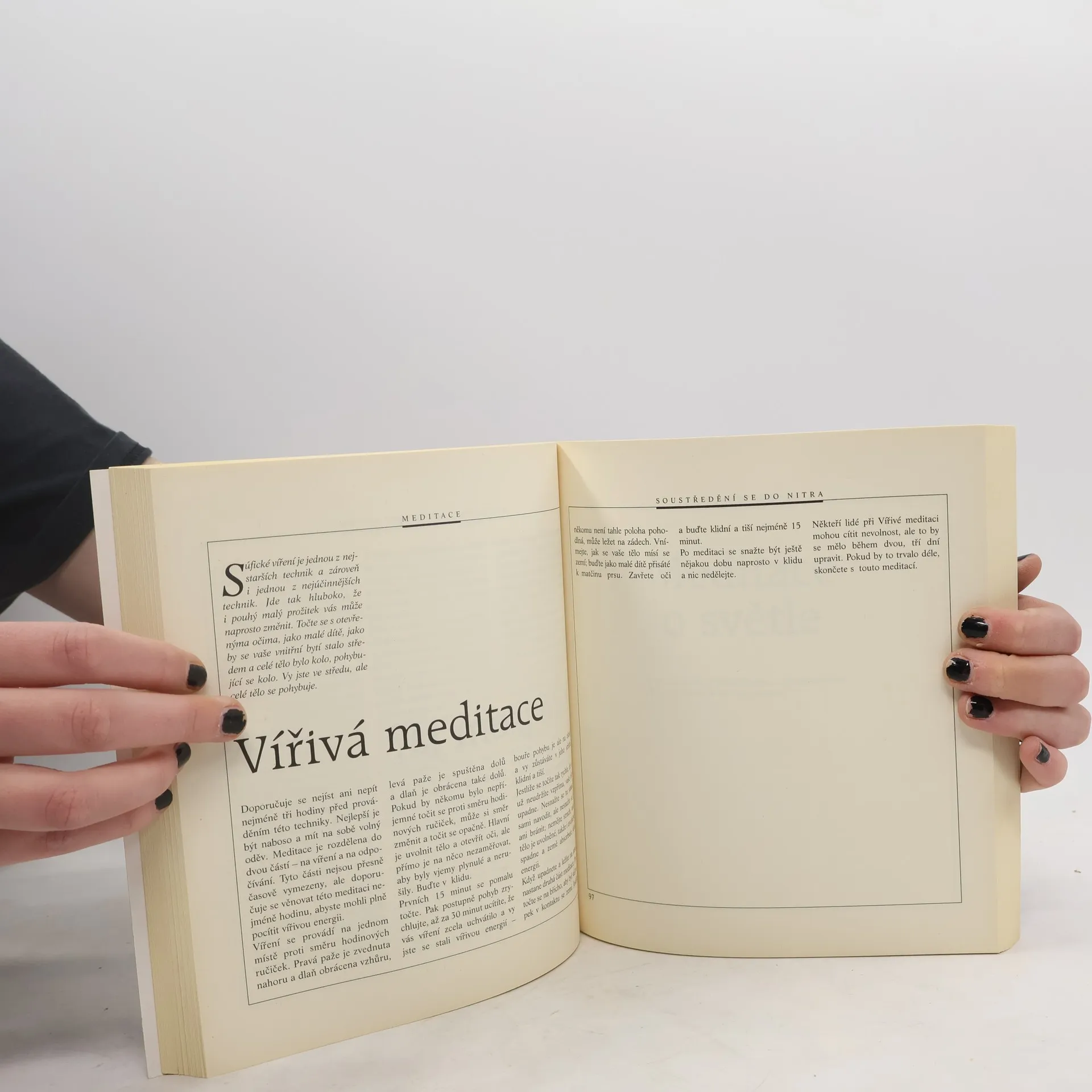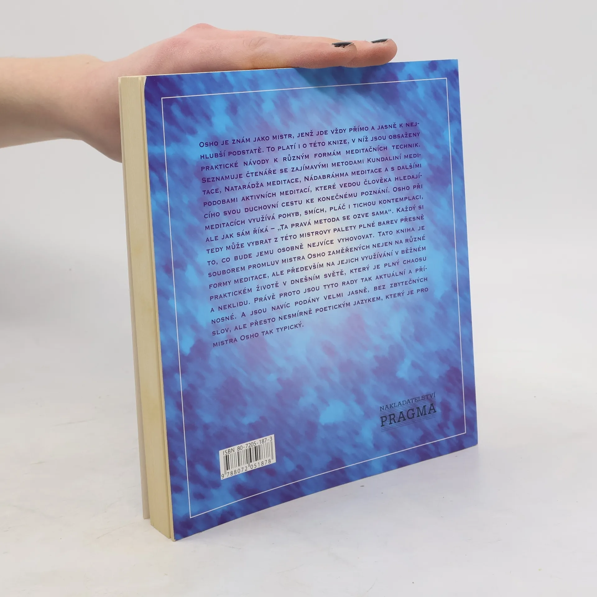 Osho je znám jako mistr, jenž jde vždy přímo a jasně k nejhlubší podstatě. To platí i o této knize, v níž jsou obsaženy praktické návody k různým formám meditačních technik. Seznamuje čtenáře se zajímavými metodami Kundaliní meditace, Natarádža meditace, Nádabráhma meditace a s dalšími podobami aktivní meditace.