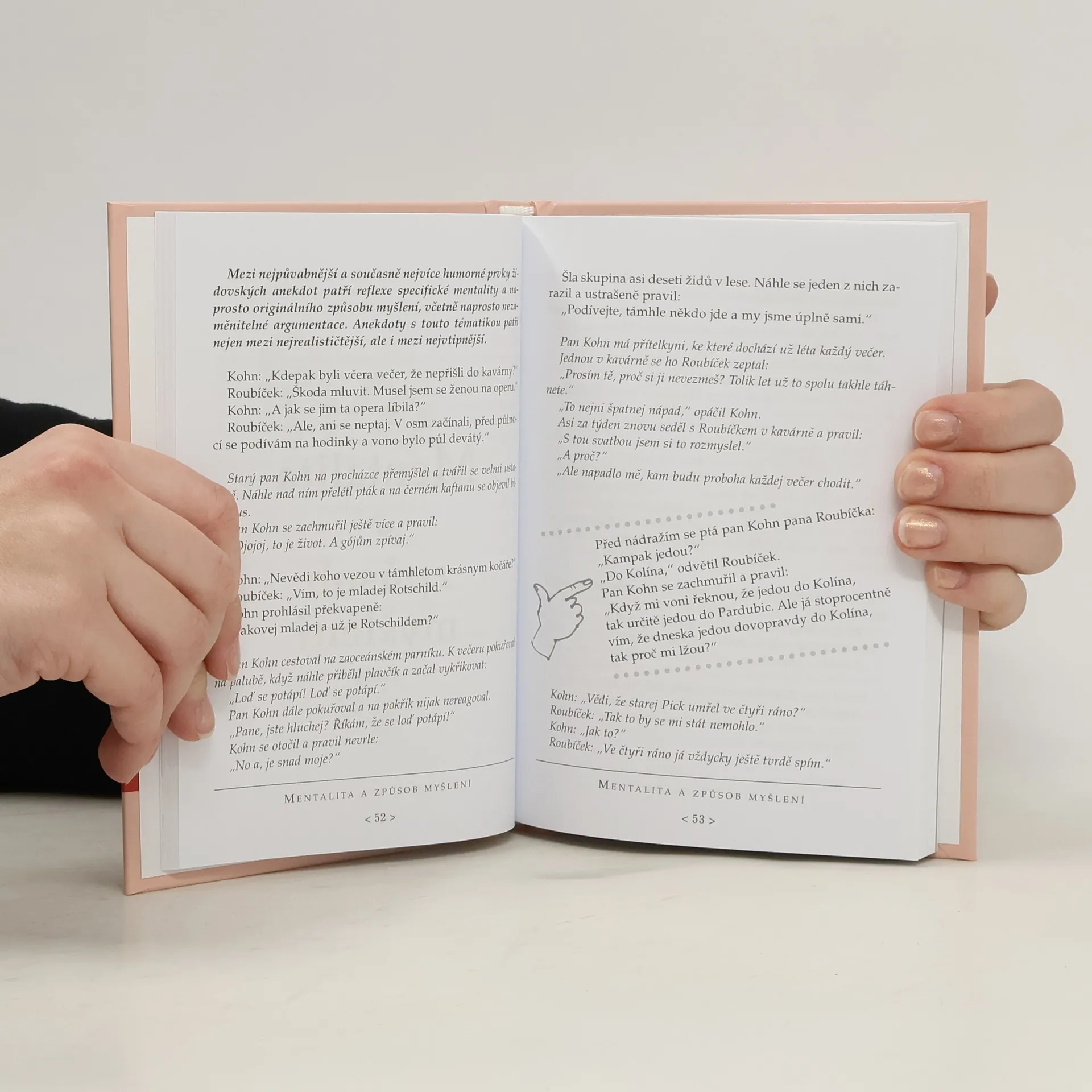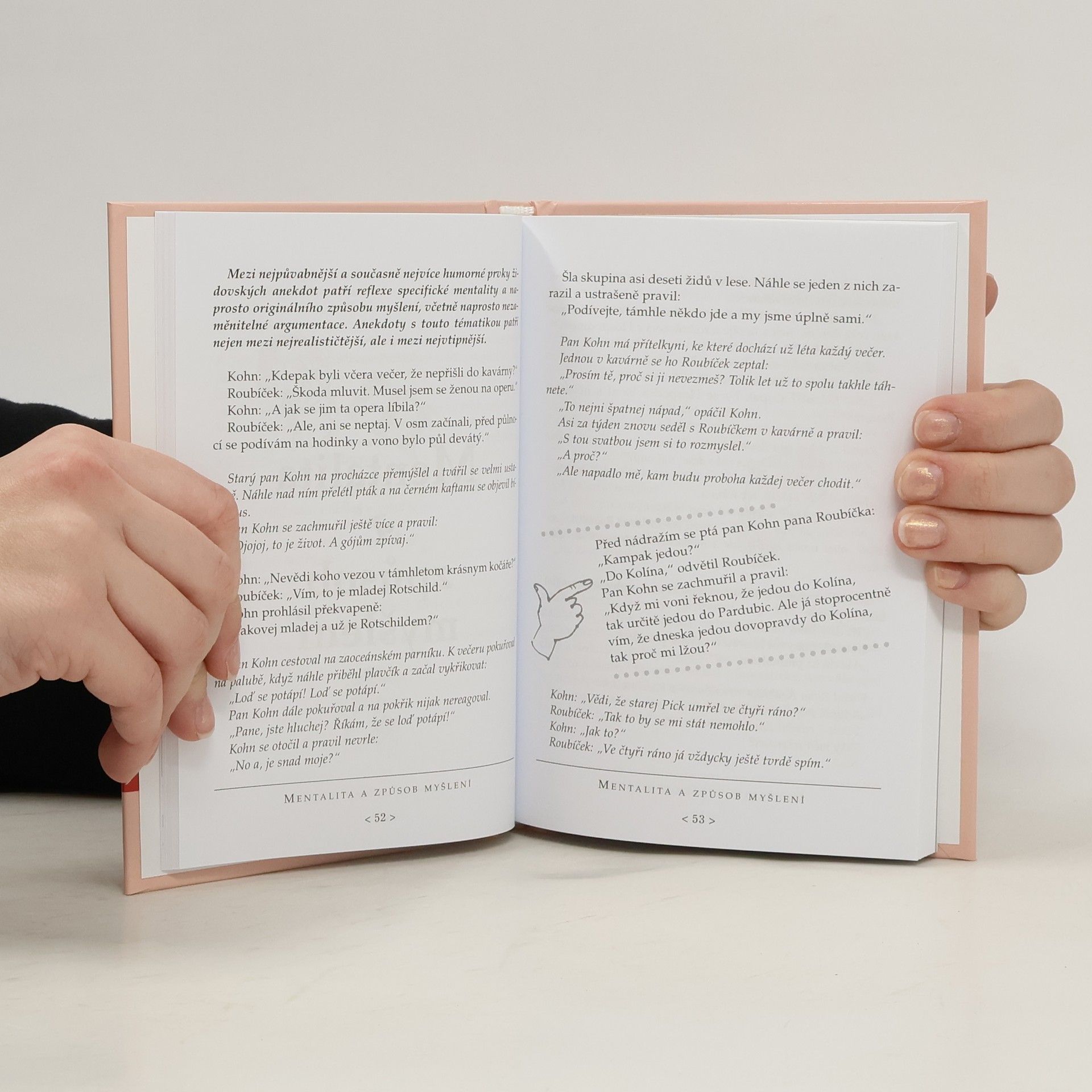 Sbírka židovských anekdot v podání českého spisovatele a publicisty přibližuje svébytnou oblast kvalitního a vtipného humoru. Drobné epizody a hříčky rozdělil Václav Budinský do deseti kapitol, v nichž se pokouší ponejvíce na postavách pánů Kohna a Roubíčka demonstrovat ukázky z moudrého a laskavého židovského humoru, který zároveň dokáže lehce naznačit lidské slabosti a nedostatky. V jednotlivých oddílech se dále představují anekdoty, v nichž vystupují například malé i velké děti společně se svými rodiči, manželské páry, rabíni i obchodníci. Do dvou závěrečných příloh pak autor zařadil některé historky z internetu i tři ukázky z dnes již klasického povídkového díla Vojtěcha Rakouse "Modche a Rézi".