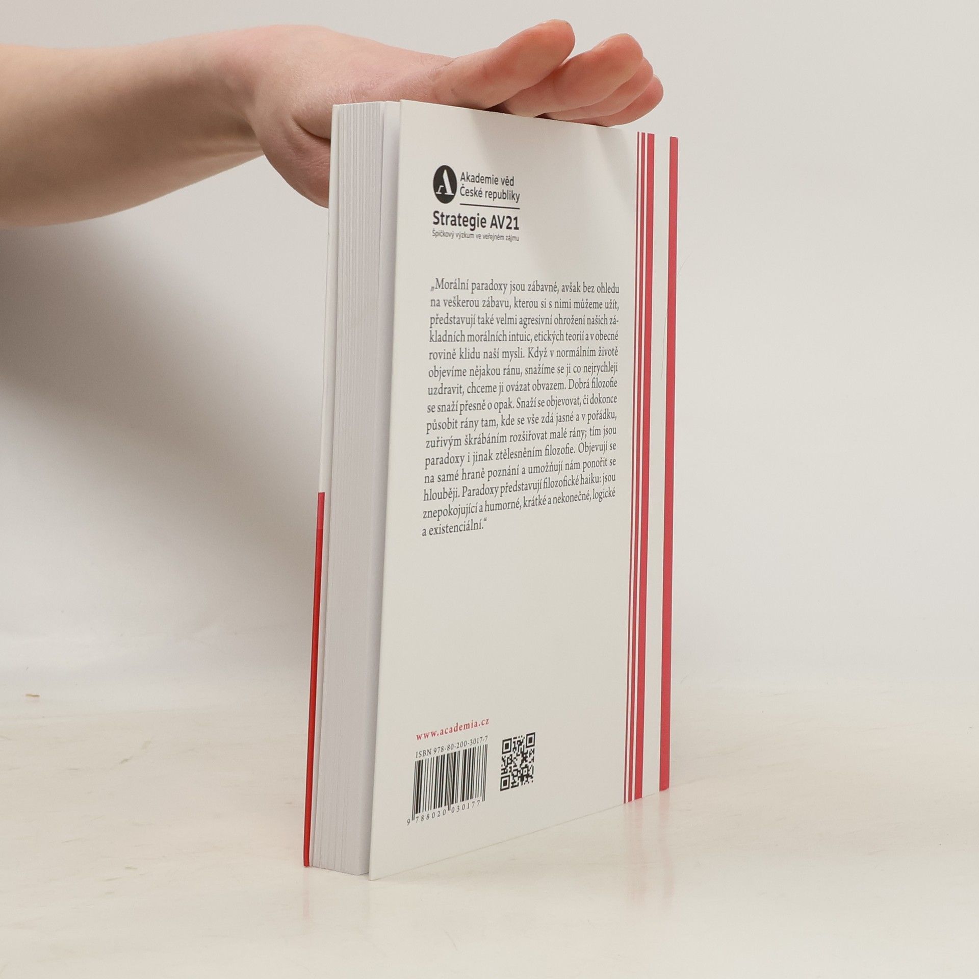 Paradoxy byly podrobně prozkoumány v mnoha oblastech lidského poznání, zatím se však nikdo systematicky nevěnoval roli paradoxů v naší reflexi morálky. Tento nedostatek se pokouší napravit izraelský filozof Saul Smilansky ve své vysoce originální knize Deset morálních paradoxů. Autor se snaží ukázat, že paradoxy nejsou pouze okrajovým fenoménem, nevyskytují se jen někde na hranicích našeho myšlení: setkáváme se s nimi v okamžiku, kdy se pokoušíme hlouběji promýšlet důležitá morální témata, jako je například smysl a účel trestání nebo „šťastné neštěstí“ či prospěšný odchod ze zaměstnání. Všechny morální paradoxy, které Smilansky rozebírá, jsou velmi překvapivé a znepokojující a ukazují, že realita může být mnohem složitější a dobrodružnější než naše zažité představy a teorie.