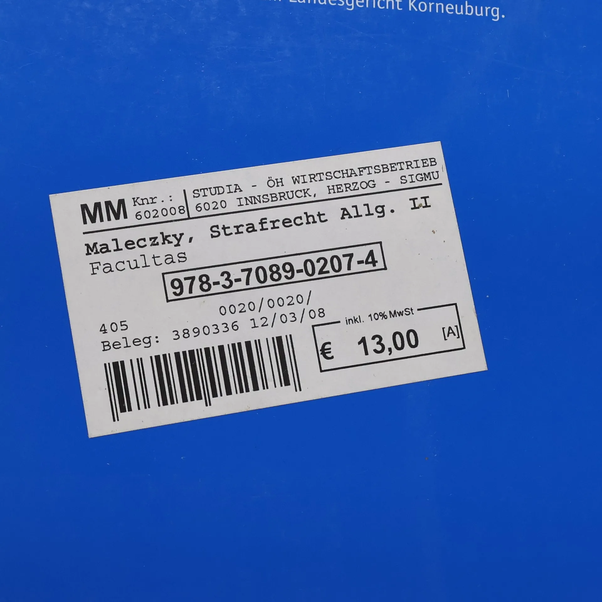 Strafrecht, Allgemeiner Teil II, Oskar Maleczky