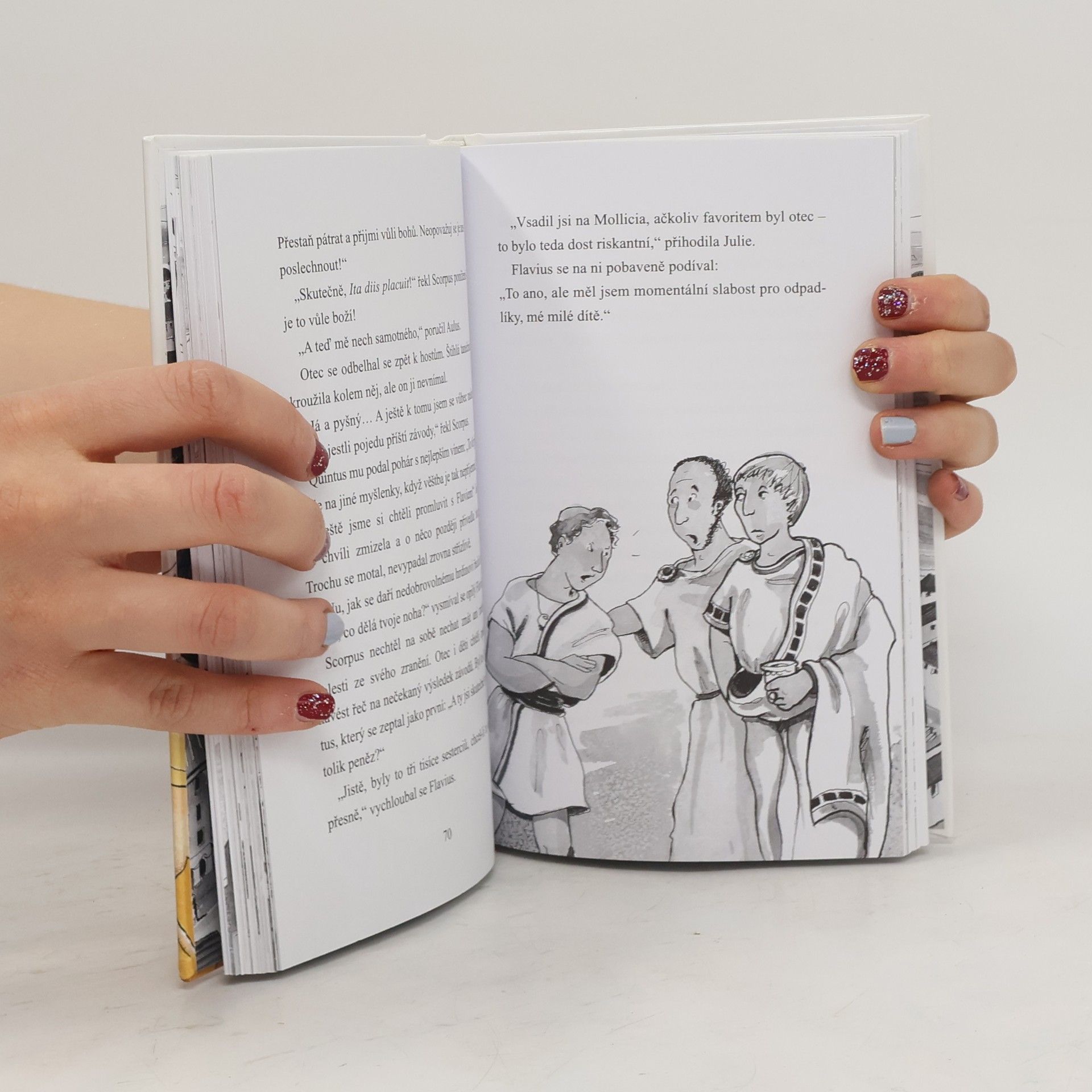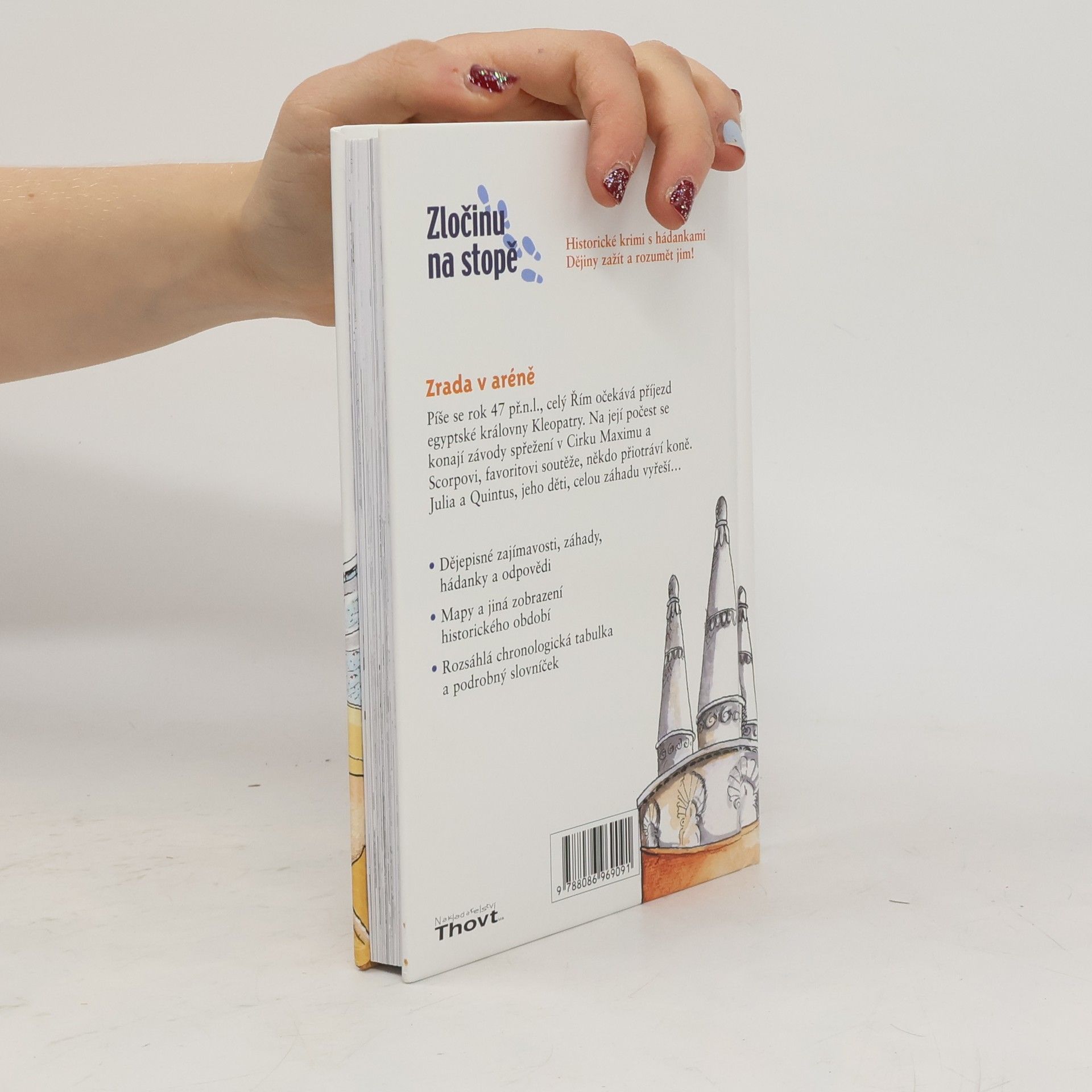 Julie se svým bratrem Quintem jsou na stopě spiknutí, jehož obětí je jejich otec – uznávaný a slavný závodník.Ten však jednoho dne nečekaně utrpí potupnou porážku, a to v nečestném boji... Kdo a proč přiotrávil jeho koně? Děti se pouští do vyčerpávajícího pátrání, aby celé věci přišly na kloub. Děj vrcholí v den konání závodu pořádaného Caesarem na počest Kleopatry, která poctila Řím svou návštěvou. Zraněný otec se ho nemůže zúčastnit, ale modré barvy jeho stáje přece jen budou mít v tomto slavném závodě zástupce. Kdo to bude a jak se mu v aréně bude dařit?