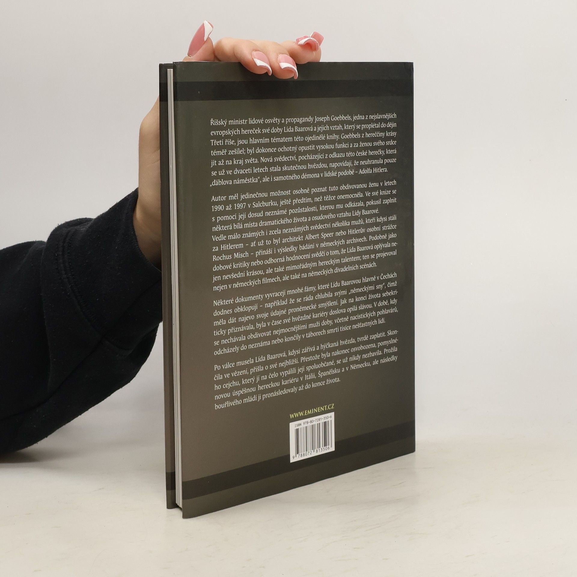 Reichsminister für Volksaufklärung und Propaganda Joseph Goebbels a slavná herečka Lída Baarová tvoří hlavní téma této knihy z volné řady Stíny Třetí říše. Goebbels byl tak fascinován její krásou, že by byl ochoten opustit svou mocnou pozici a následovat ji kamkoli. Nová svědectví z odkazu Baarové, která se stala hvězdou už ve dvaceti, naznačují, že okouzlovala nejen Goebbelse, ale i Adolfa Hitlera. Autor měl jedinečnou příležitost poznat Baarovou v letech 1990 až 1997 a s pomocí dosud neznámé pozůstalosti se snaží osvětlit některé aspekty její dramatické existence a vztahu s Goebbelsem. Kniha zahrnuje svědectví mužů blízkých Hitlerovi, jako byl architekt Albert Speer, a výsledky výzkumu v německých archivech. Kritiky a odborná hodnocení potvrzují, že Baarová měla nejen výjimečnou krásu, ale i herecký talent, který se projevoval v německých filmech a divadlech. Některé dokumenty vyvracejí fámy o jejím proněmeckém smýšlení. Po válce čelila těžkým následkům, skončila ve vězení a ztratila blízké. I když se jí podařilo obnovit kariéru v Itálii, Španělsku a Německu, psychické následky ji provázely po celý život. Kniha je doplněna třemi unikátními barevnými přílohami.