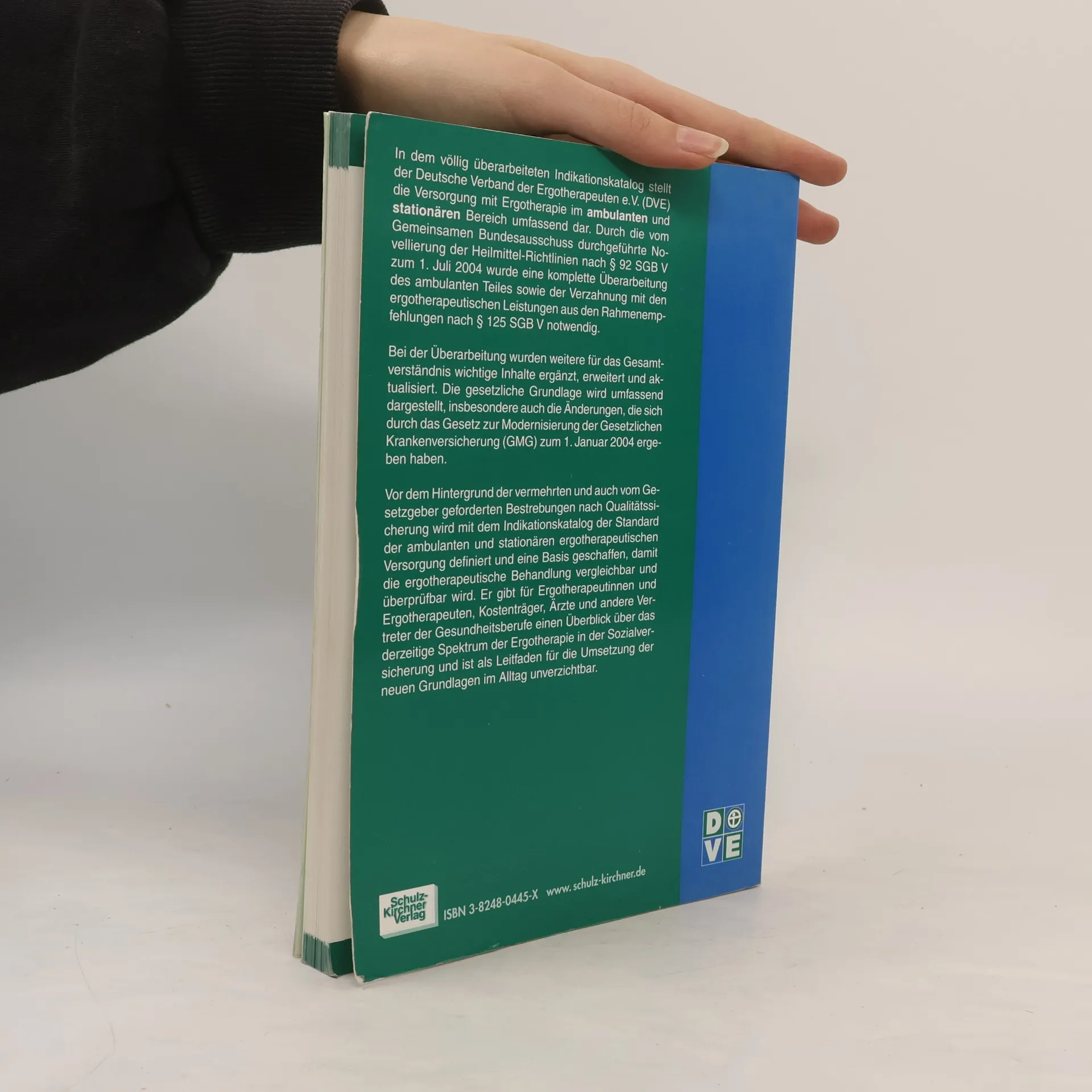 Mit diesem überarbeiteten Indikationskatalog hat der Deutsche Verband der Ergotherapeuten e. V. (DVE) die Versorgung mit Ergotherapie im ambulanten und stationären Bereich umfassend dargestellt. Die Novellierung der Heilmittel-Richtlinien nach § 92 SGB V zum 1. Juli 2004 erforderte eine komplette Überarbeitung des ambulanten Teils sowie der Verzahnung mit den ergotherapeutischen Leistungen aus den Rahmenempfehlungen nach § 125 SGB V. Bei dieser Überarbeitung wurden wichtige Inhalte ergänzt, erweitert und aktualisiert. Die gesetzlichen Grundlagen, insbesondere die Änderungen durch das Gesetz zur Modernisierung der Gesetzlichen Krankenversicherung (GMG) zum 1. Januar 2004, werden umfassend dargestellt. Angesichts der vom Gesetzgeber geforderten Qualitätssicherung definiert der Indikationskatalog den Standard der ergotherapeutischen Versorgung und schafft eine Basis für vergleichbare und überprüfbare Behandlungen. Er bietet Ergotherapeutinnen und Ergotherapeuten, Kostenträgern, Ärzten und anderen Gesundheitsberufen einen Überblick über das aktuelle Spektrum der Ergotherapie in der Sozialversicherung und dient als unverzichtbarer Leitfaden für die Umsetzung der neuen Grundlagen im Alltag.