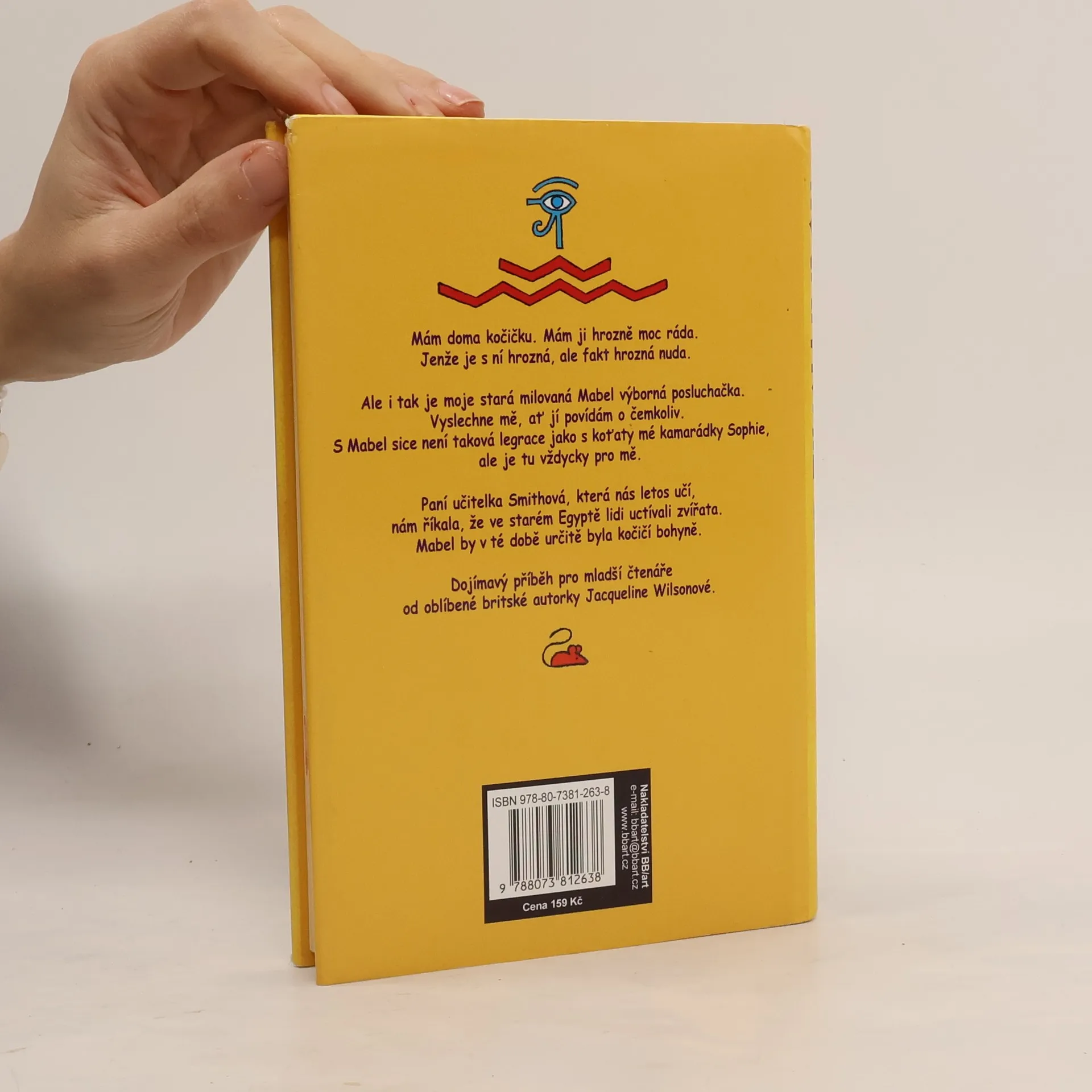 Mám kočičku. Miluju ji k zbláznění. Je s ní ale příšerná nuda. I tak je moje milovaná Mabel výbornou posluchačkou. Nezáleží jí na tom, co jí povídám. Není sice tak zábavná a legrační jako čtyři koťátka mojí kamarádky Sophie, ale je tu vždycky pro mě. Paní učitelka Smithová nám říkala, že ve starém Egyptě lidi kočky uctívali. Mabel by v té době určitě mohla být bohyní.