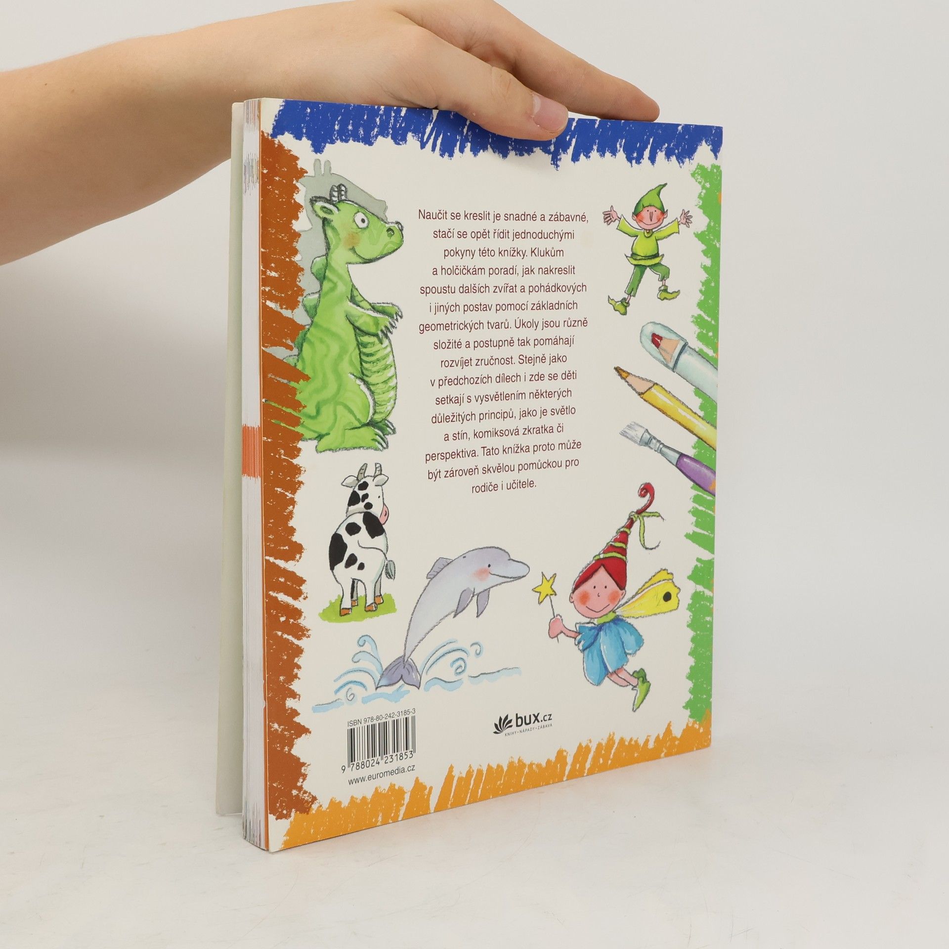 Naučit se kreslit je snadné a zábavné, stačí se opět řídit jednoduchými pokyny této knížky. Klukům a holčičikám poradí, jak nakrestlit spoustu dalších zvířat a pohádkových i jiných postav pomocí základních geometrických tvarů. Úkoly jsou různě složité a postupně tak pomáhají rozvíjet zručnost. Stejně jako v předchozích dílech i zde se děti setkají s vysvětlením některých důležitých principů, jako je světlo a stín, komksová zkratka či perspektiva. Tato knížka proto může být zároveň skvělou pomůckou pro rodiče i učitele.