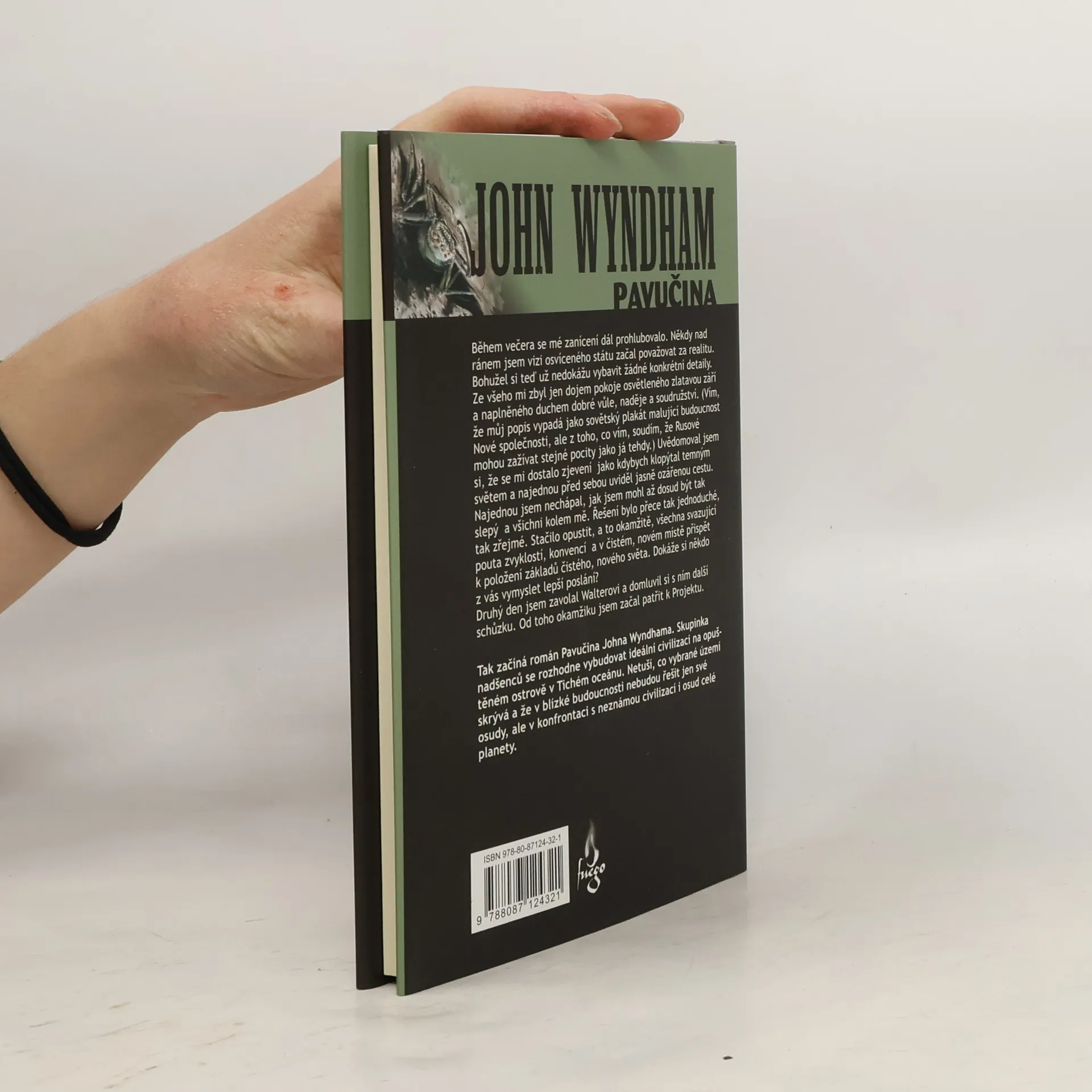 Osamělý ostrůvek ztracený uprostřed vodní pustiny Tichého oceánu se stává dějištěm pokusu o vybudování ideálního města budoucnosti. Nikdo z osadníků však netuší, že ostrov skrývá osudné tajemství. Jestliže se v románu Den trifidů postrachem lidstva staly podivné kráčející rostliny, tentokrát se kolonisté ocitají tváří v tvář miliardám jedovatých pavouků. Co způsobilo vznik tohoto mutantního plemene? Radioaktivní spad nebo snad kletba dávno mrtvého kouzelníka…? John Wyndham, slavný mistr katastrofických románů, nezůstává čtenáři ani tentokrát nic dlužen. Pavučina však není jen pouhý horor, je to také barvitý příběh o střetu dvou civilizací, dvou odlišných světů a filozofií.