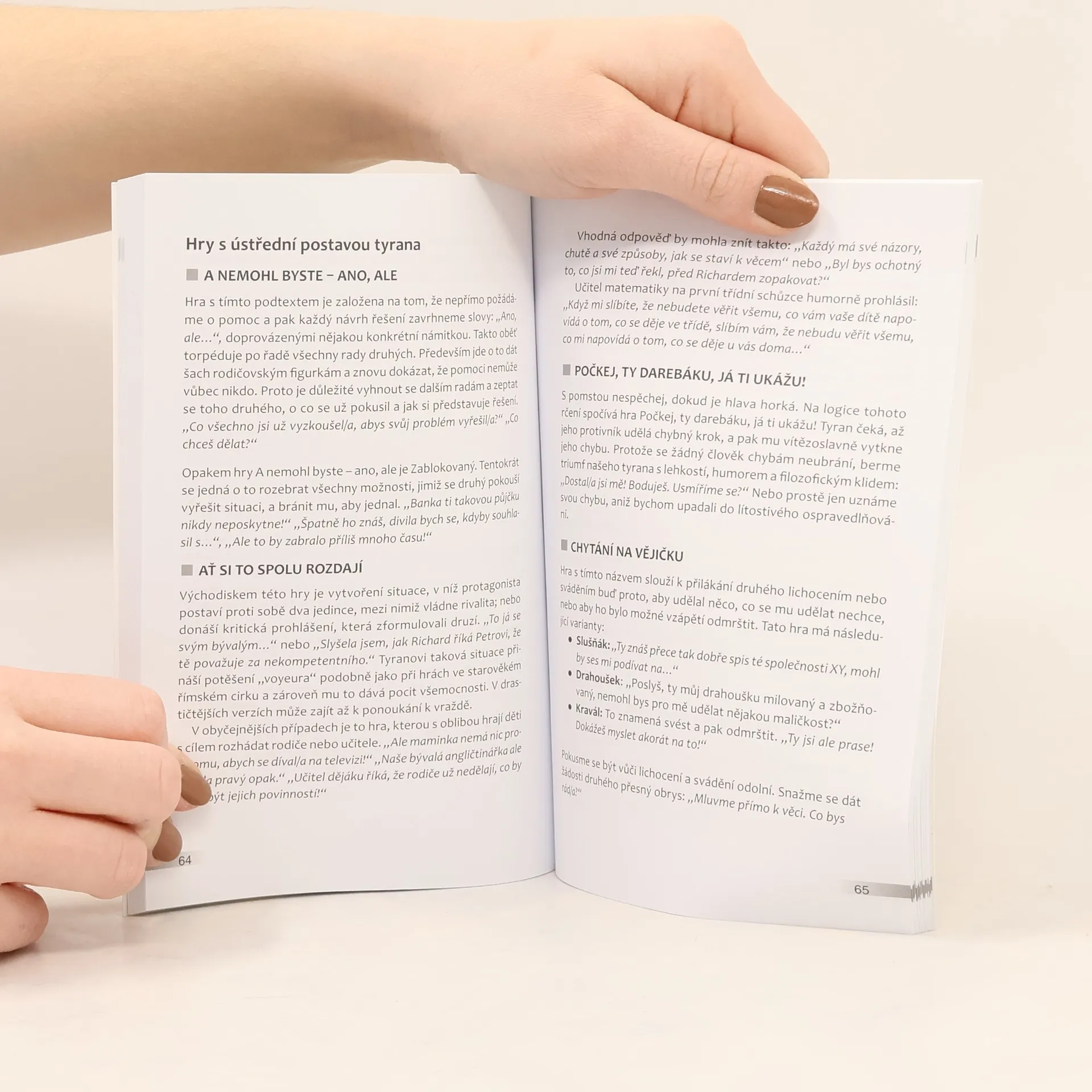 Prožíváte-li opakovaně v komunikaci s některými lidmi něco negativního nebo frustrujícího, říkáte si, že už se nenecháte vtáhnout do hry. Termín hry opravdu odpovídá negativním situacím, které se standardně opakují. Autorka, která je psychoterapeutka, v knize vysvětluje základní pojmy psychologických her Erika Berna, amerického psychiatra, zakladatele transakční analýzy. Na základě svých poznatků dává rady, jak řešit opakující se problémy ve vztazích – v rodině i s okolím. Kniha zaujme čtenáře, kteří chtějí řešit své vztahové a komunikační problémy každodenního života. Ch. Petitcollin, psycholožka zaměřená na poradenství a psychoterapeutka, pořádá semináře o vztazích a komunikaci.