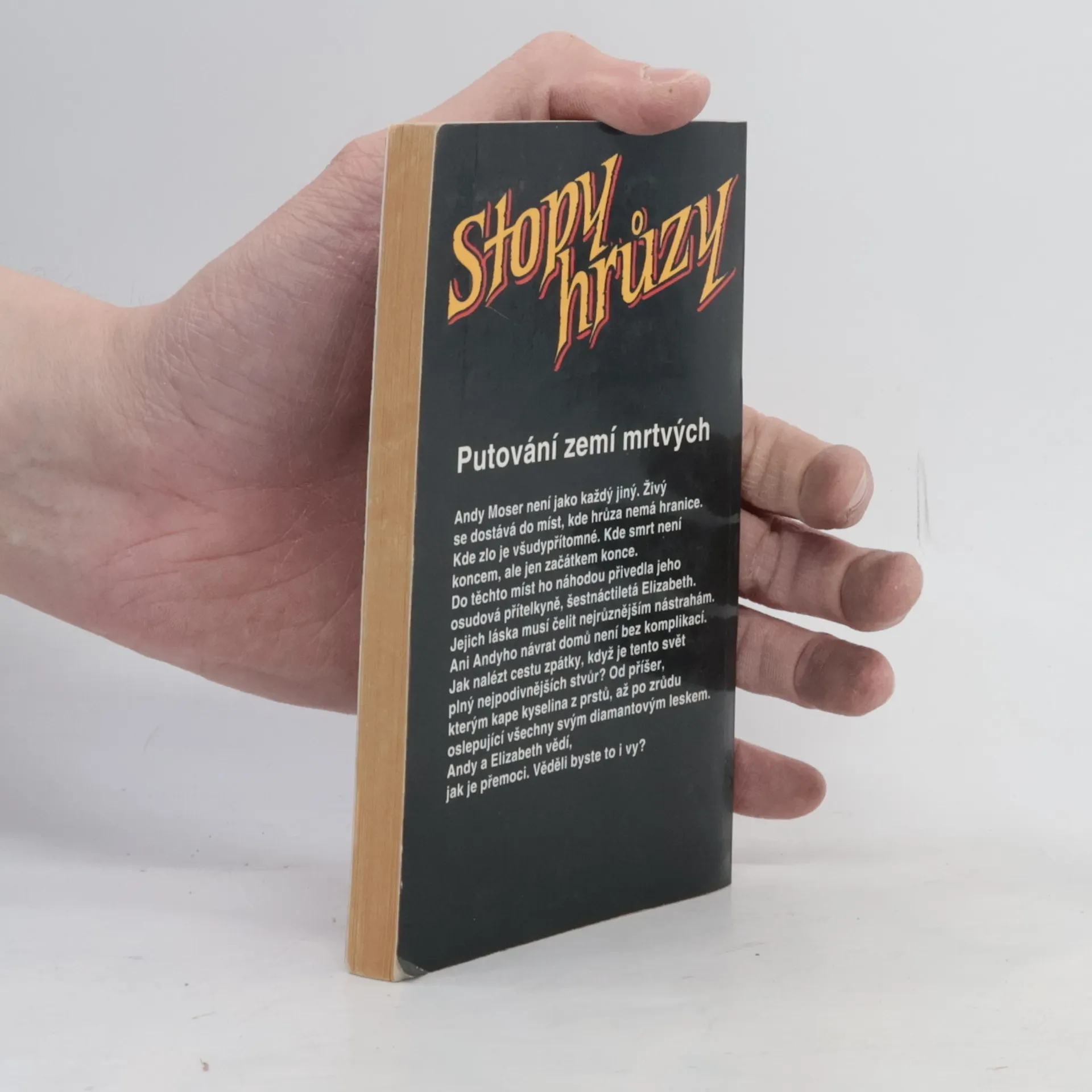 Stopy hrůzy 7, ze seriálu Země duchů. Putování zemí mrtvých Andy Moser není jako každý jiný. Živý se dostává do míst, kde hrůza nemá hranice. Kde zlo je všudypřítomné. Kde smrt není koncem, ale jen začátkem konce. Do těchto míst ho náhodou přivedla jeho osudová přítelkyně, šestnáctiletá Elizabeth. Jejich láska musí čelit nejrůznějším nástrahám. Ani Andyho návrat domů není bez komplikací. Jak nalézt cestu zpátky, když je tento svět plný nejpodivnějších nestvůr? Od příšer, kterým kape kyselina z prstů, až po zrůdu oslepující všechny svým diamantovým leskem. Andy a Elizabeth vědí, jak je přemoci. Věděli byste to i vy?... celý text