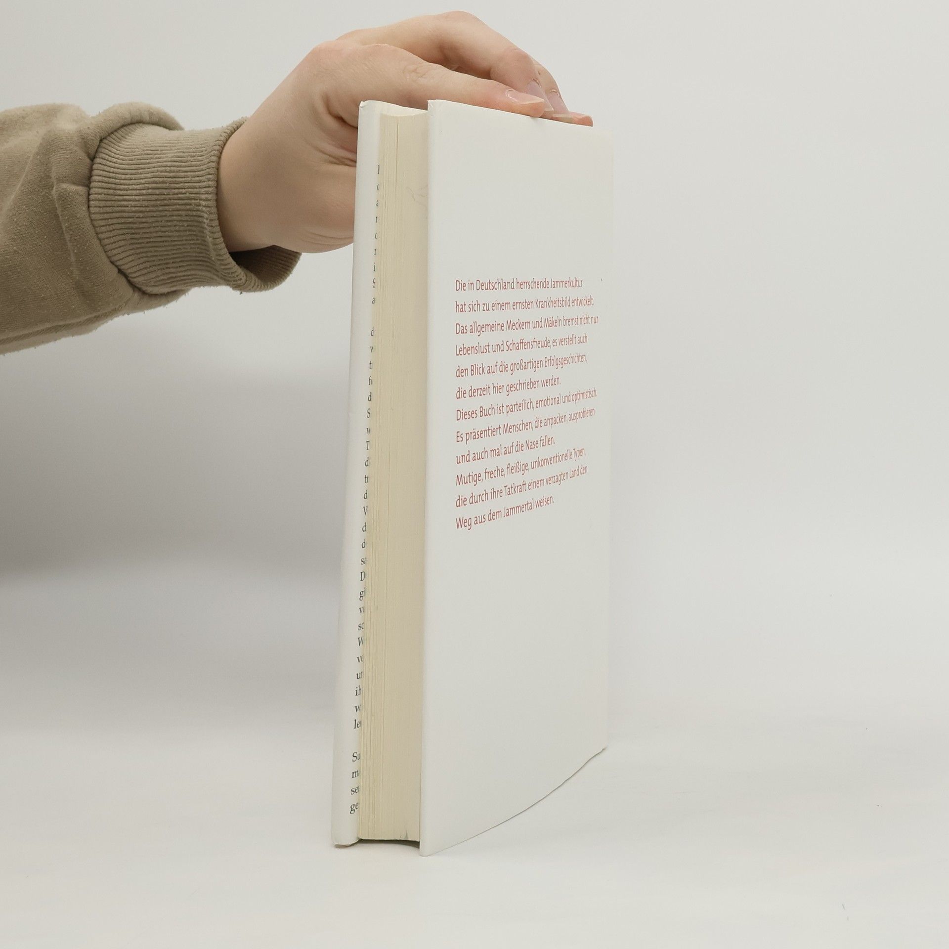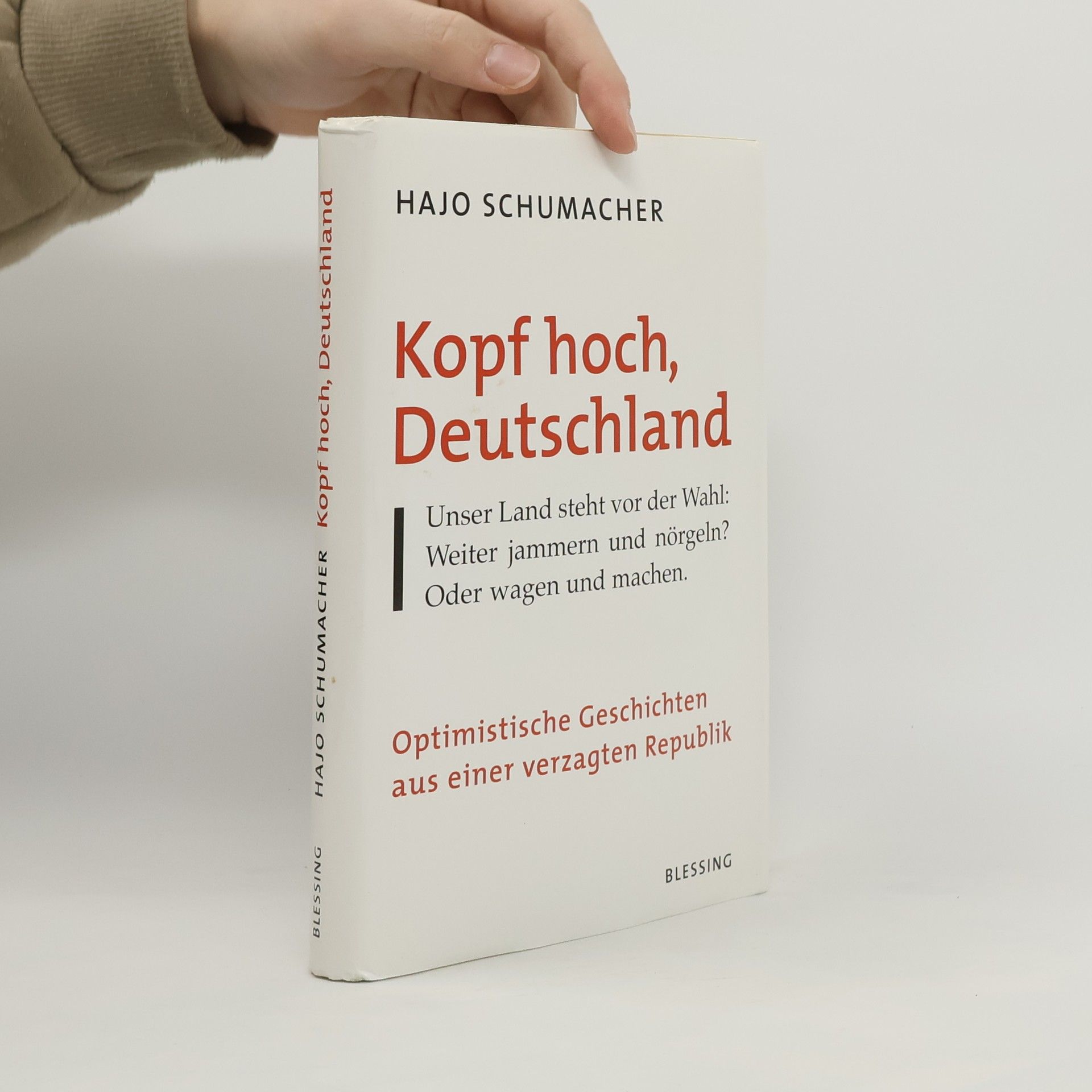 Meckern und nörgeln. oder machen Hajo Schumacher hat sich auf die Suche nach solchen Menschen gemacht, nach den Pionieren eines besseren Deutschland. Und er hat viele gefunden. „Schumacher beschreibt dieses Deutschland genau, manchmal mit ironischem Witz, aber dann erzählt er auch Geschichten aus einem anderen Deutschland, optimistische Geschichten von Menschen, die zupacken, etwas wagen, ausprobieren, tüfteln, manchmal auf die Nase fallen, aber wieder aufstehen. Das ist flott geschrieben und spannend erzählt, begeistert und begeisternd.“ Vorwärts "Schumacher hat ein unverkrampftes Buch geschrieben, das vielen Lesern ein erleichtertes 'Endlich!' entlocken wird. Endlich schreibt mal einer wider die Jammerei, verweist auf Positives und optimistische Kennzahlen. Besser macht das die Situation nicht. Aber es gibt Mut. Und eindlich einmal Hoffnung.„ Sächsische Zeitung “Storys über tatkräftige Individuen, die dem Leser Mut machen sollen, seines Glückes Schmied zu werden. Diese Geschichten sind lesenswert, zeigen sie doch: Es geht noch was in Deutschland."