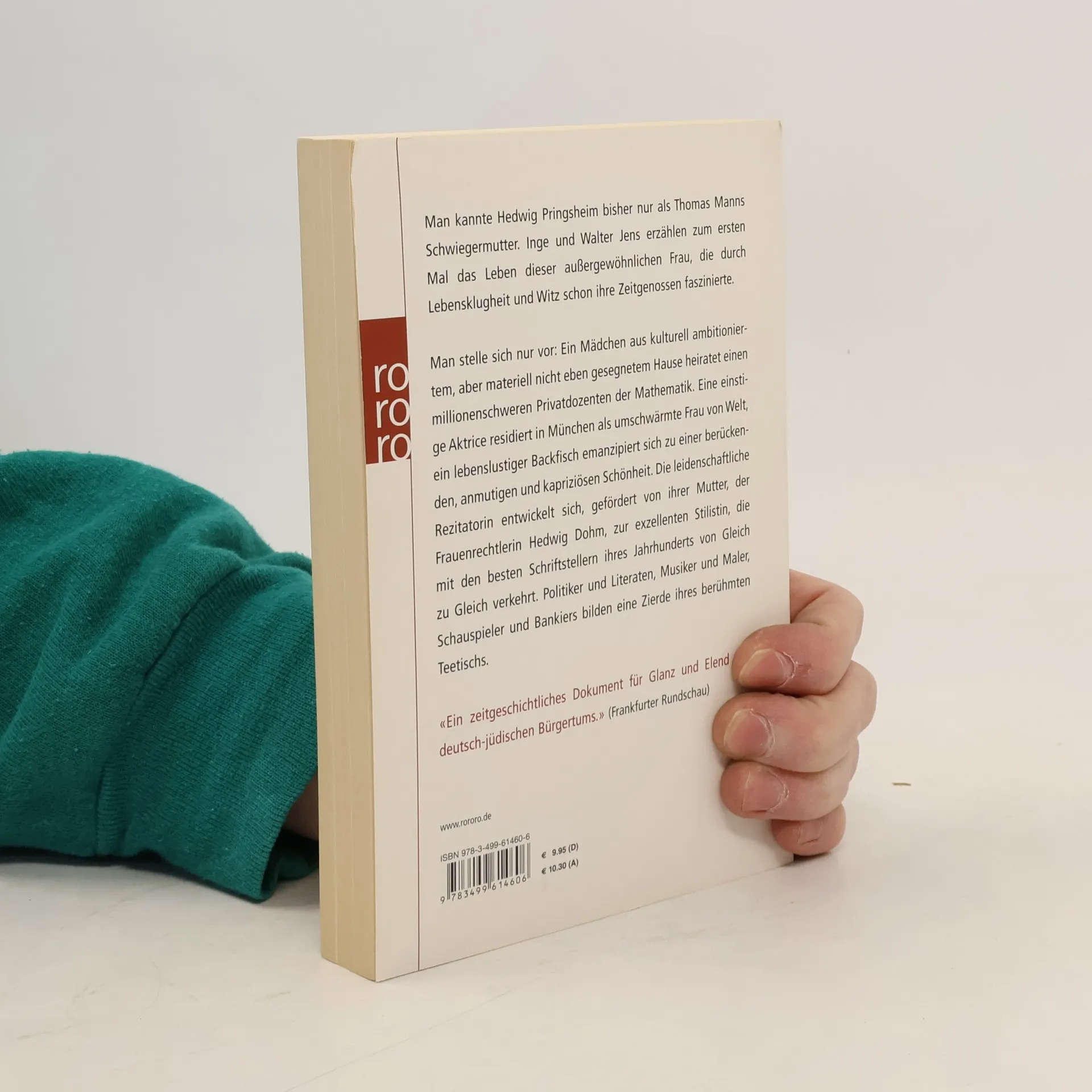 Man kannte Hedwig Pringsheim bisher nur als Thomas Manns Schwiegermutter. Inge und Walter Jens erzählen zum ersten Mal das Leben dieser außergewöhnlichen Frau, die durch Lebensklugheit und Witz schon ihre Zeitgenossen faszinierte. Man stelle sich nur vor: Ein Mädchen aus kulturell ambitioniertem, aber materiell nicht eben gesegnetem Hause heiratet einen millionenschweren Privatdozenten der Mathematik. Eine einstige Aktrice residiert in München als umschwärmte Frau von Welt, ein lebenslustiger Backfisch emanzipiert sich zu einer berückenden, anmutigen und kapriziösen Schönheit. Die leidenschaftliche Rezitatorin entwickelt sich, gefördert von ihrer Mutter, der Frauenrechtlerin Hedwig Dohm, zur exzellenten Stilistin, die mit den besten Schriftstellern ihres Jahrhunderts von Gleich zu Gleich verkehrt. Politiker und Literaten, Musiker und Maler, Schauspieler und Bankiers bilden eine Zierde ihres berühmten Teetischs. «Ein zeitgeschichtliches Dokument für Glanz und Elend des deutsch-jüdischen Bürgertums.» Frankfurter Rundschau