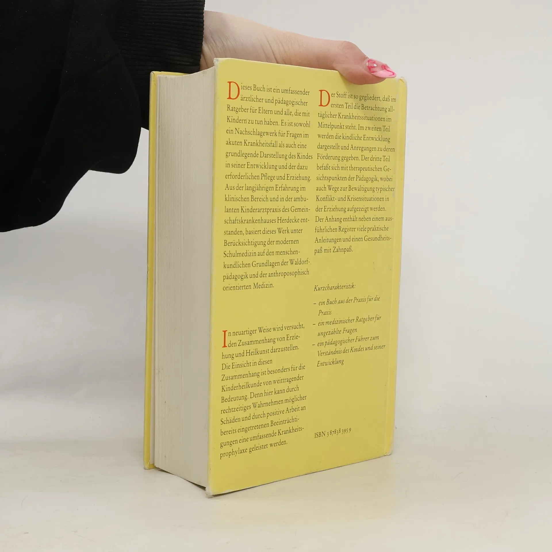 Dieses Buch ist ein umfassender ärztlicher und pädagogischer Ratgeber für Eltern und alle, die mit Kindern zu tun haben. Es ist sowohl ein Nachschlagewerk für Fragen im akuten Krankheitsfall als auch eine grundlegende Darstellung des Kindes in seiner Entwicklung und der dazu erforderlichen Pflege und Erziehung. Aus der langjährigen Erfahrung im klinischen Bereich und in der ambulanten Kinderarztpraxis des Gemeinschaftskrankenhaus Herdecke entstanden, basiert dieses Werk unter Berücksichtigung der modernen Schulmedizin auf den menschenkundlichen Grundlagen der Waldorfpädagogik und der anthroposophische orientierten Medizin. Aus dem Inhalt: Erkrankungen im Kindesalter und ihre Symptome / Grundbedingungen einer gesunden Entwicklung / Erziehung als Therapie / Anhang: Äußere Anwendungen in der häuslichen Krankenpflege. Mit beiliegendem Zahn- und Gesundheitspaß.