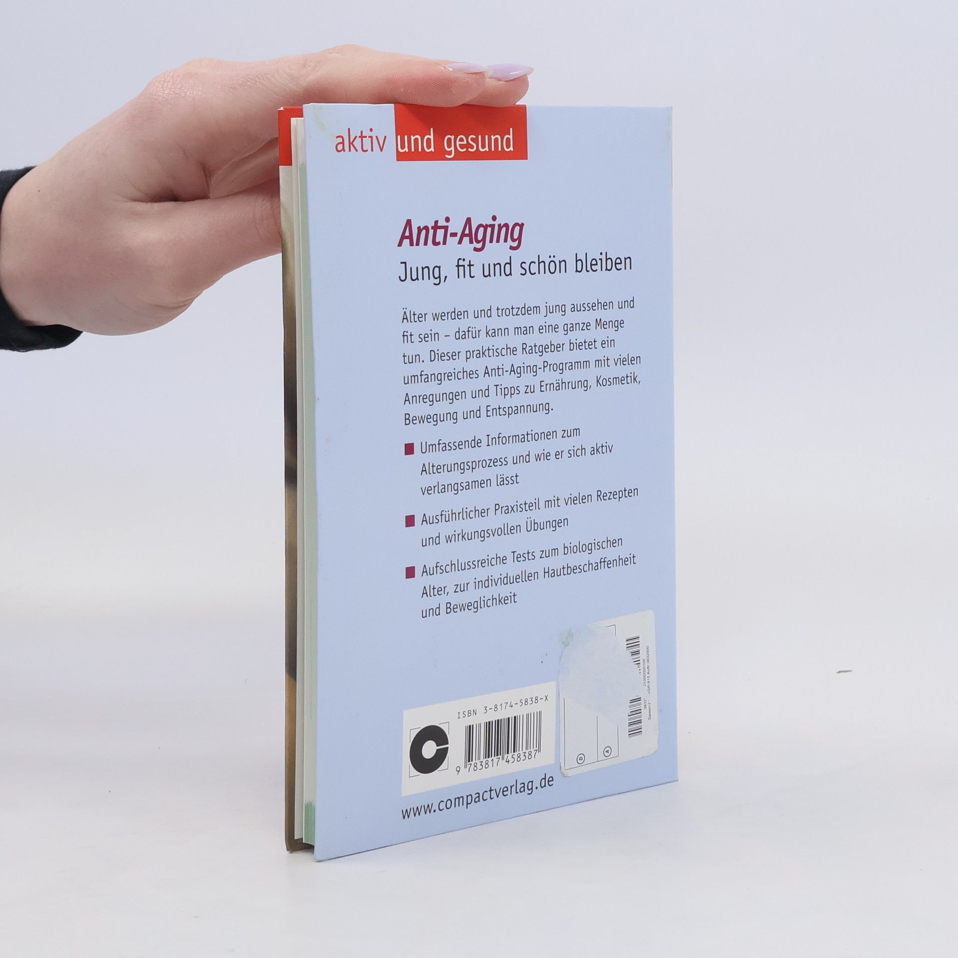 Dieser praktische Ratgeber enthält neben ausführlichen Hintergrundinformationen zu den Vorgängen des Alterungsprozesses eine Vielzahl von Anregungen, Tipps, Rezepten und Ideen zu Körperpflege, Ernährung, Entspannung, und Bewegung. In einer informativen Einführung erfährt der Leser, warum wir überhaupt altern, was dabei im Körper geschieht und welche äußeren Einflüsse den Alterungsprozess beschleunigen. Der ausführliche Praxisteil bietet ein umfangreiches Anti-Aging-Programm: Kosmetik, straffende Gymnastik, Anti-Aging-Food, Entspannungsmethoden, UV-Schutz, alles zum gesunden Schlaf und vieles mehr. Konkrete Tipps gegen bereits sichtbare Zeichen der Zeit runden das Buch ab. Immer älter werden, dabei aber möglichst jung aussehen, ist ein sich immer deutlicher abzeichnender Trend. Dieses Buch enthält alles Wissenswerte um den Alterungsprozess zu steuern und auch in den späteren Jahren schön, aktiv und fit zu bleiben.