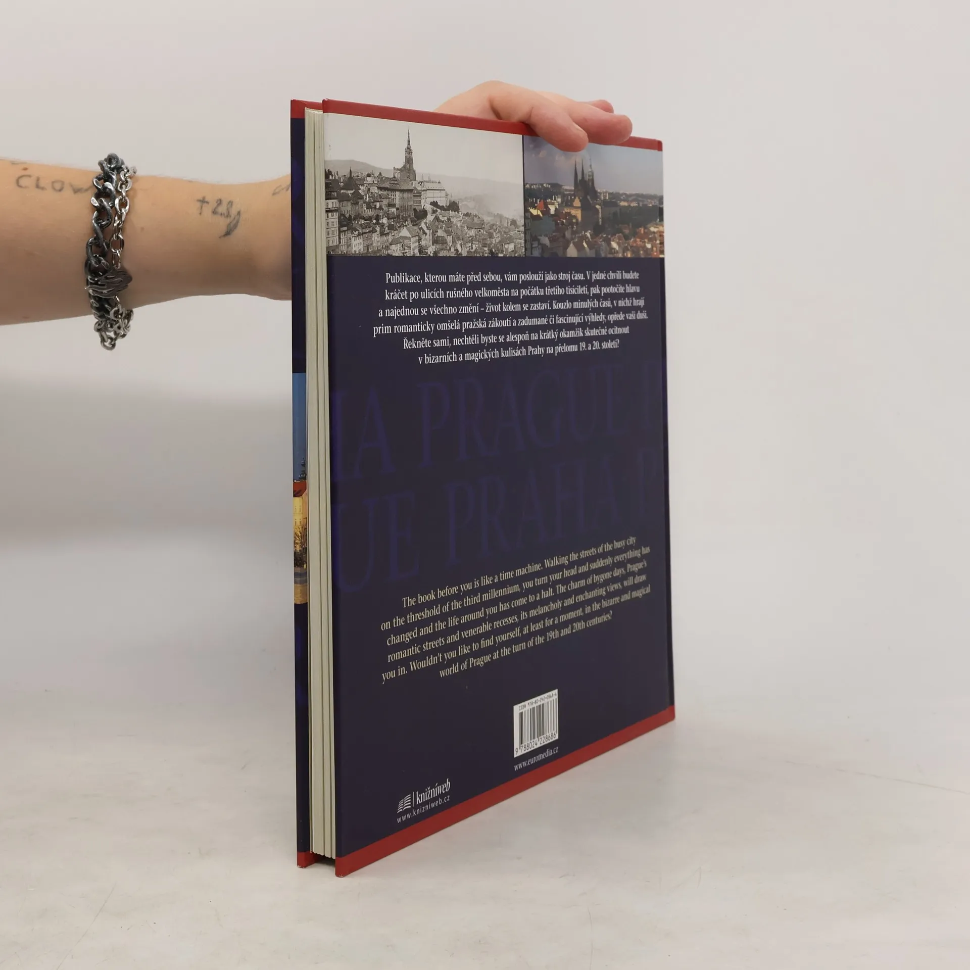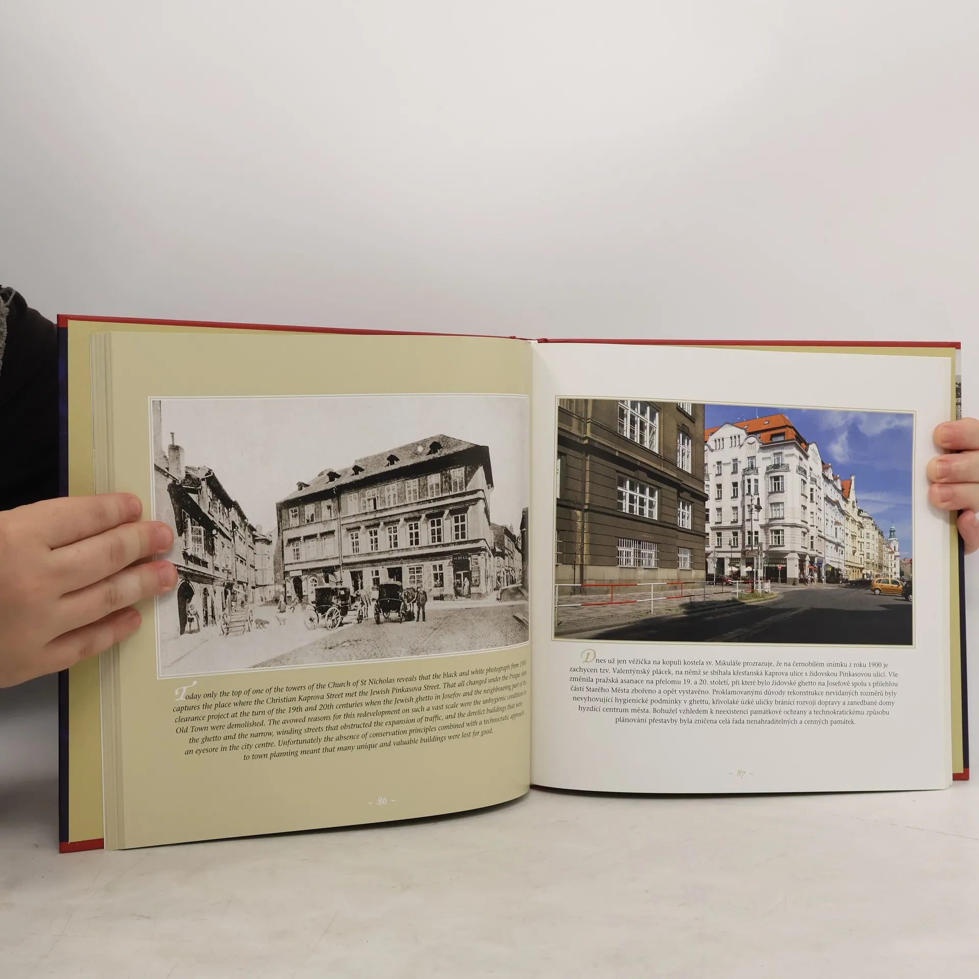 Publikace je unikátním souborem sedmdesáti srovnávacích fotografií historického jádra Prahy, doprovázených půvabnými, a přitom zasvěcenými texty v českém a anglickém jazyce. Ke snímkům 100 let starým pořídili fotografové současný protějšek v přesně stejném záběru. Dvě dvojice panoramatických záběrů jsou umístěny na rozkládacích stranách. Kniha je jedinečným svědectvím toho, že Praha před sto lety byla okouzlující a tajemná – stejně jako dnes.