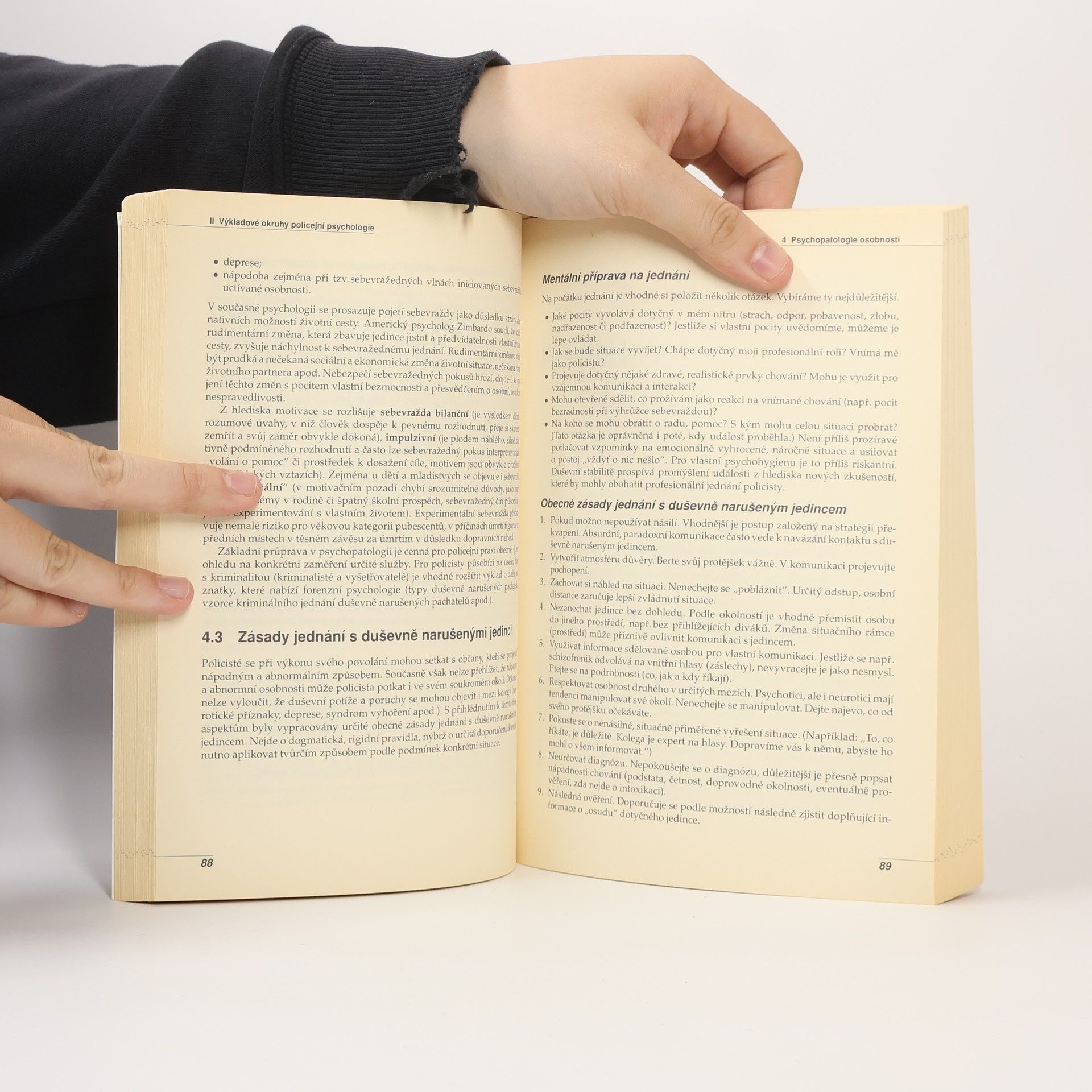Druhé rozšířené vydání publikace nabízí základní psychologické poznatky užitečné pro policisty a ostatní profese, ve kterých jde o prosazování práva. Jak orientačně odhadnout, co je druhý zač a zvolit vhodný tón komunikace? Jak snížit napětí v konfliktní situaci? Jak jednat s agresivním jedincem, duševně narušenou osobou či obětí trestného činu? Jak zvládat stres typický pro policisty v dopravní, pořádkové či kriminální službě? To jsou příklady problémů, na které knížka odpovídá. Tradiční témata policejní psychologie jsou obohacena o aktuality v oboru. Mezi ně patří domácí násilí na seniorech, odhad rizika viktimizace, problematika kverulantů a také novinky v psychologii výslechu.