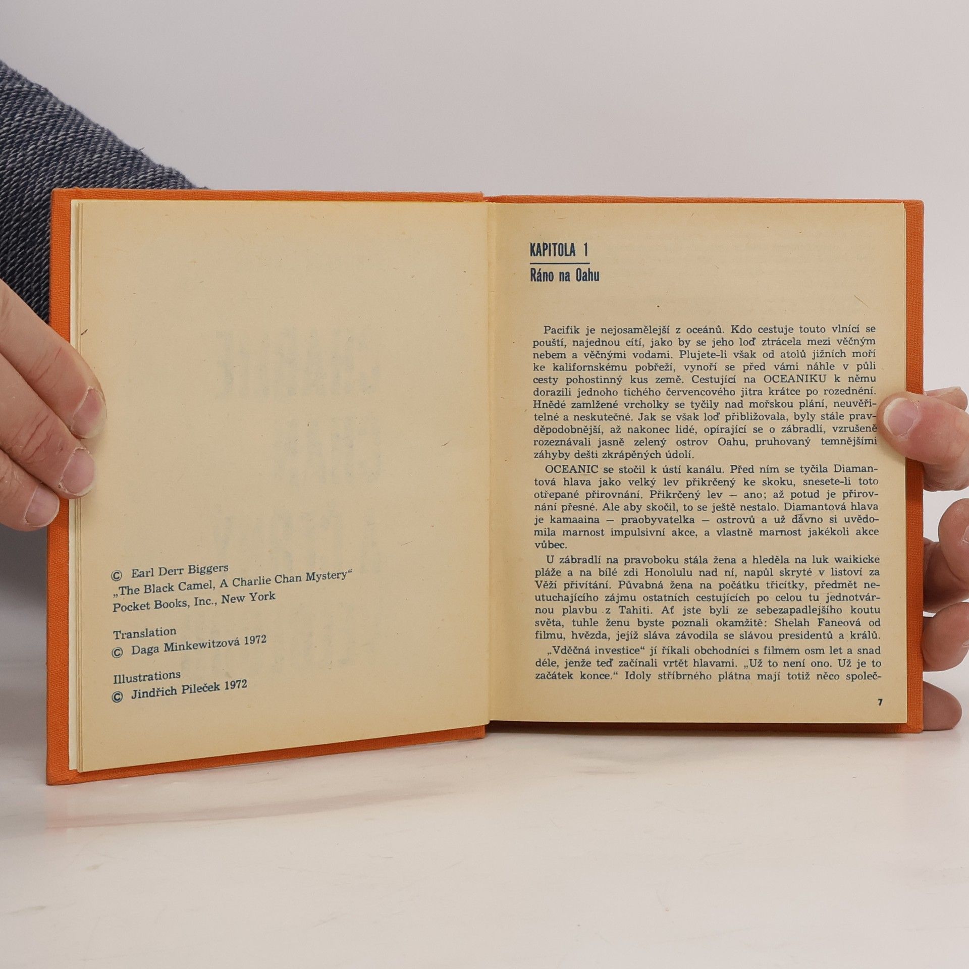 Okouzlující filmová hvězda, Shelah Faneová, vracející se lodí Oceánie z Tahiti do přímořského Honolulu, aby zde dokončila svůj nákladný velkofilm z jižních moří, dostává neodolatelnou nabídku pohádkově bohatého muže. Tato kráska je těsně před zahájením seznamovacího večírku s pozvanými osobnostmi zavražděna v zahradním altánku. Do hry vstupuje proslulý detektiv honolulske policie Charlie Chan a záhadný jasnovidec Tarneverr. Úžasně napínavý příběh, mistrovsky vyprávěný, se širokým záběrem a koloritem divukrásné tichomořské přírody a města Honolulu, plného erotického vábení a intrik je zárukou vzrušujícího čtenářského zážitku.