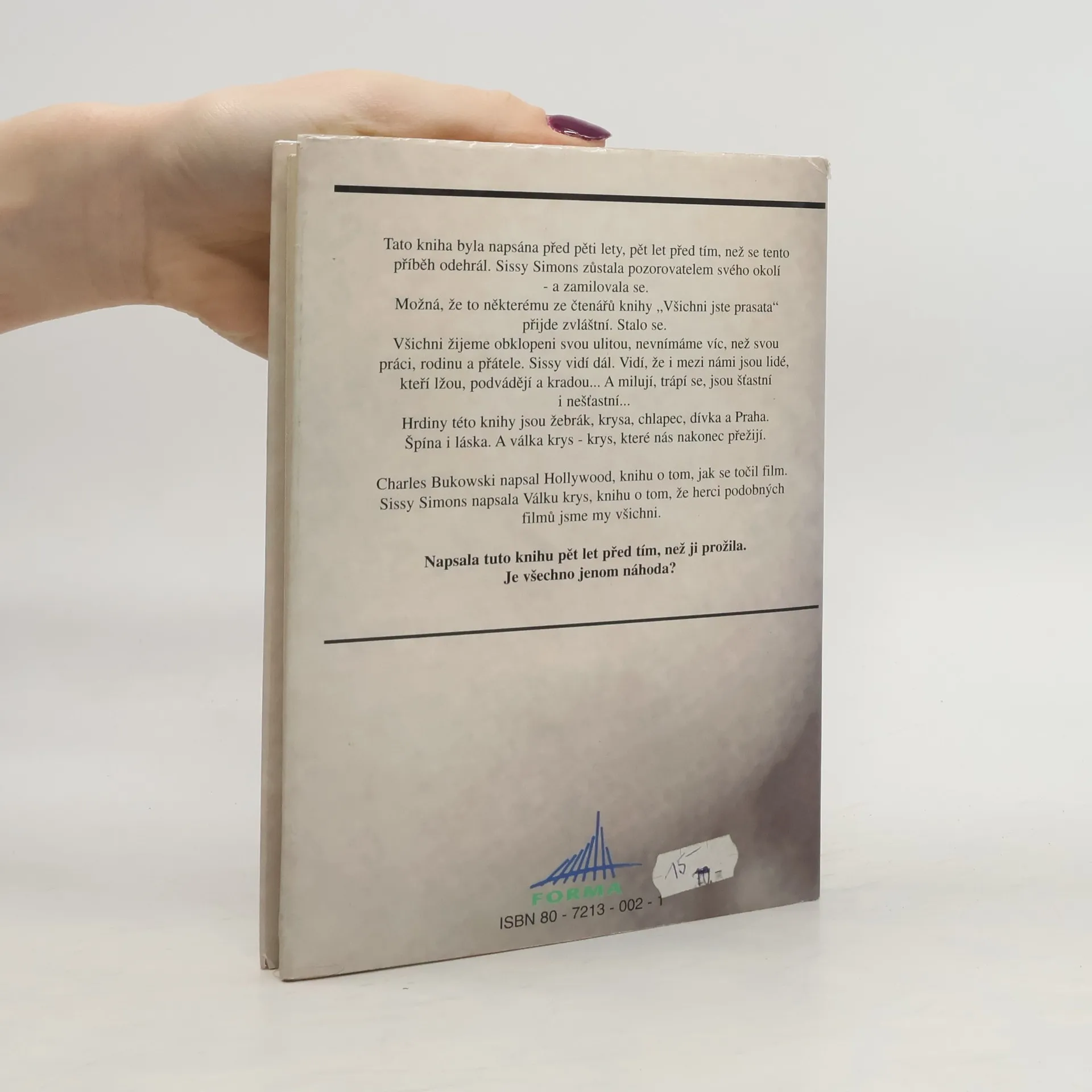 Hrdiny této knihy jsou žebrák, krysa, chlapec, dívka a Praha. Špína i láska. A válka krys - krys, které nás nakonec přežijí.