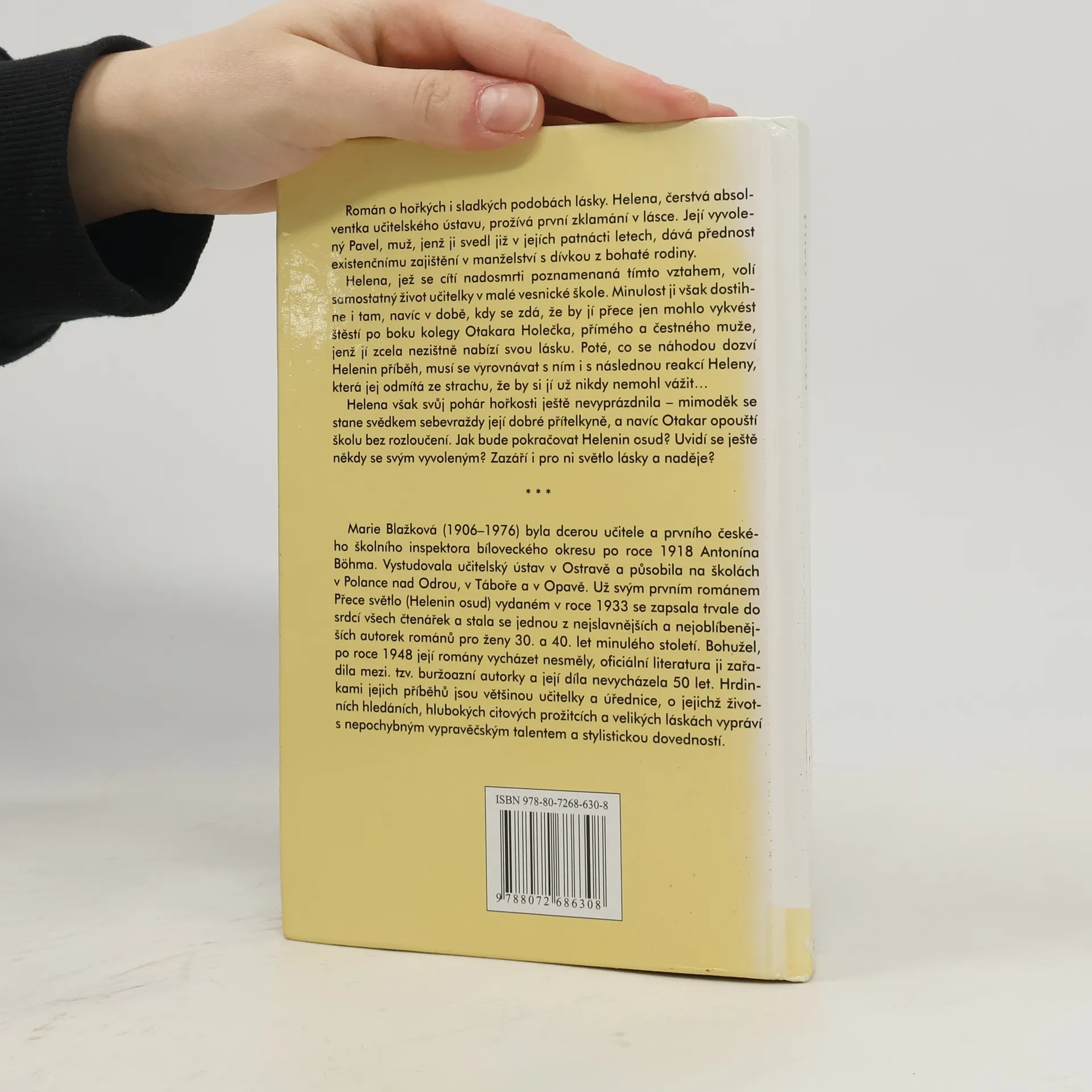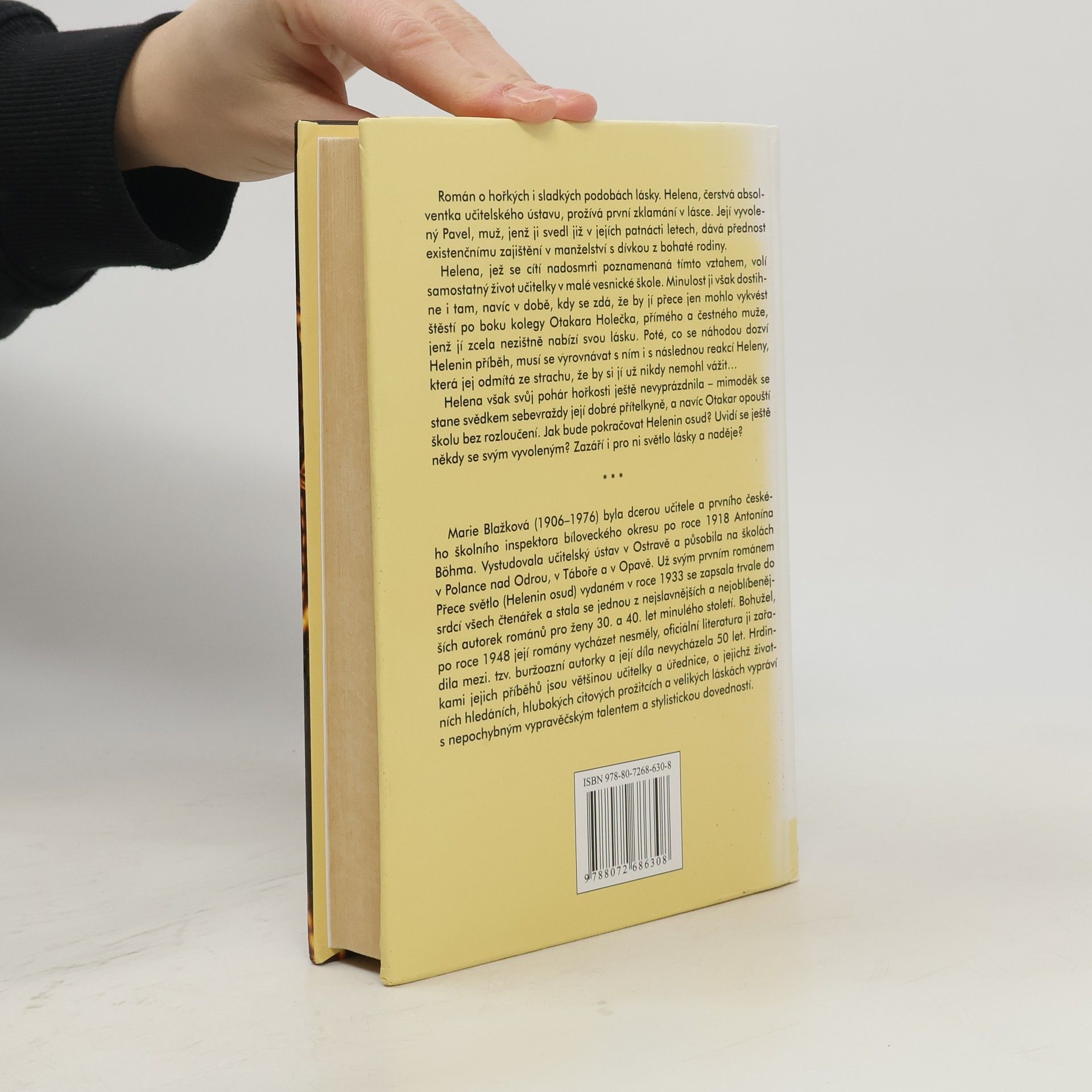 Román o hořkých i sladkých podobách lásky. Helena, čerstvá absolventka učitelského ústavu, prožívá první zklamání v lásce. Její vyvolený Pavel, muž, jenž ji svedl již v jejích patnácti letech, dává přednost existenčnímu zajištění v manželství s dívkou z bohaté rodiny. Helena, jež se cítí nadosmrti poznamenaná tímto vztahem, volí samostatný život učitelky v malé vesnické škole. Minulost ji však dostihne i tam, navíc v době, kdy se zdá, že by jí přece jen mohlo vykvést štěstí po boku kolegy Otakara Holečka, přímého a čestného muže, jenž jí zcela nezištně nabízí svou lásku. Poté, co se náhodou dozví Helenin příběh, musí se vyrovnávat s ním i s následnou reakcí Heleny, která jej odmítá ze strachu, že by si jí už nikdy nemohl vážit… Helena však svůj pohár hořkosti ještě nevyprázdnila – mimoděk se stane svědkem sebevraždy její dobré přítelkyně, a navíc Otakar opouští školu bez rozloučení. Jak bude pokračovat Helenin osud? Uvidí se ještě někdy se svým vyvoleným? Zazáří i pro ni světlo lásky a naděje?